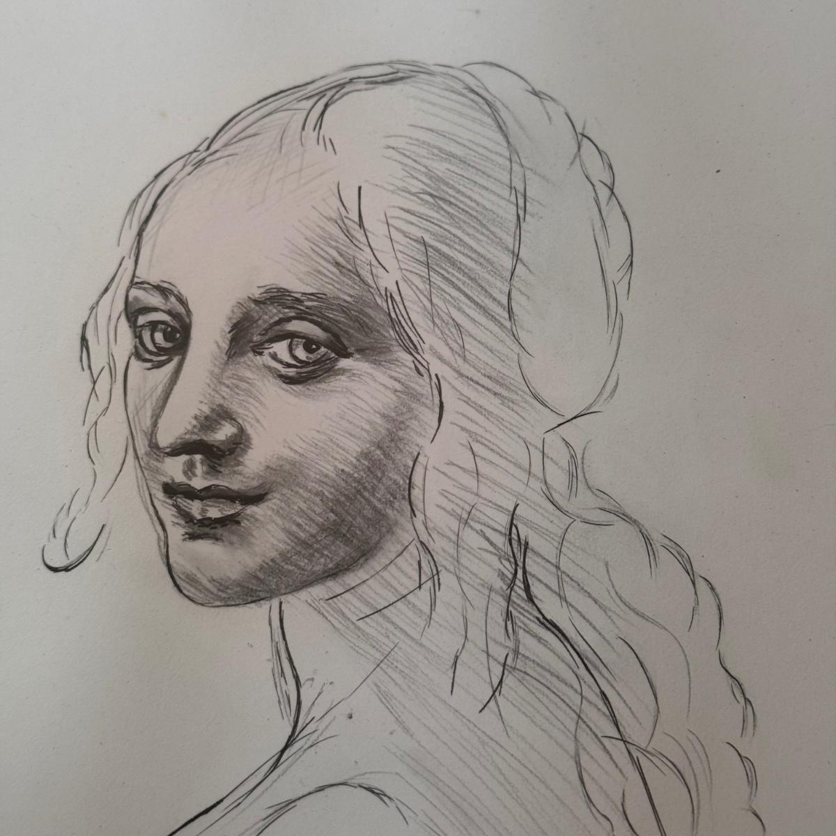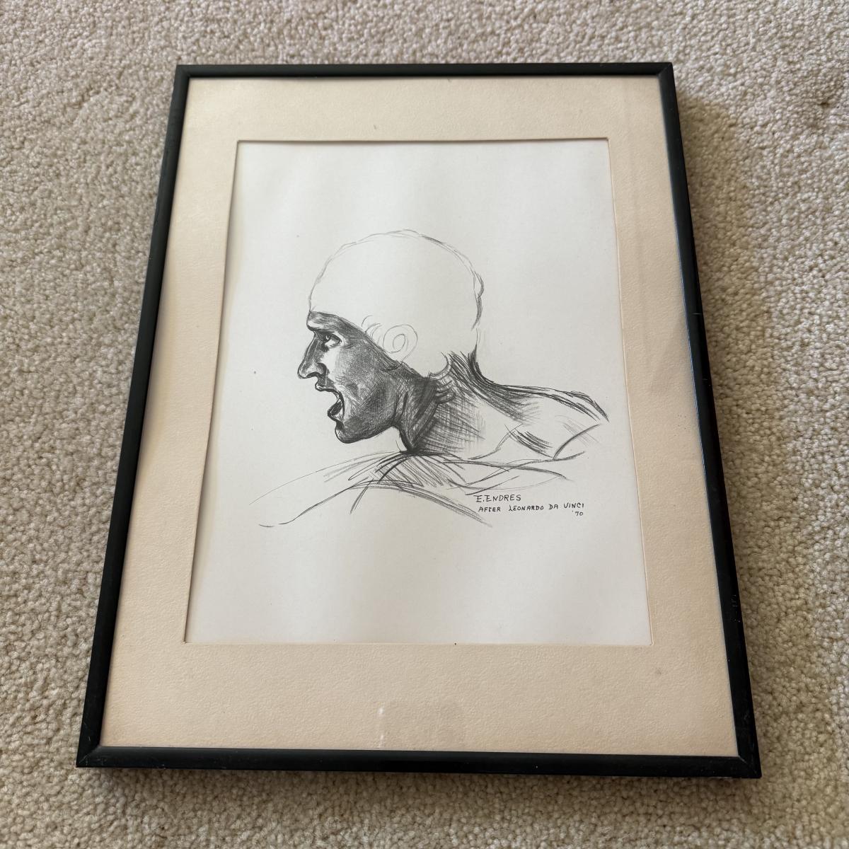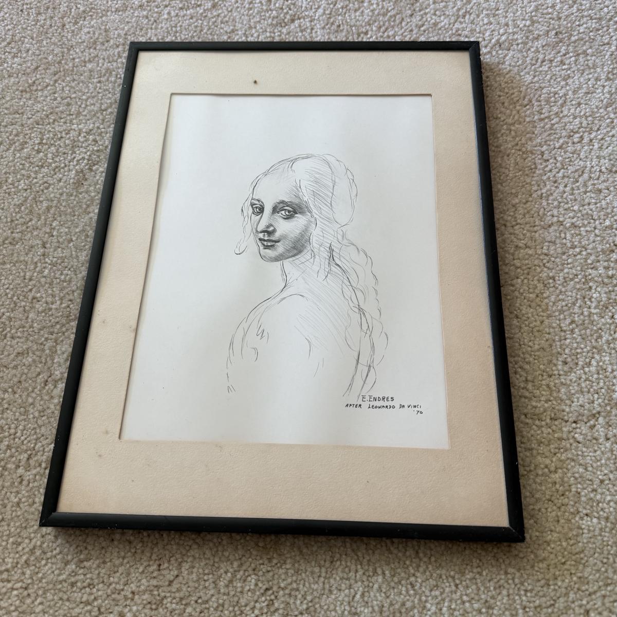 LOT 53L: Pair of 1970 Signed E. Endres after Leonardo da Vinci (Italian, 1452-1519) Drawings: "Study of a Girl's Head" (original circa 1483) & ''The Battle of Anghiari" (original circa 1504-1505)