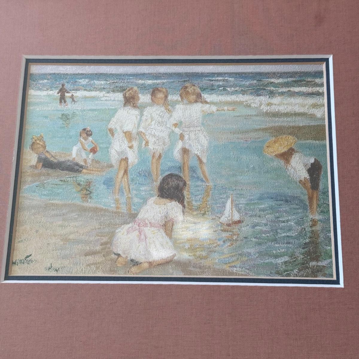LOT 54L: Four Framed Vintage Beach Prints by Paul E Legrand (French 1860-1951) & René Legrand (French, 1923-1996)