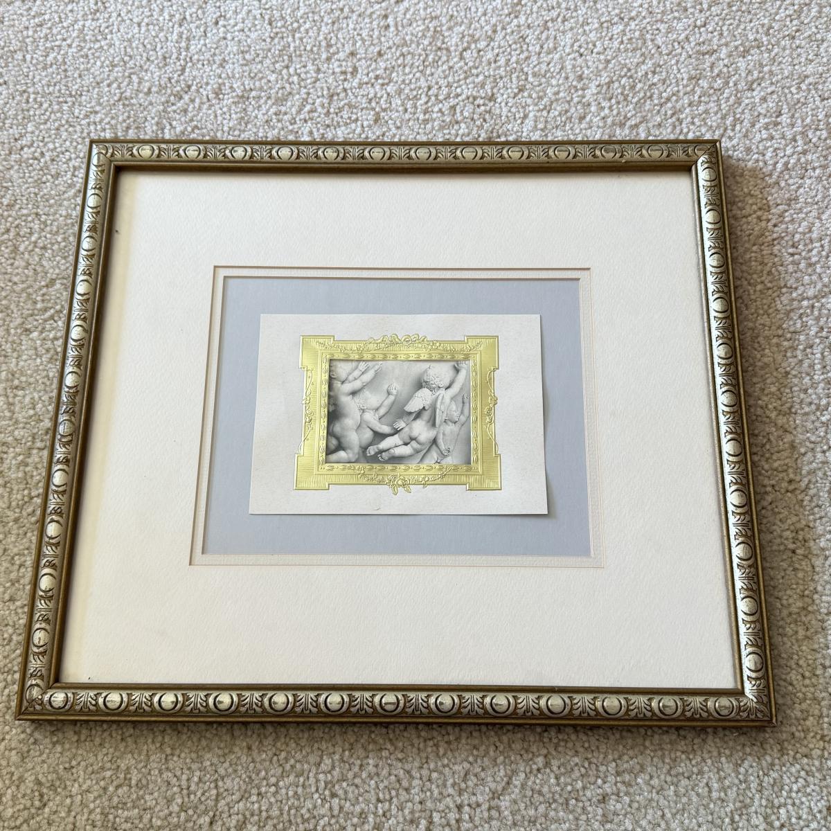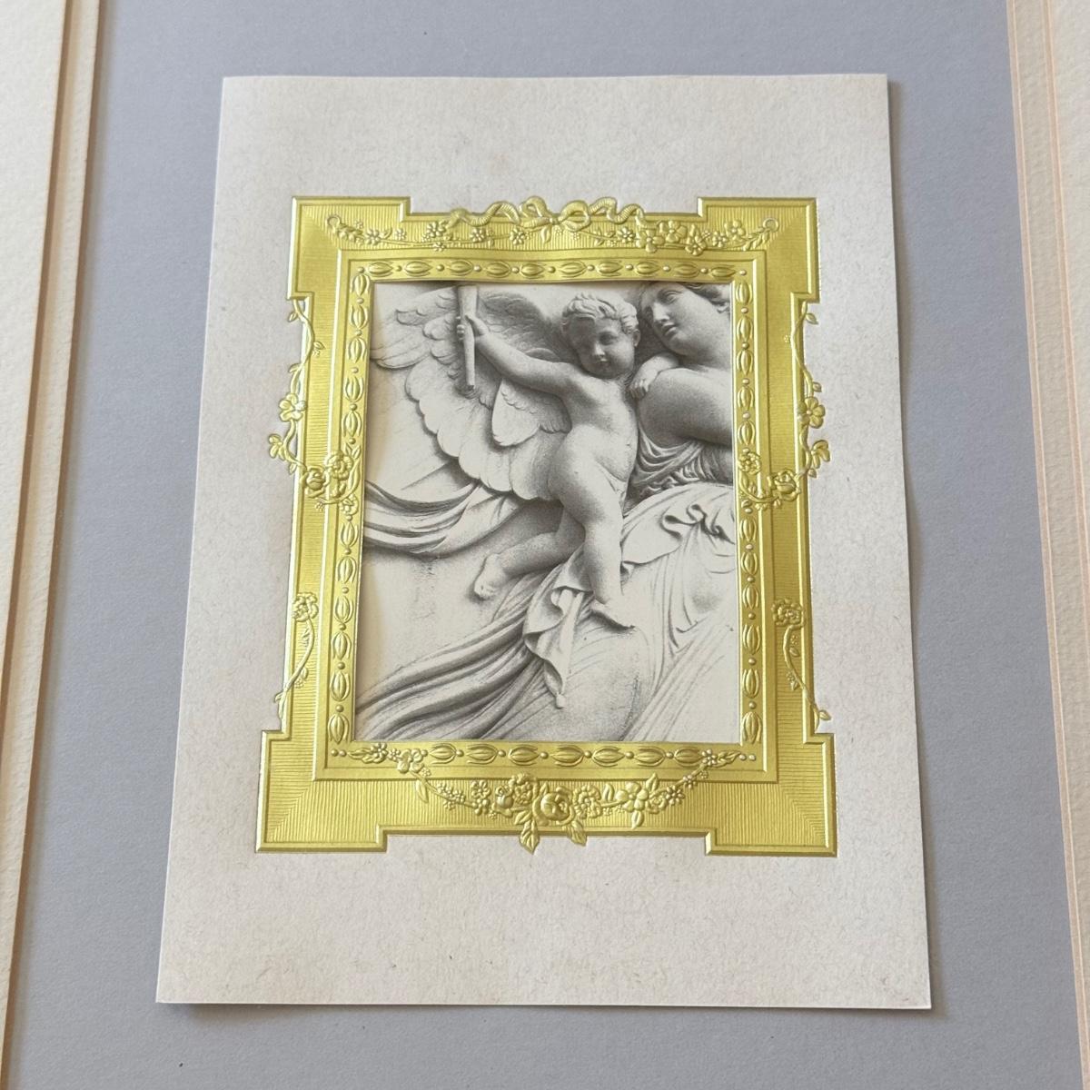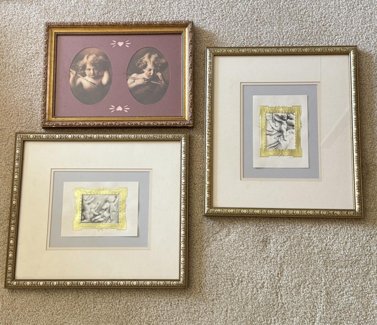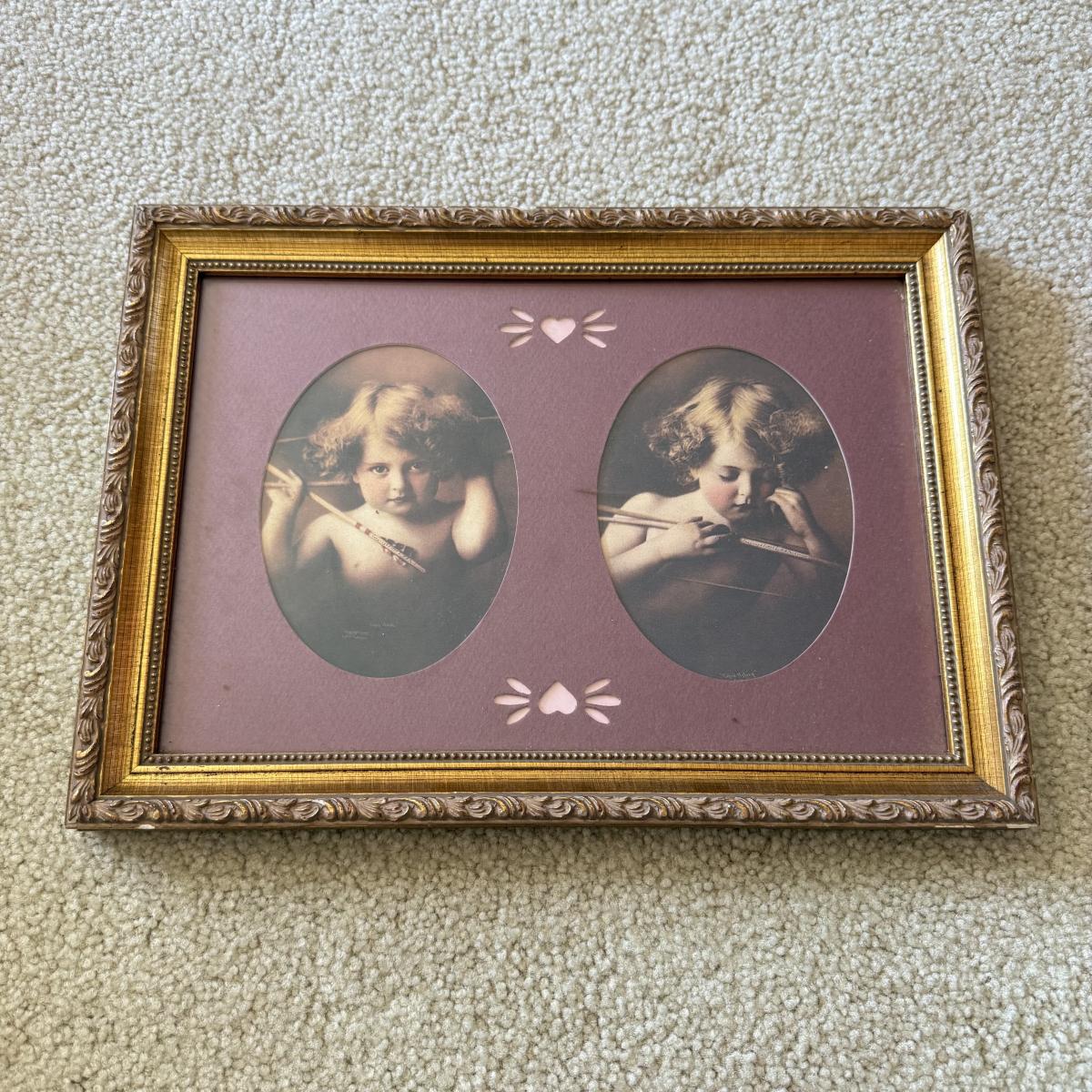 LOT 56L: Vintage Cherub Prints: "Cupid Awake" & "Cupid Asleep" Diptych by Repro by Gallery Graphics, Original 1897 Photographs by Morris B. Parkinson (American 1847-1926) & Gold Accent Cherub Prints