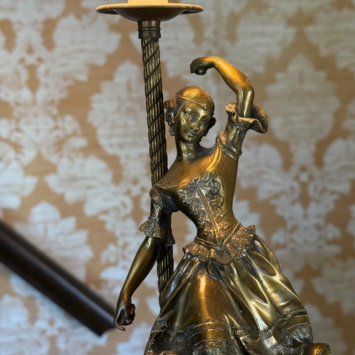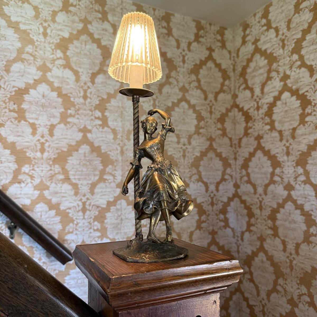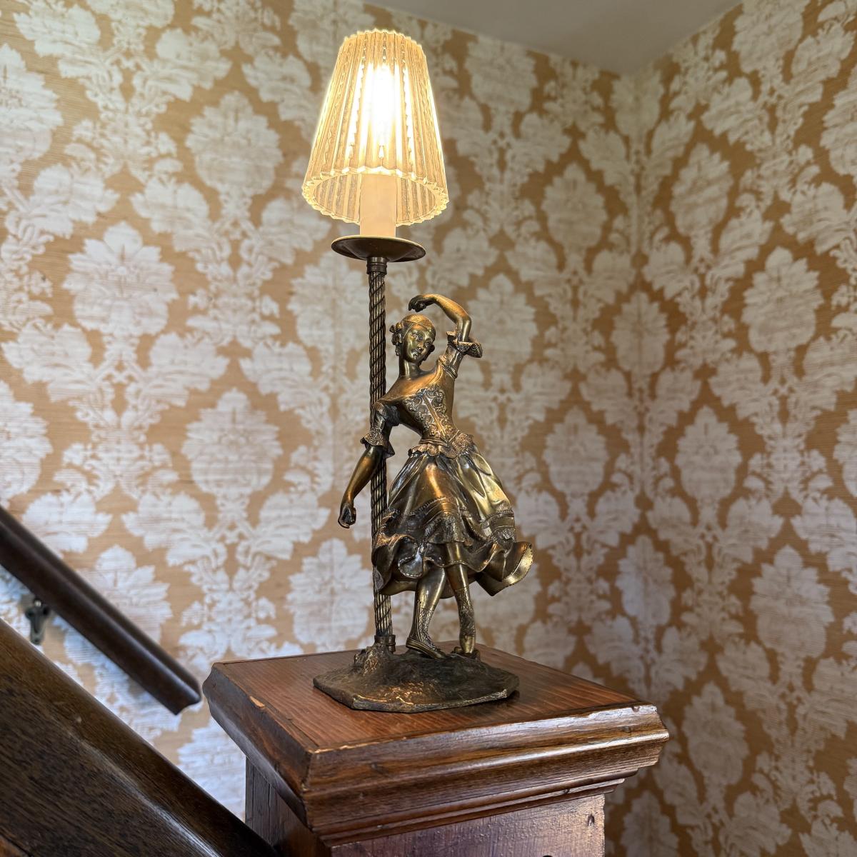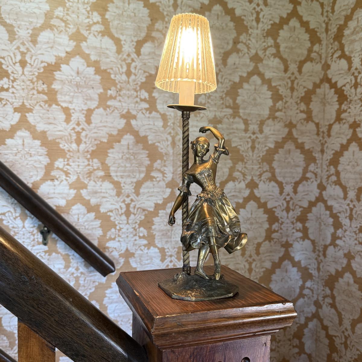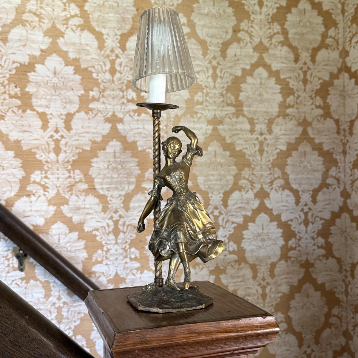 LOT 58H: Antique French Art Nouveau Bronze Ballerina Dancer Sculpture Lamp Cast circa 1880-1910