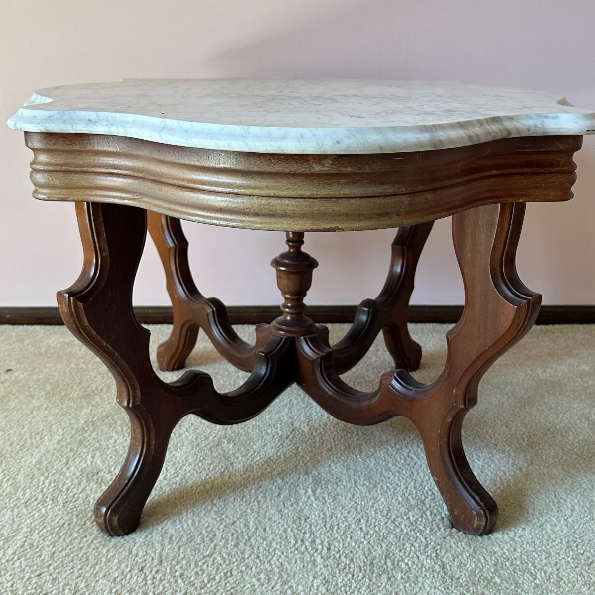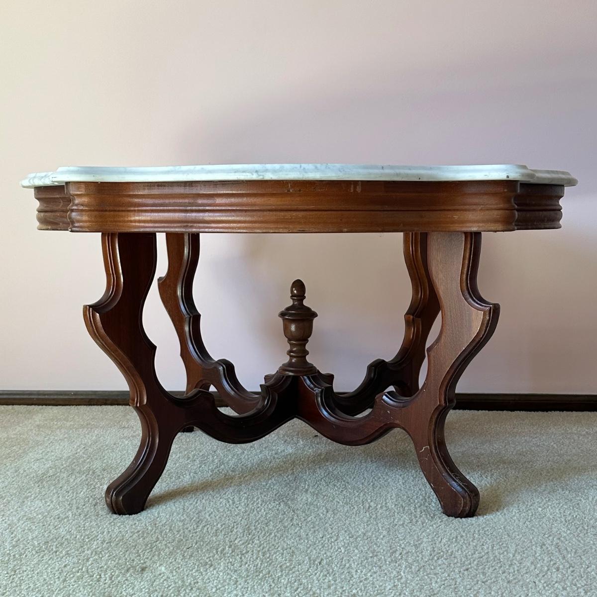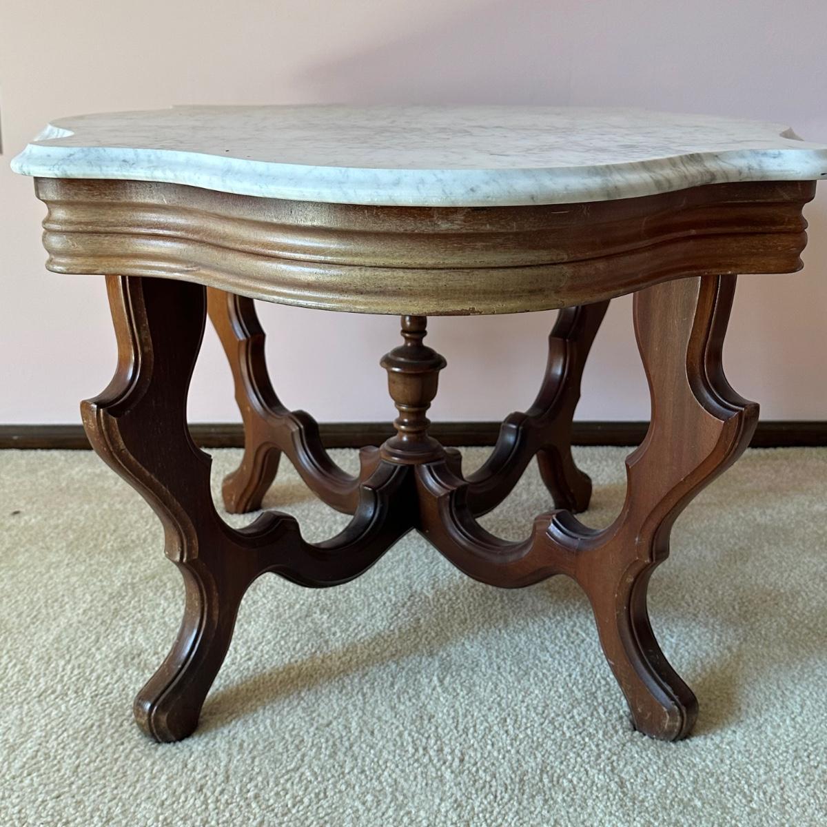 LOT 63L: Antique Victorian Carved Walnut Marble Top Parlor Table