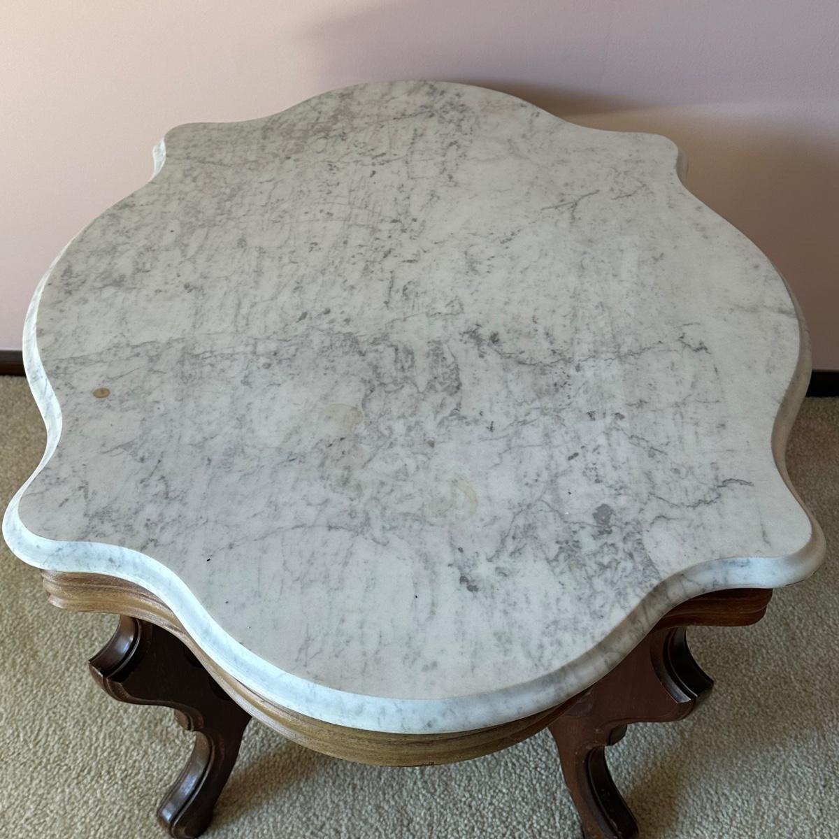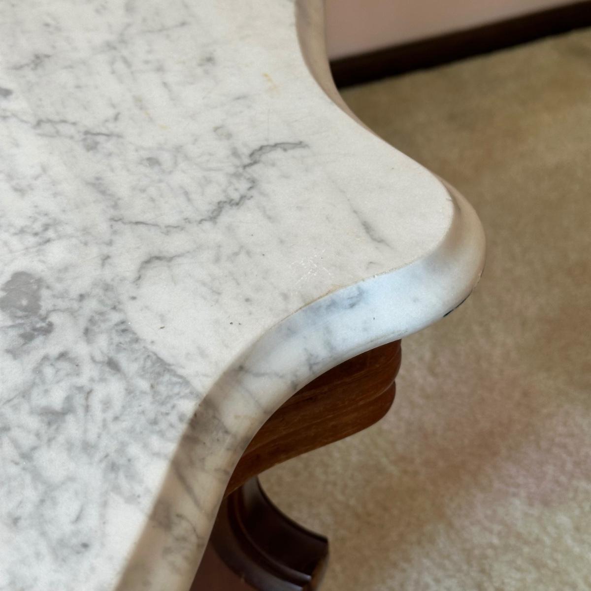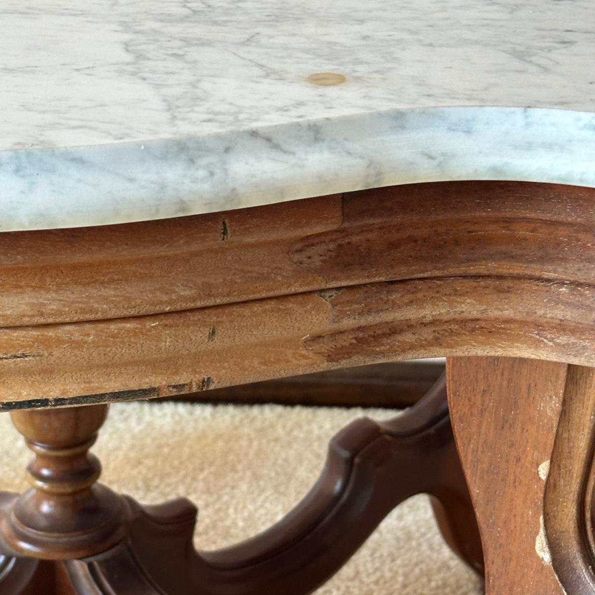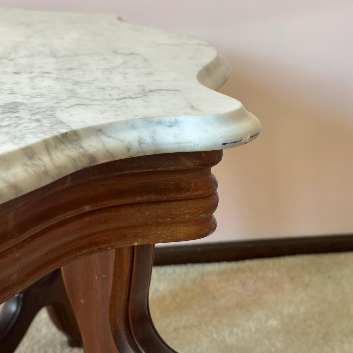 LOT 63L: Antique Victorian Carved Walnut Marble Top Parlor Table