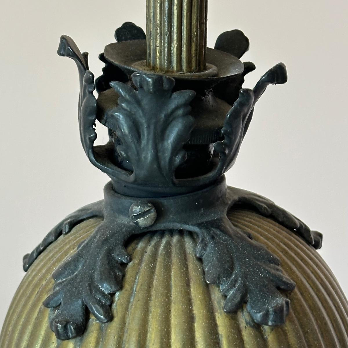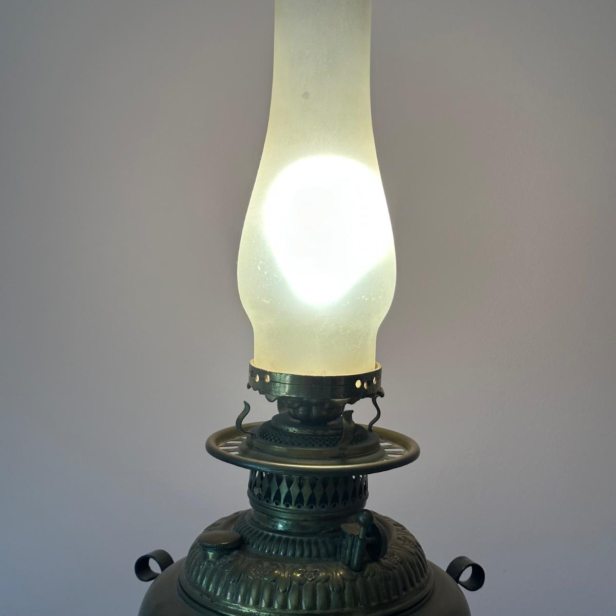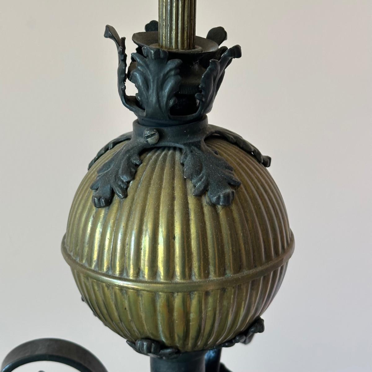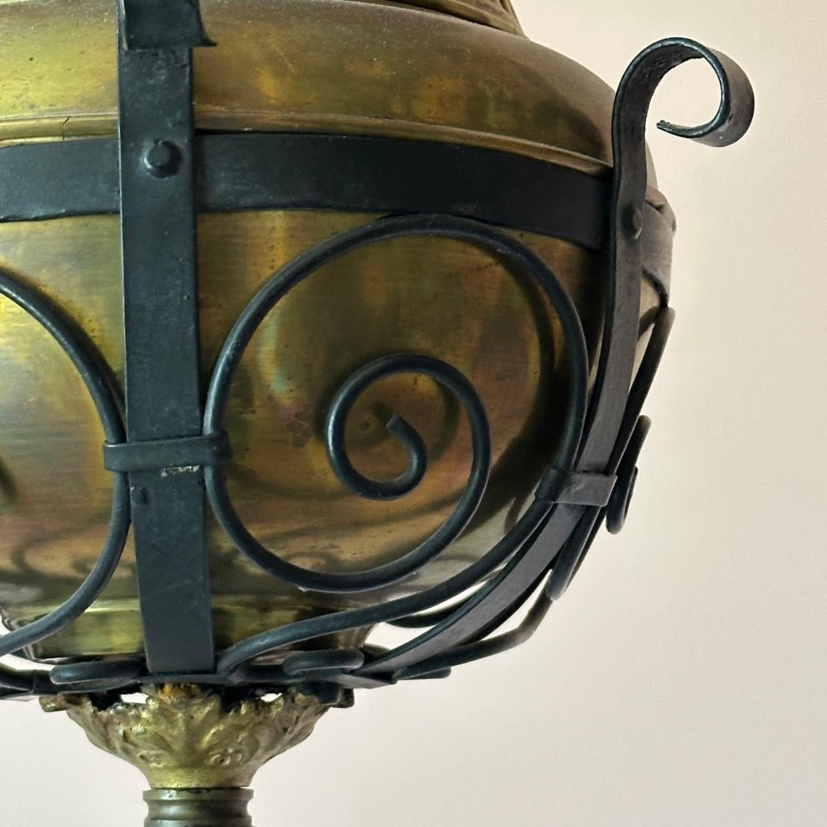 LOT 65L: Antique Victorian Cast Iron/Brass Oil Lamp with Red Glass Shade
