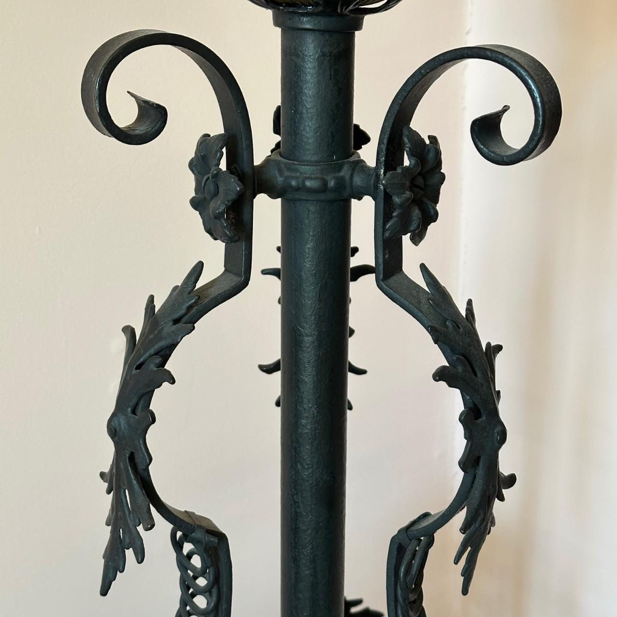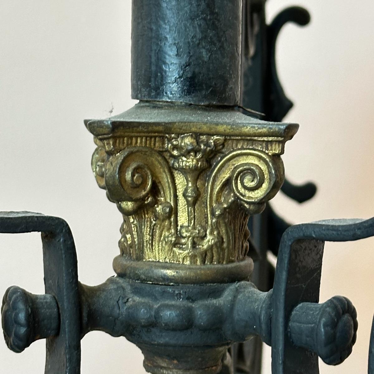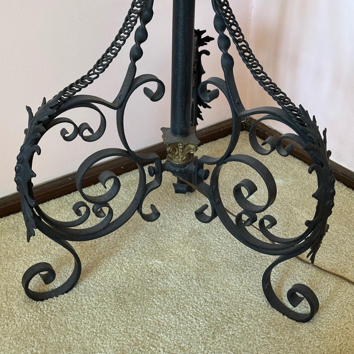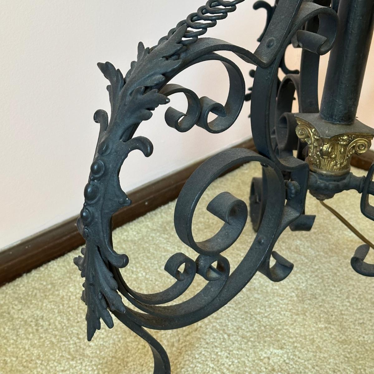 LOT 65L: Antique Victorian Cast Iron/Brass Oil Lamp with Red Glass Shade