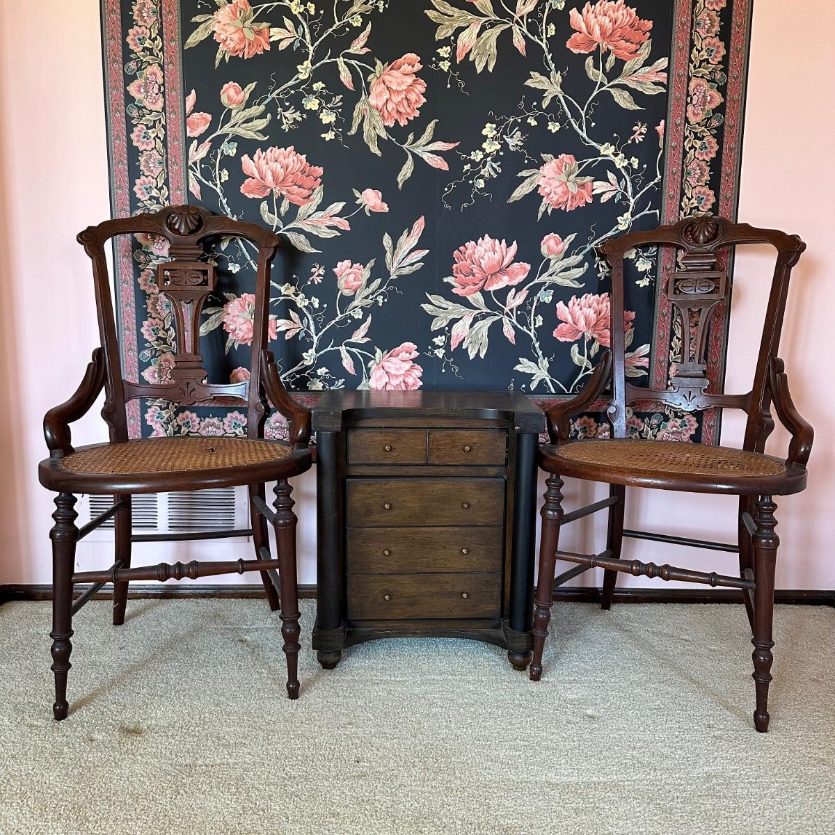 LOT 68L: Pair Of Antique Cane Chair w/ 1 Drawer 1 Door End Table