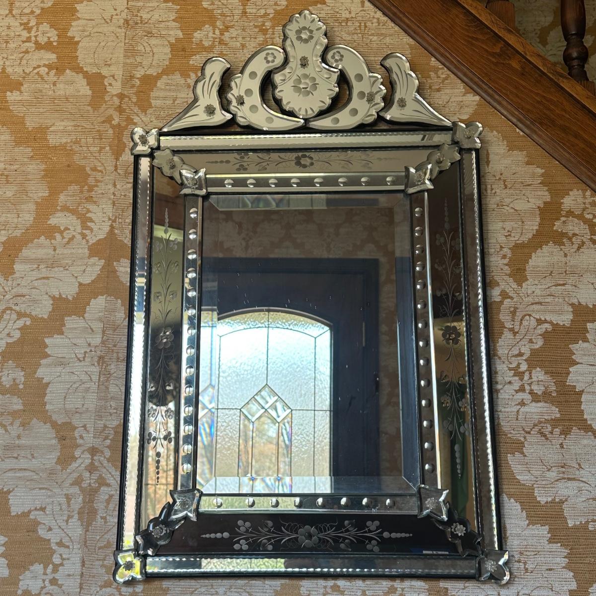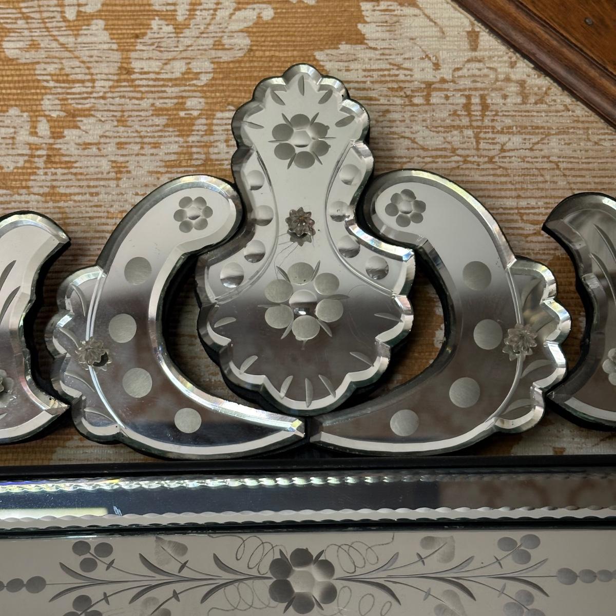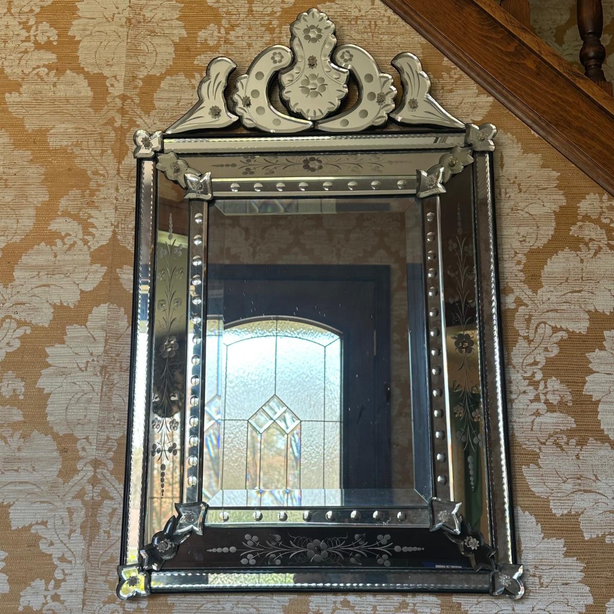 LOT 74H: Mid Century Etched and Beveled Venetian Mirror Circa 1950’s