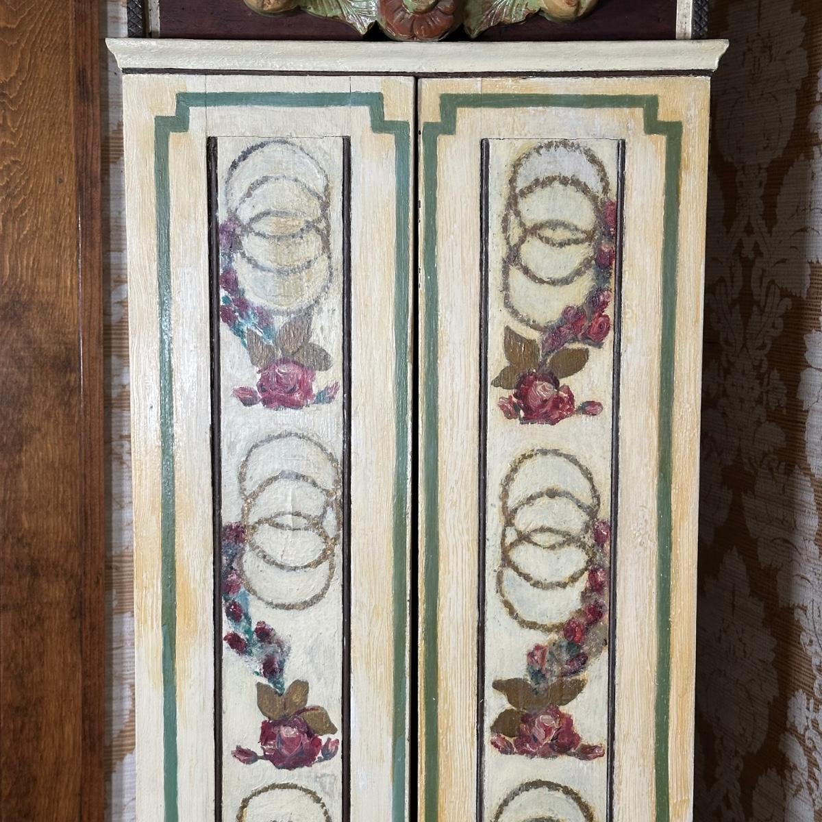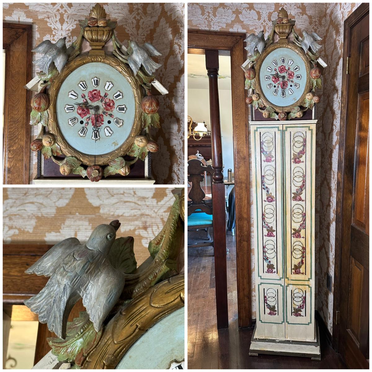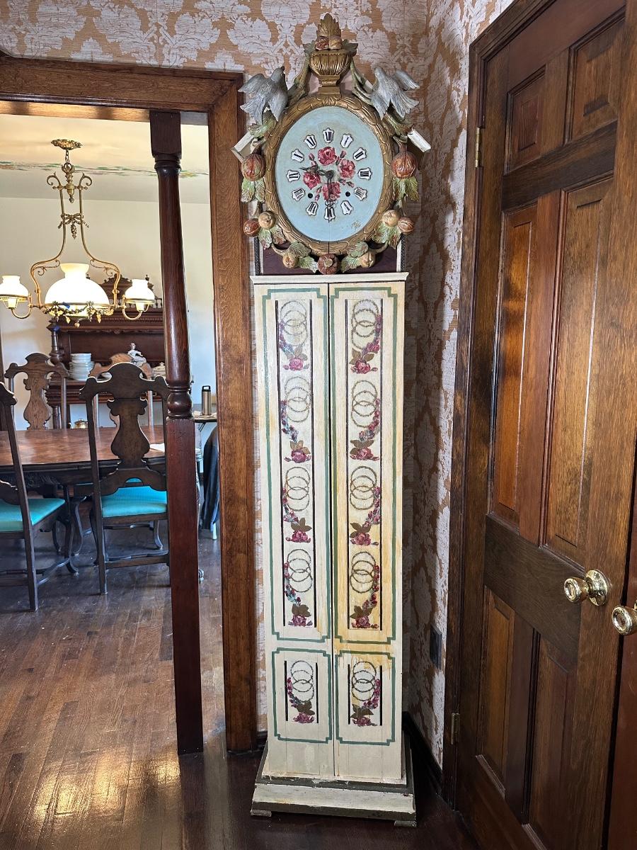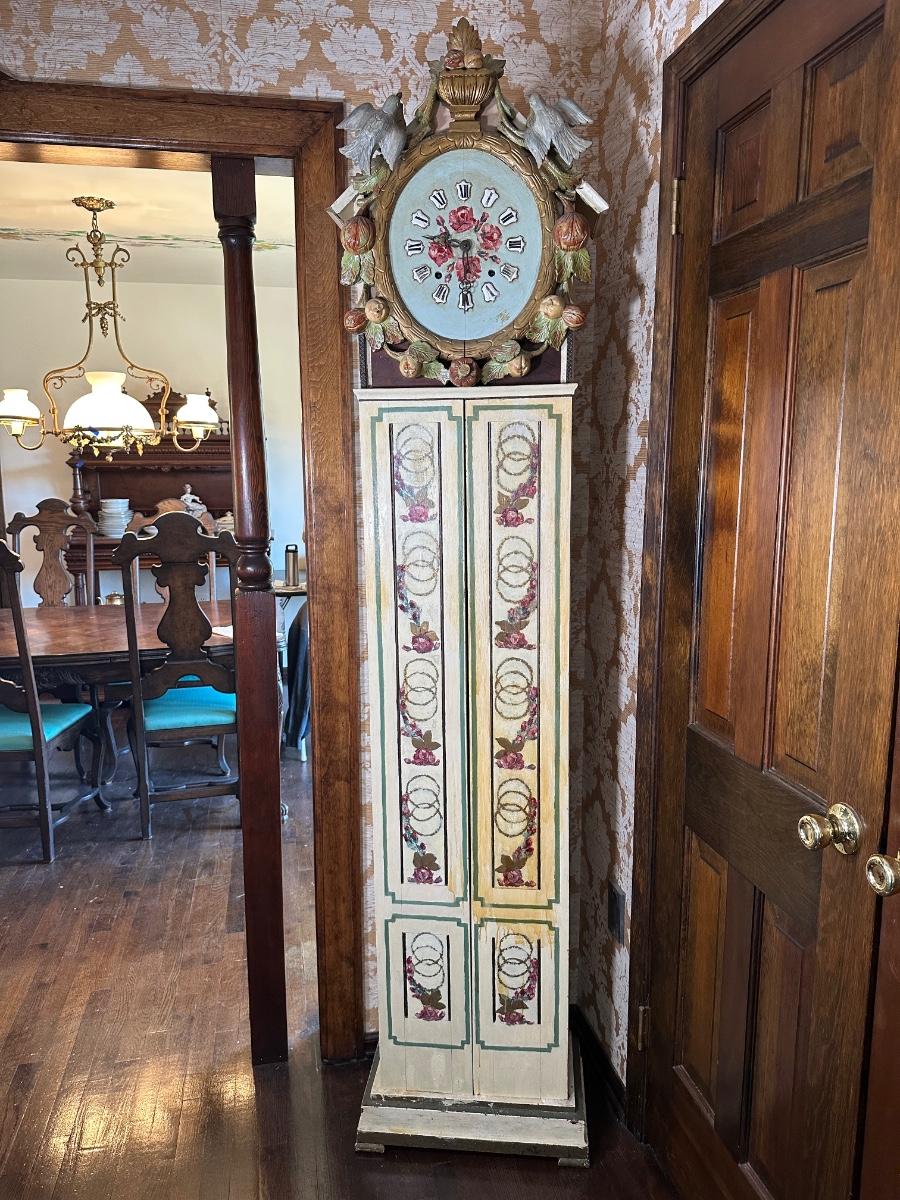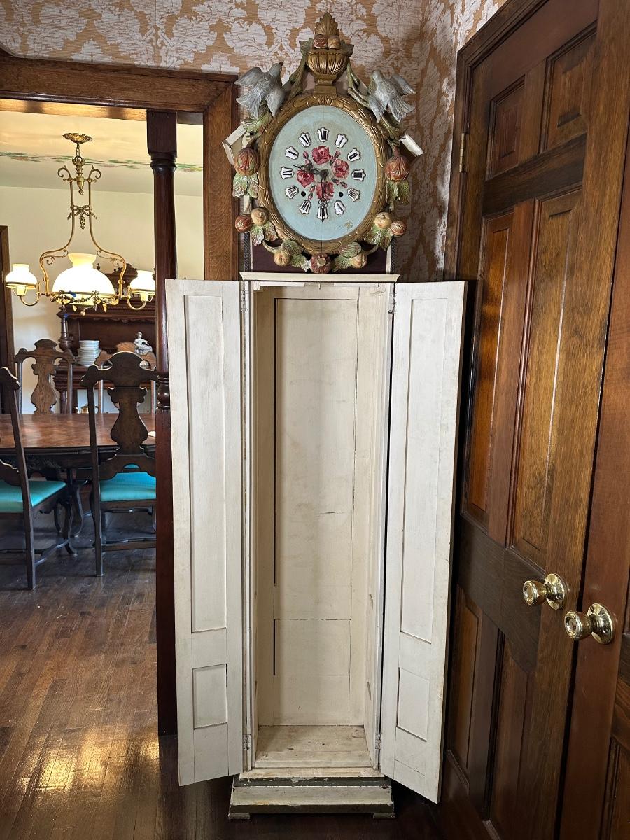 LOT 75H: Vintage Hand Painted & Carved German Style Grandfather Clock Cabinet Only