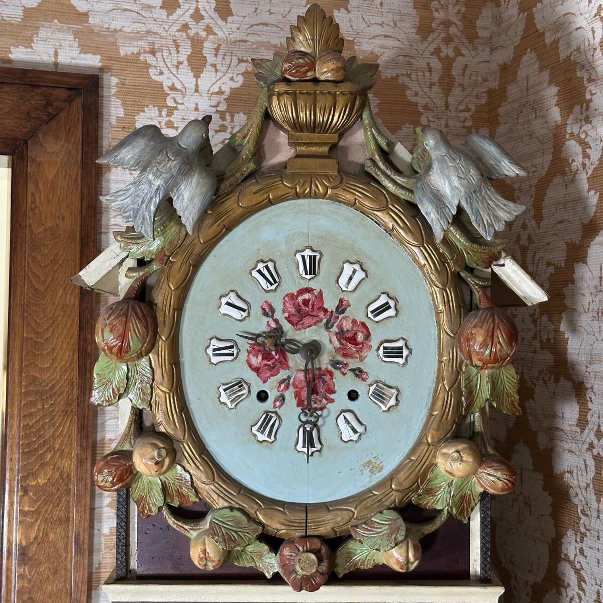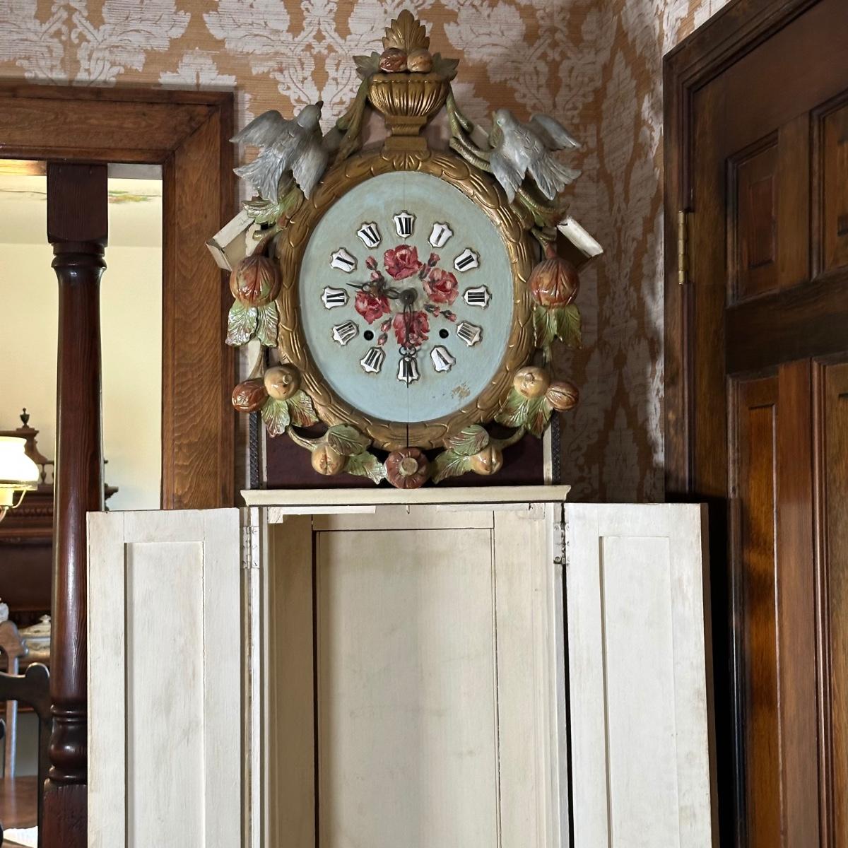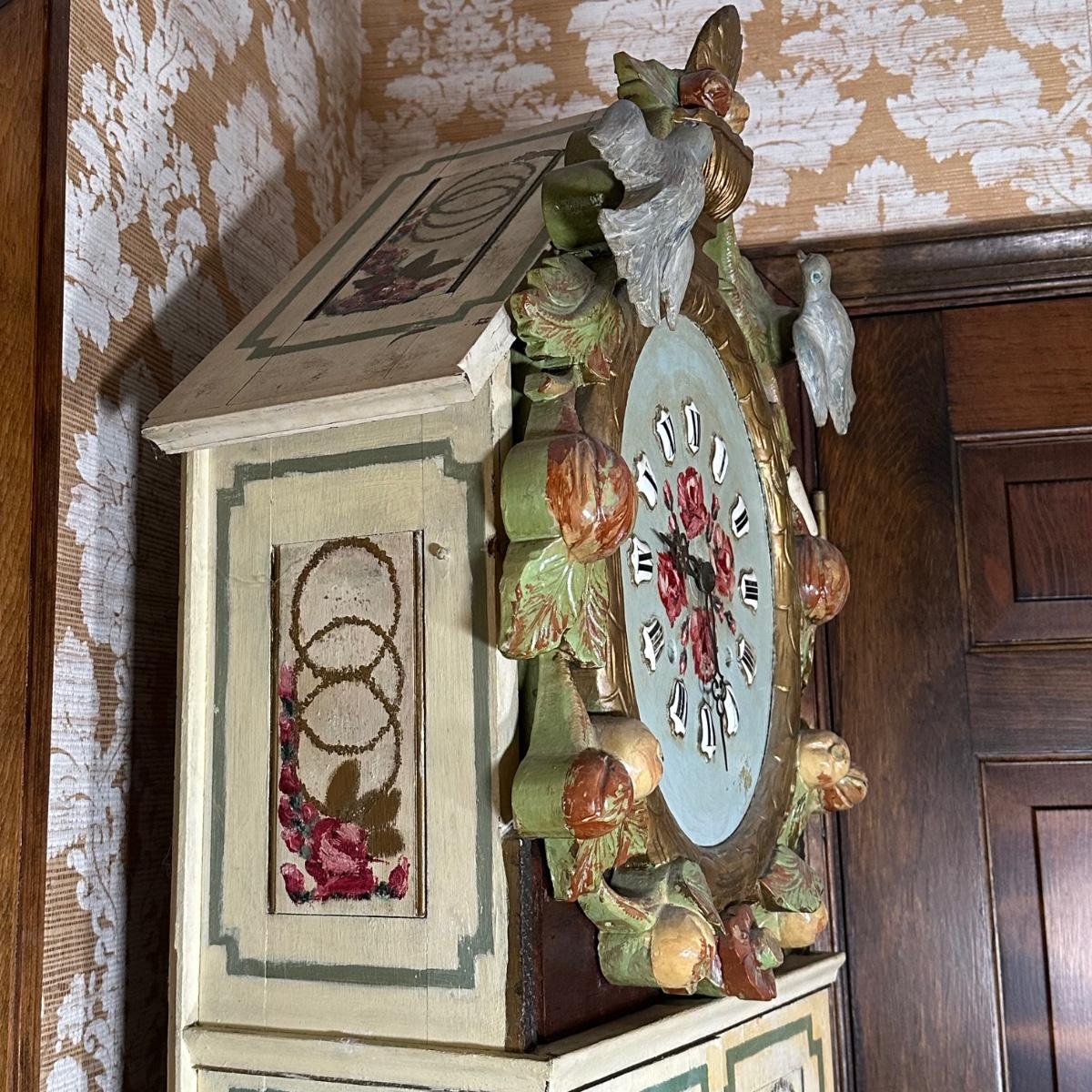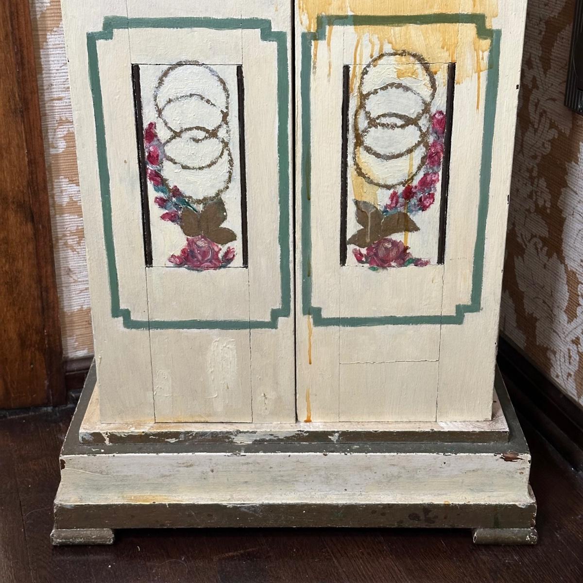 LOT 75H: Vintage Hand Painted & Carved German Style Grandfather Clock Cabinet Only