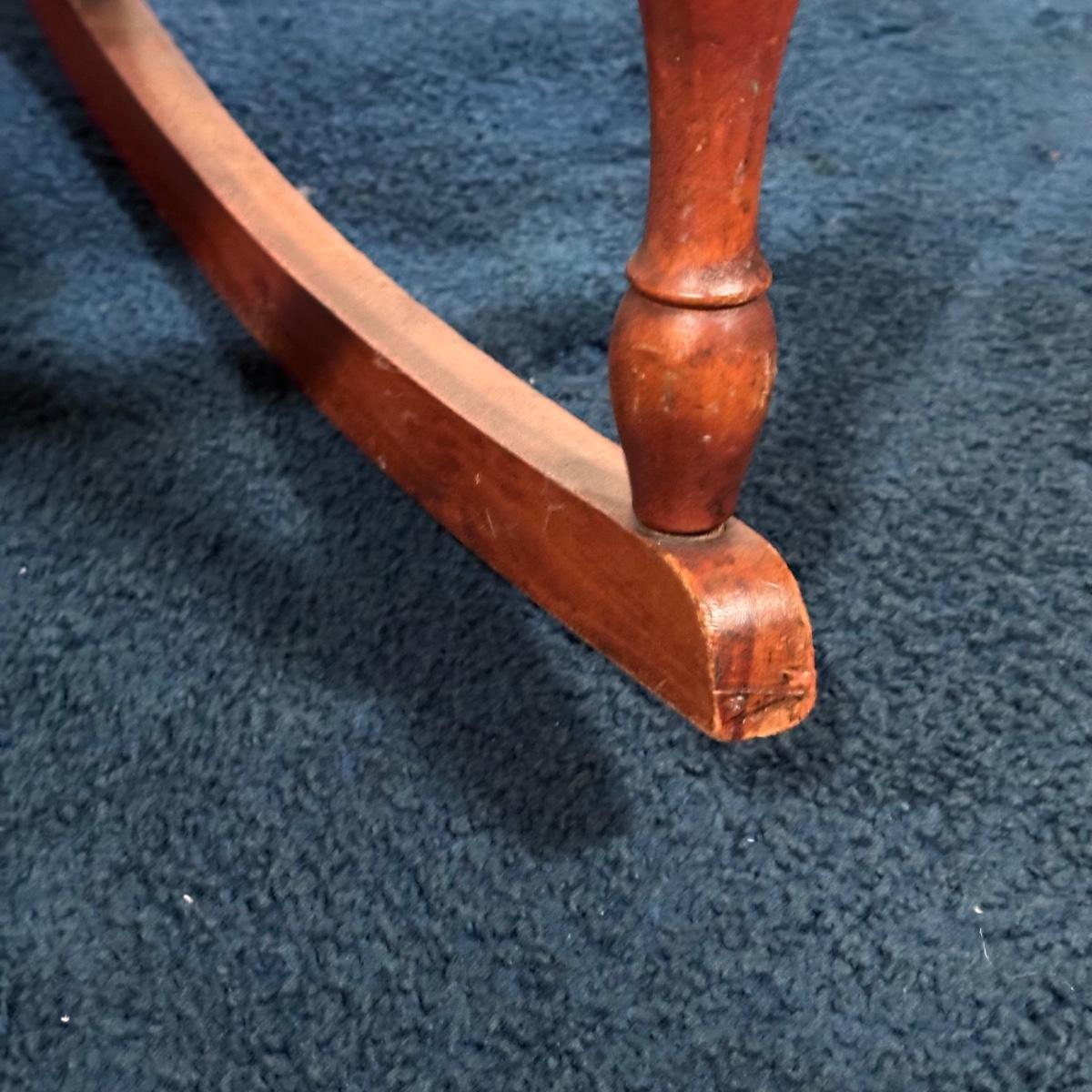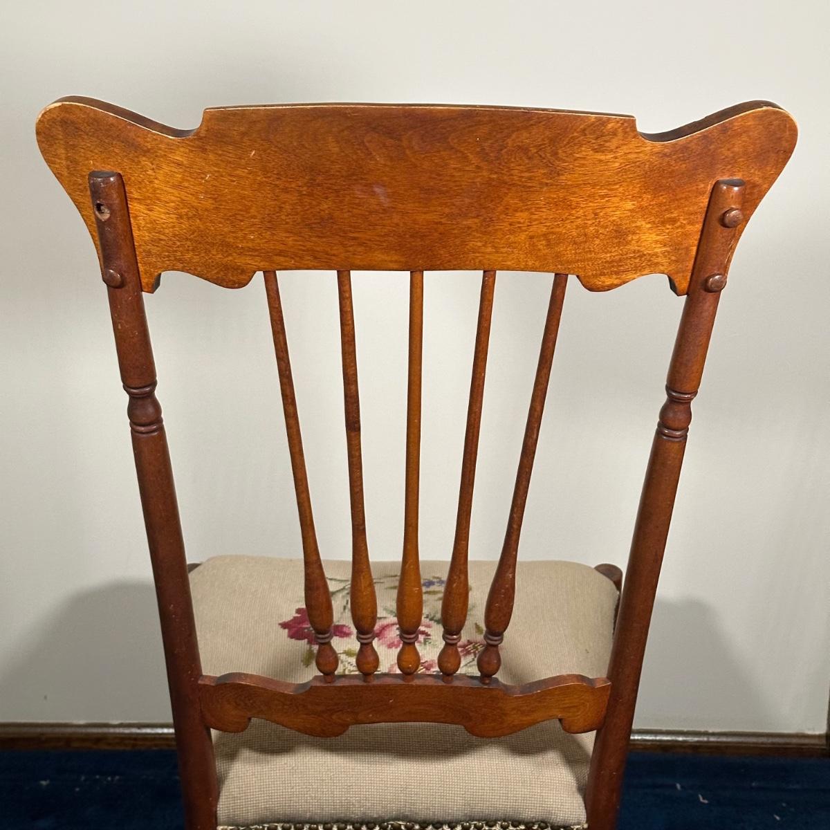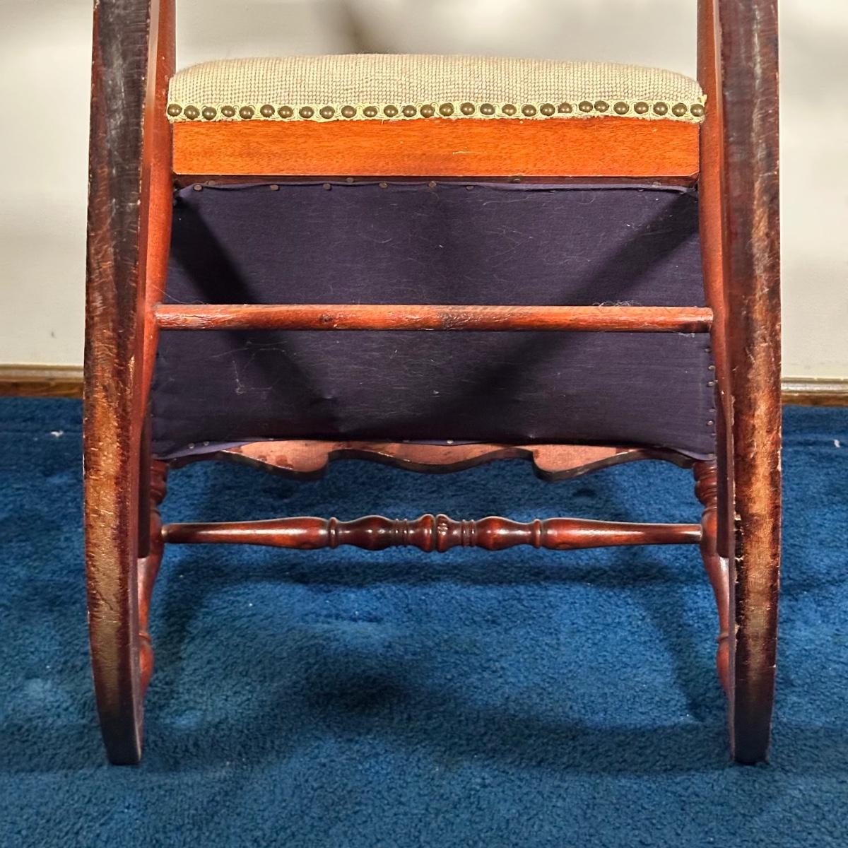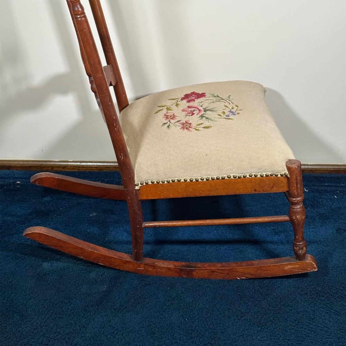 LOT 79A: Antique Wooden Needle Point Hand Embroidered Seat Cushion Rocking Chair