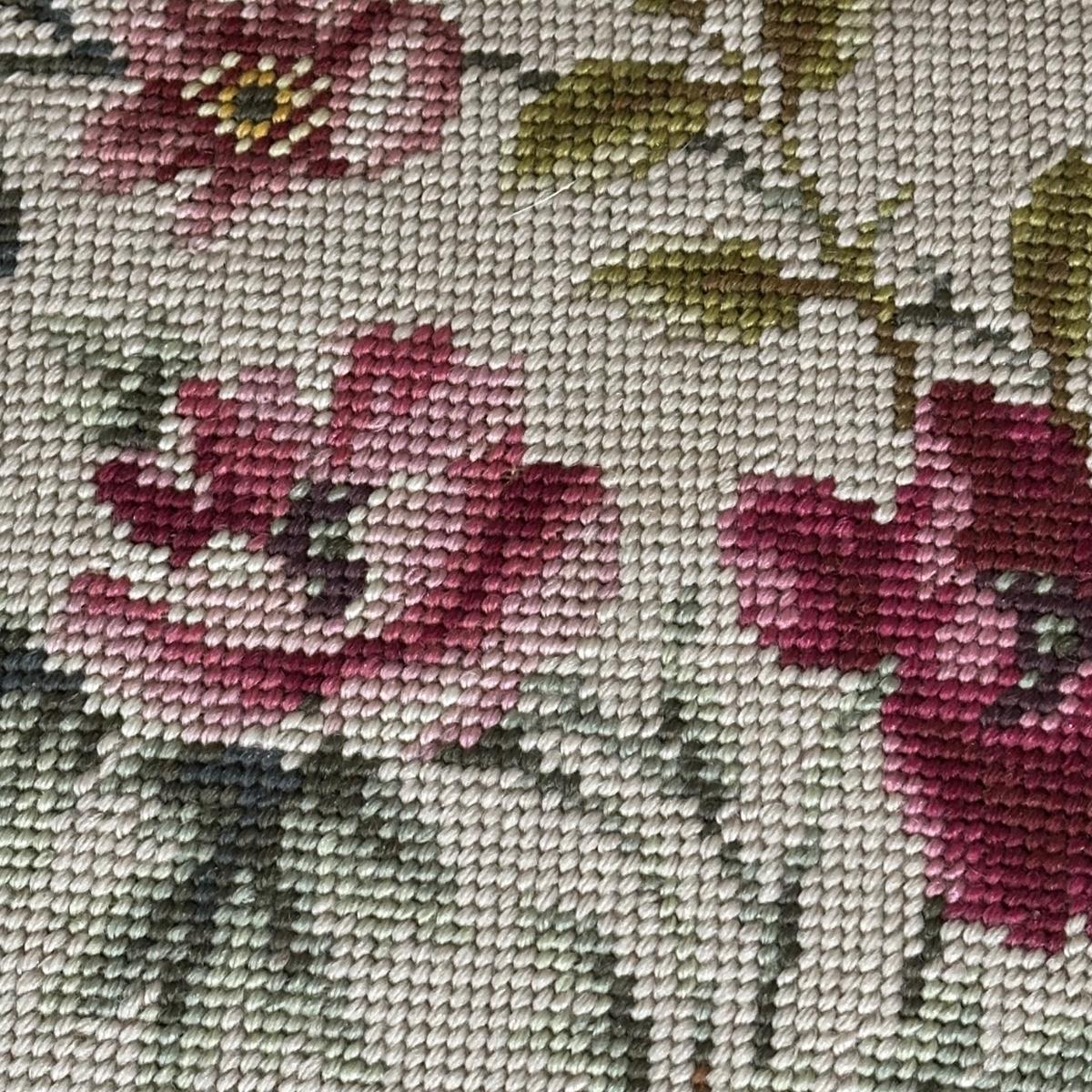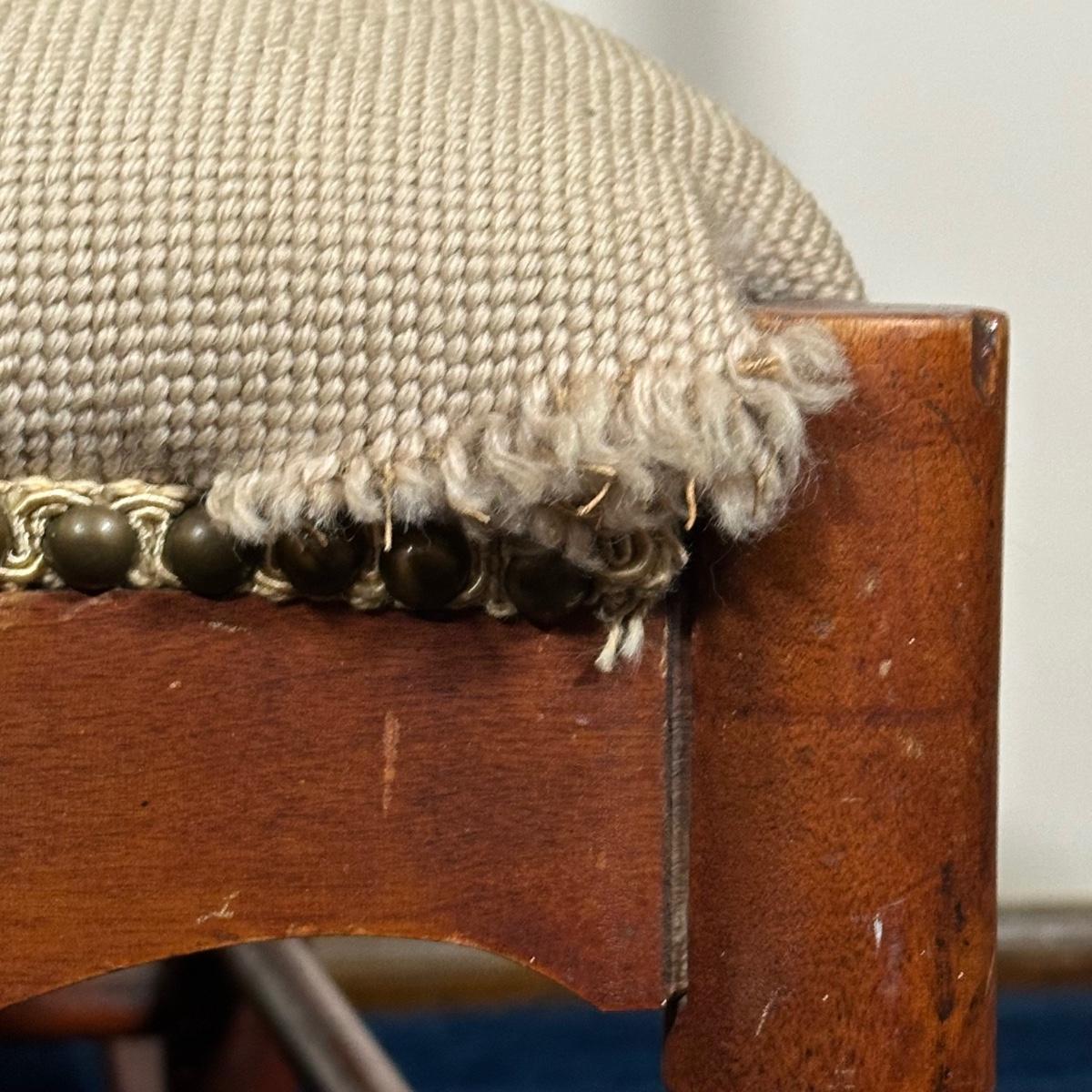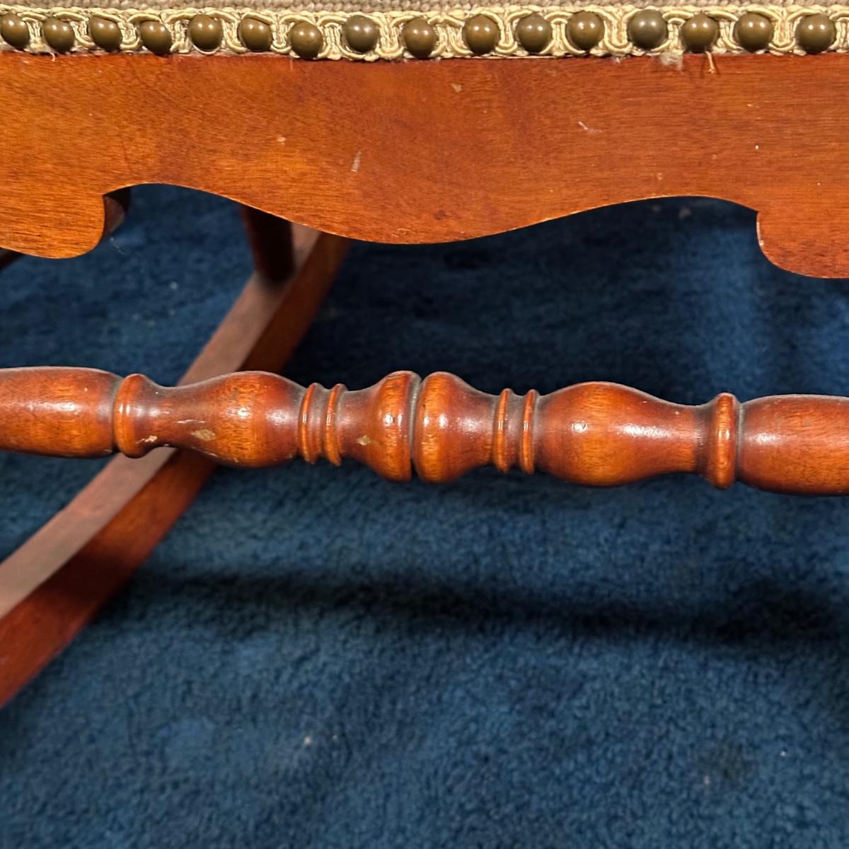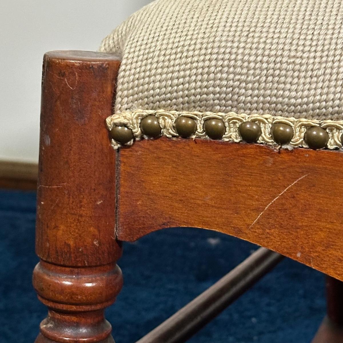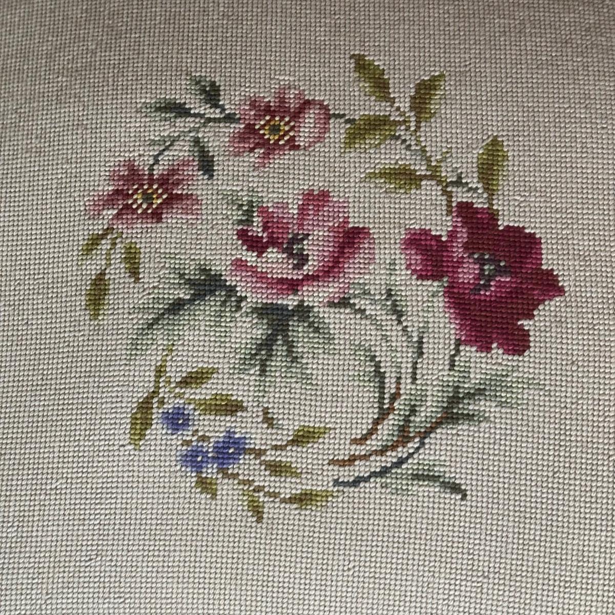 LOT 79A: Antique Wooden Needle Point Hand Embroidered Seat Cushion Rocking Chair