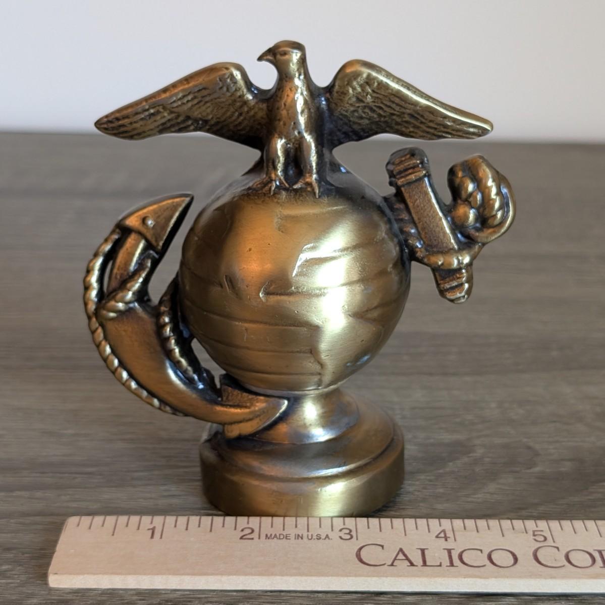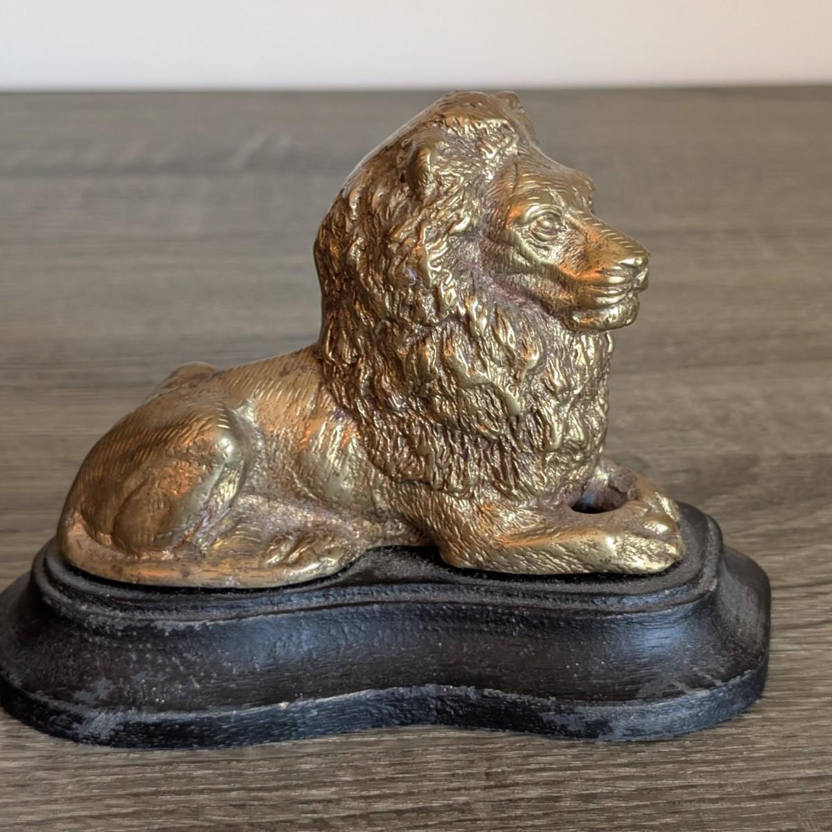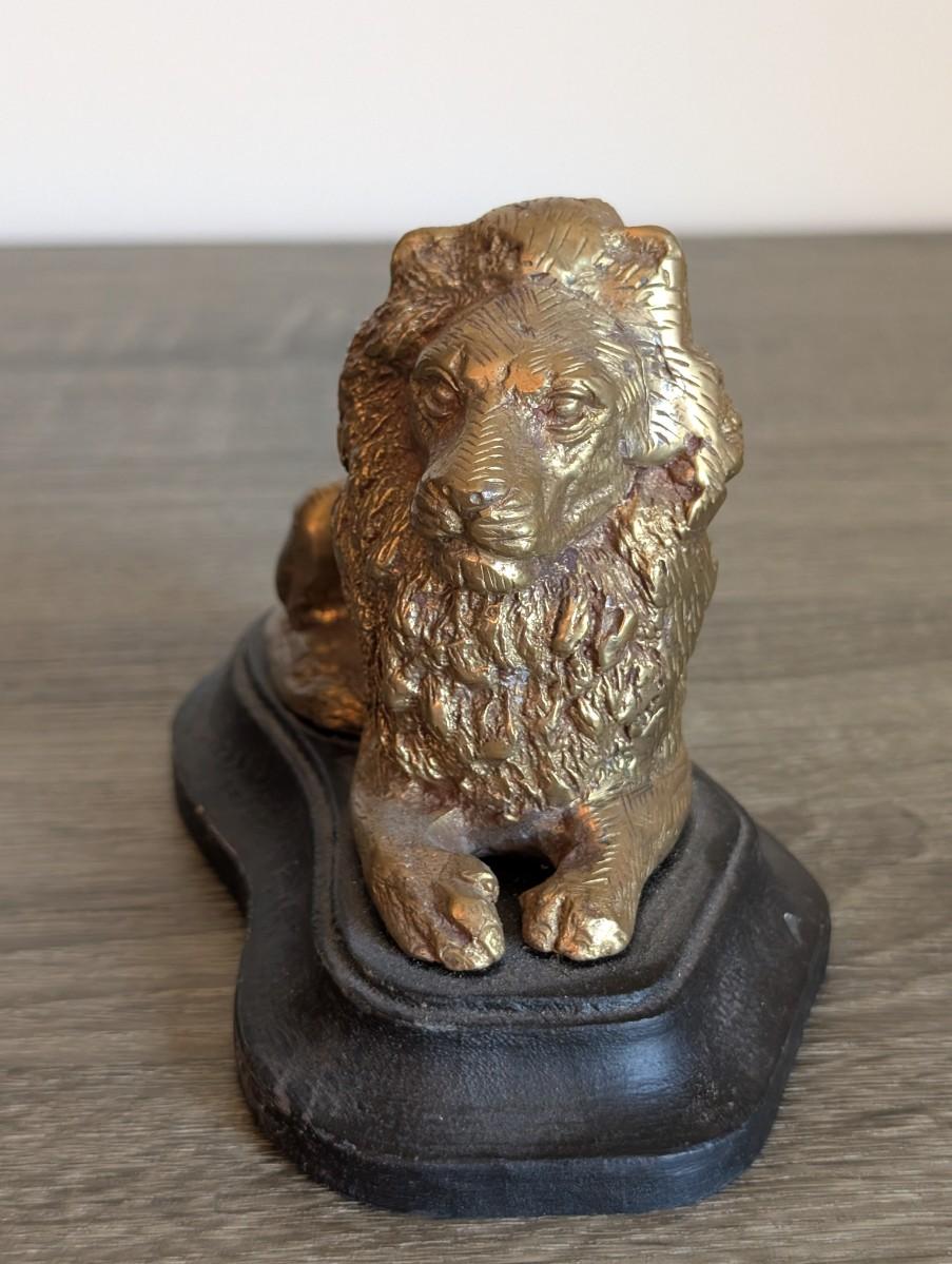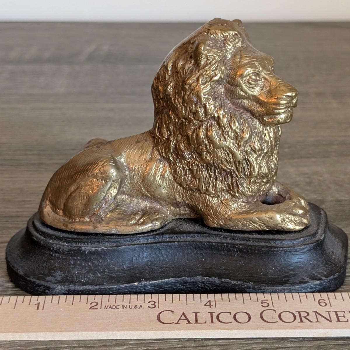 LOT 81K: Vintage Bronze/Brass Metal Desk Items, Lion Paperweight, Lady Justice Pen Holder & Love Of Money, Inc. USMC Bottle Opener