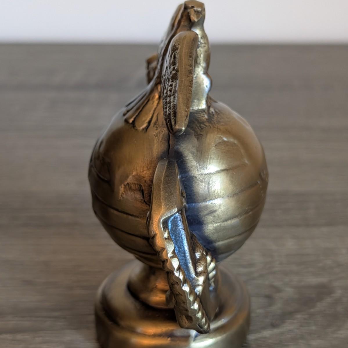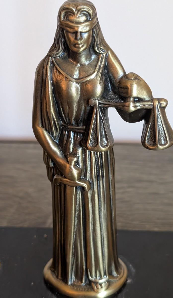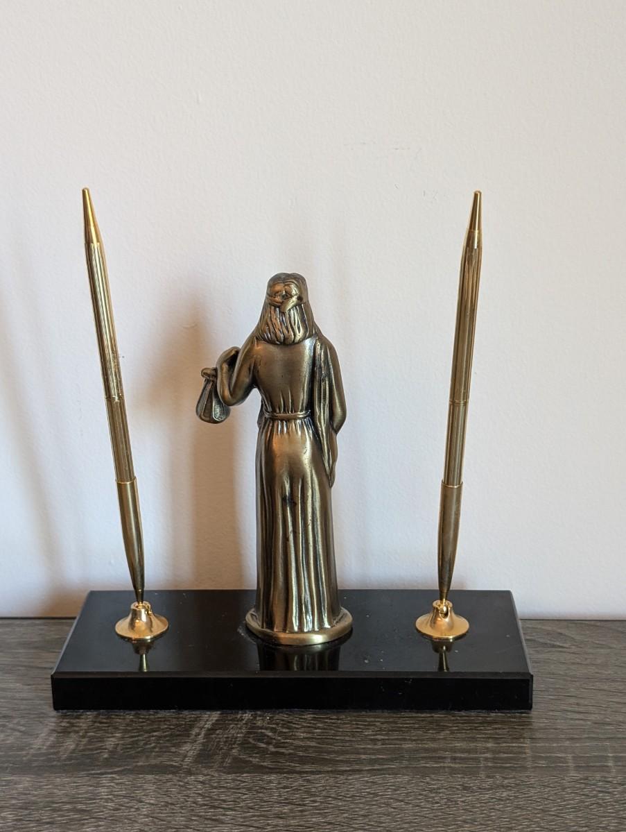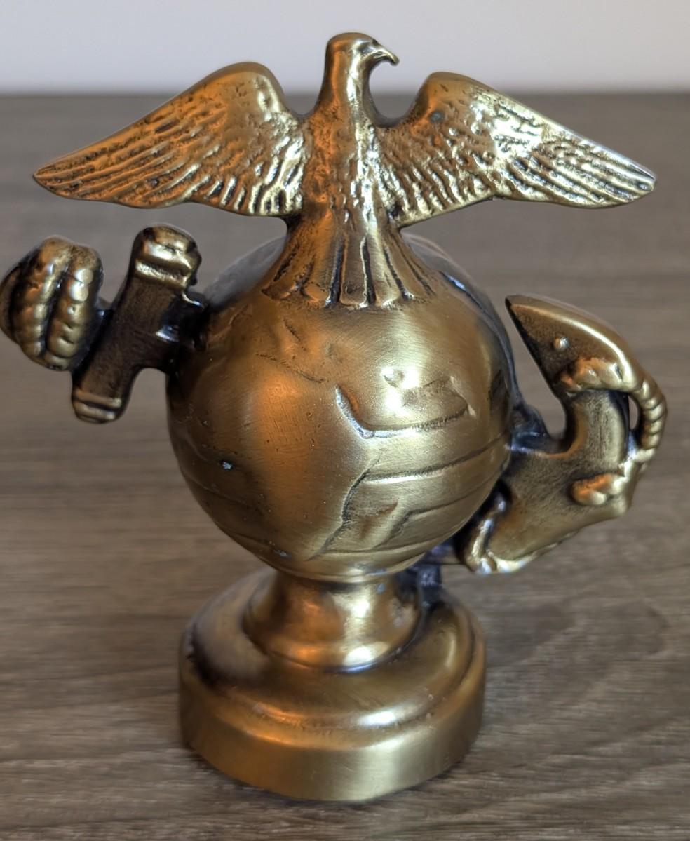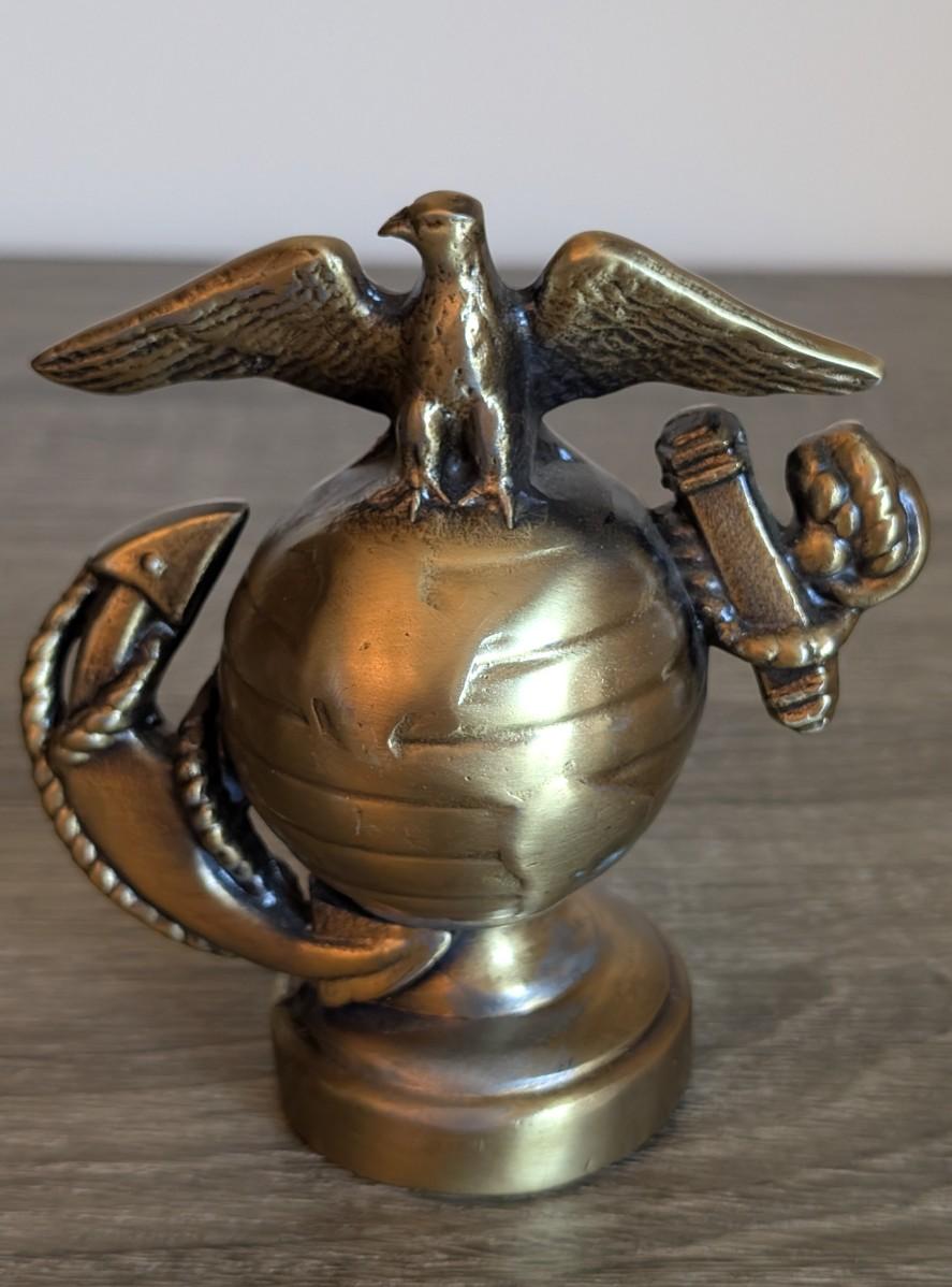 LOT 81K: Vintage Bronze/Brass Metal Desk Items, Lion Paperweight, Lady Justice Pen Holder & Love Of Money, Inc. USMC Bottle Opener