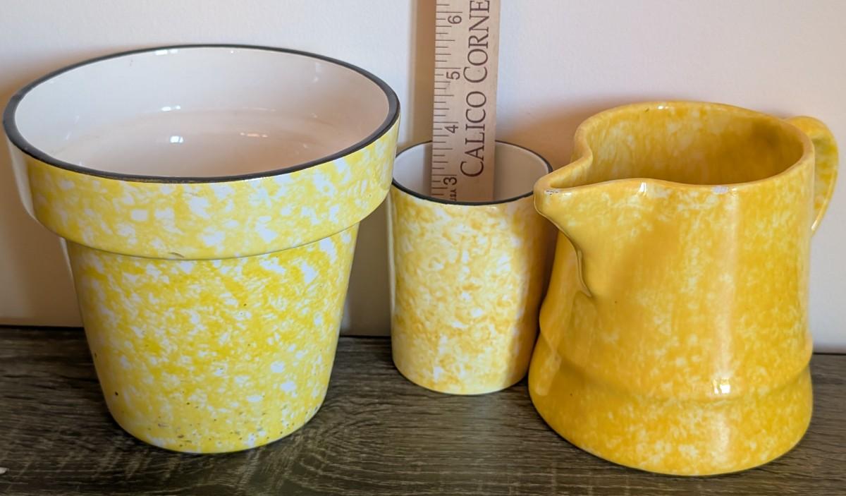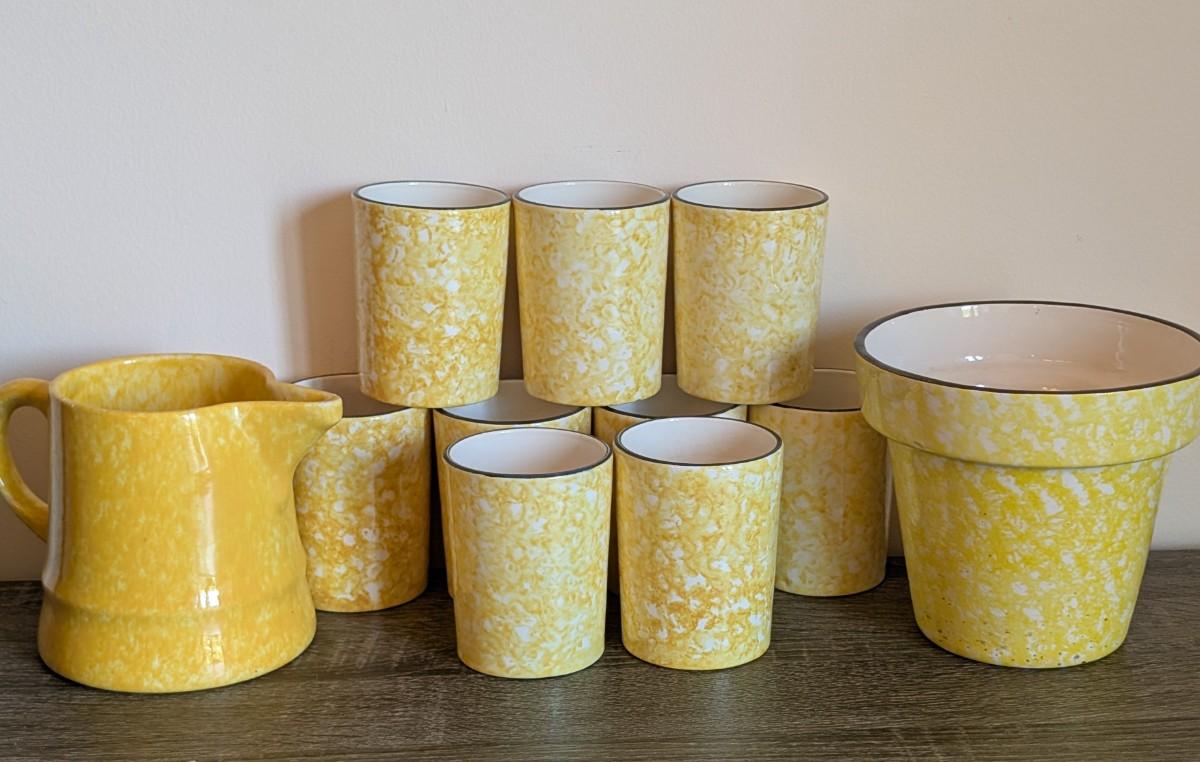 LOT 83K: Vintage Stangl Town & Country Yellow Pitcher Set With Flower Pot