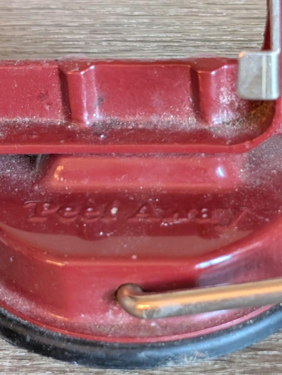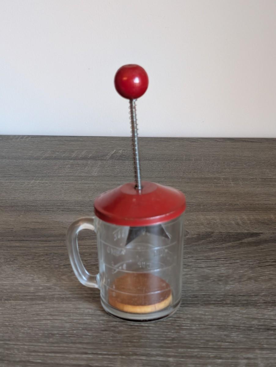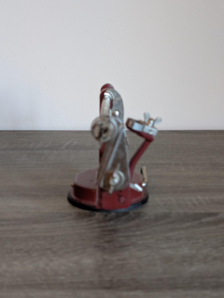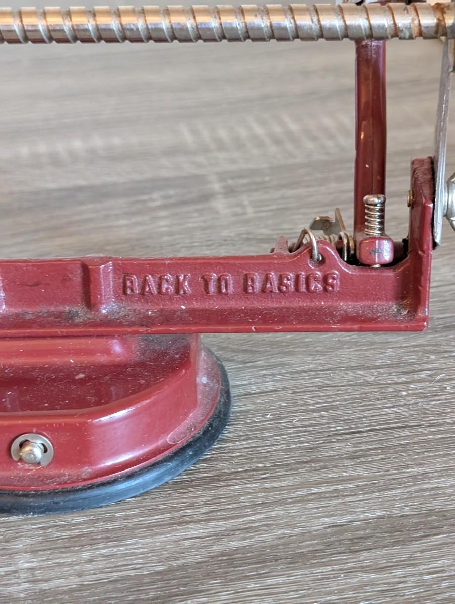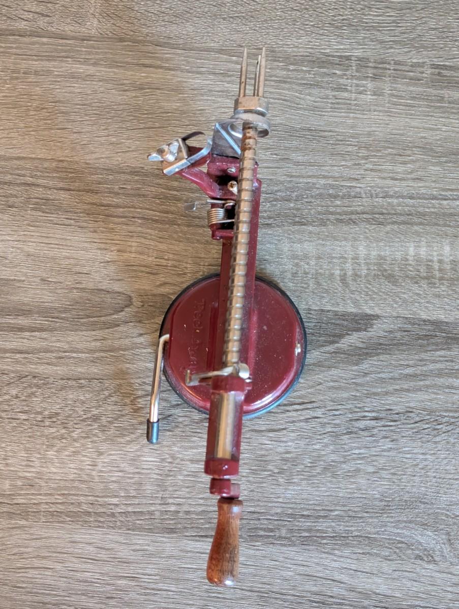 LOT 92K: How About Those Apples? Collectible Indiana Cast Iron Apple Peeler, Vintage Glass/Metal Food Chopper, Syrup Dispenser & Rolling Pin