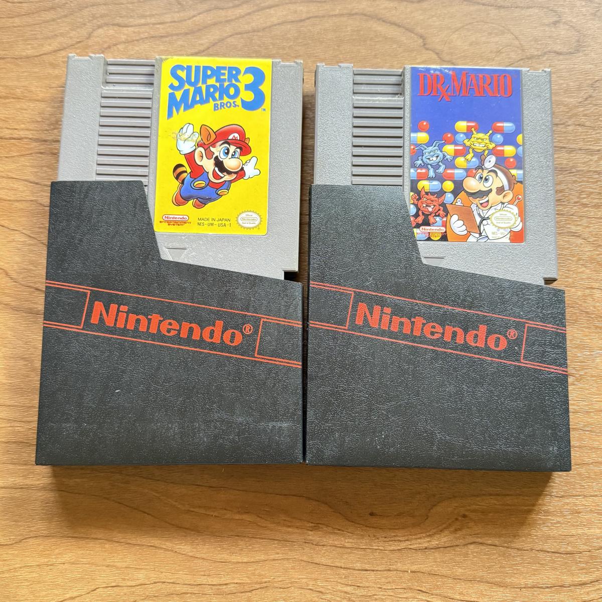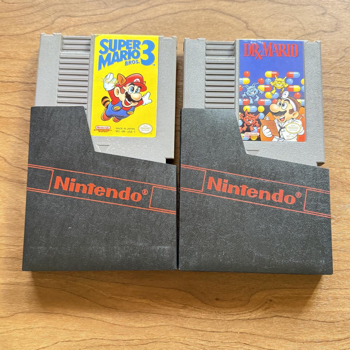 LOT 104F: 1985 Nintendo Entertainment System NES Game Cartridges w/ Nintendo Branded Sleeves: Super Mario Bros. 3 & Dr. Mario