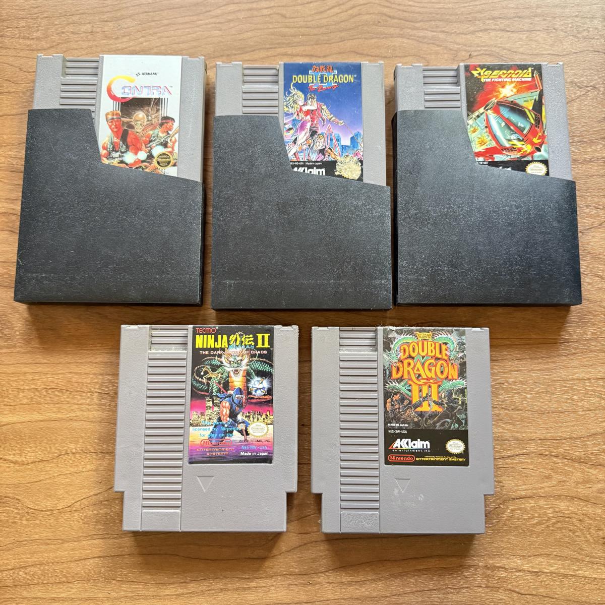 LOT 106F: 1980s-90s NES Game Cartridges: Double Dragon II, Double Dragon III, Ninja the II, Cybernoid & Contra