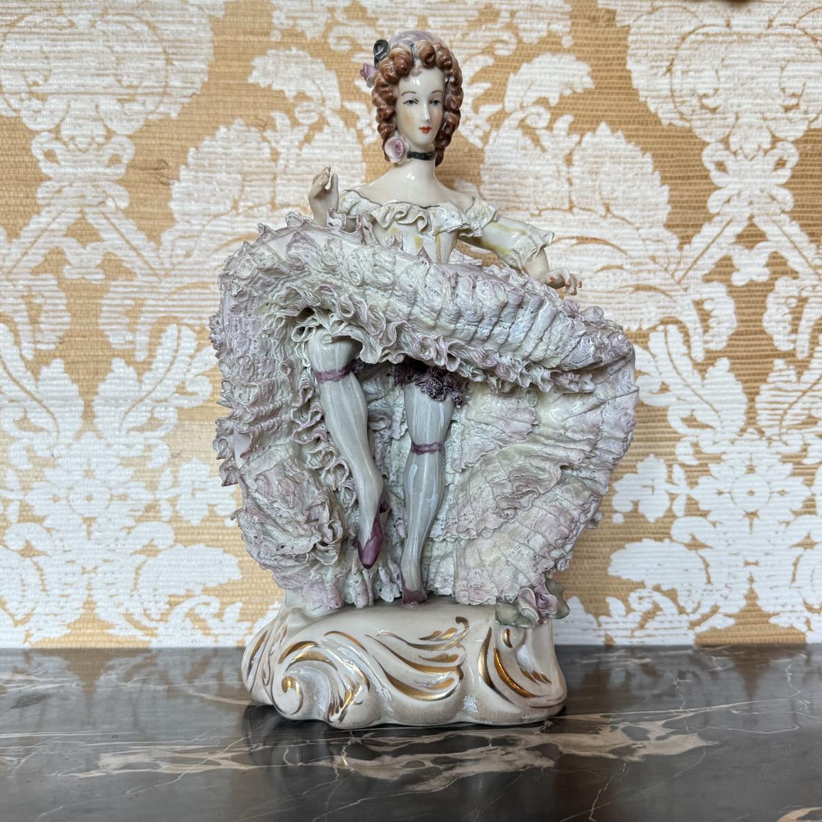 LOT 109D: Vintage circa 1940s Cybis Cordey Porcelain Can Can Dancer Figurine w/ Dresden Lace