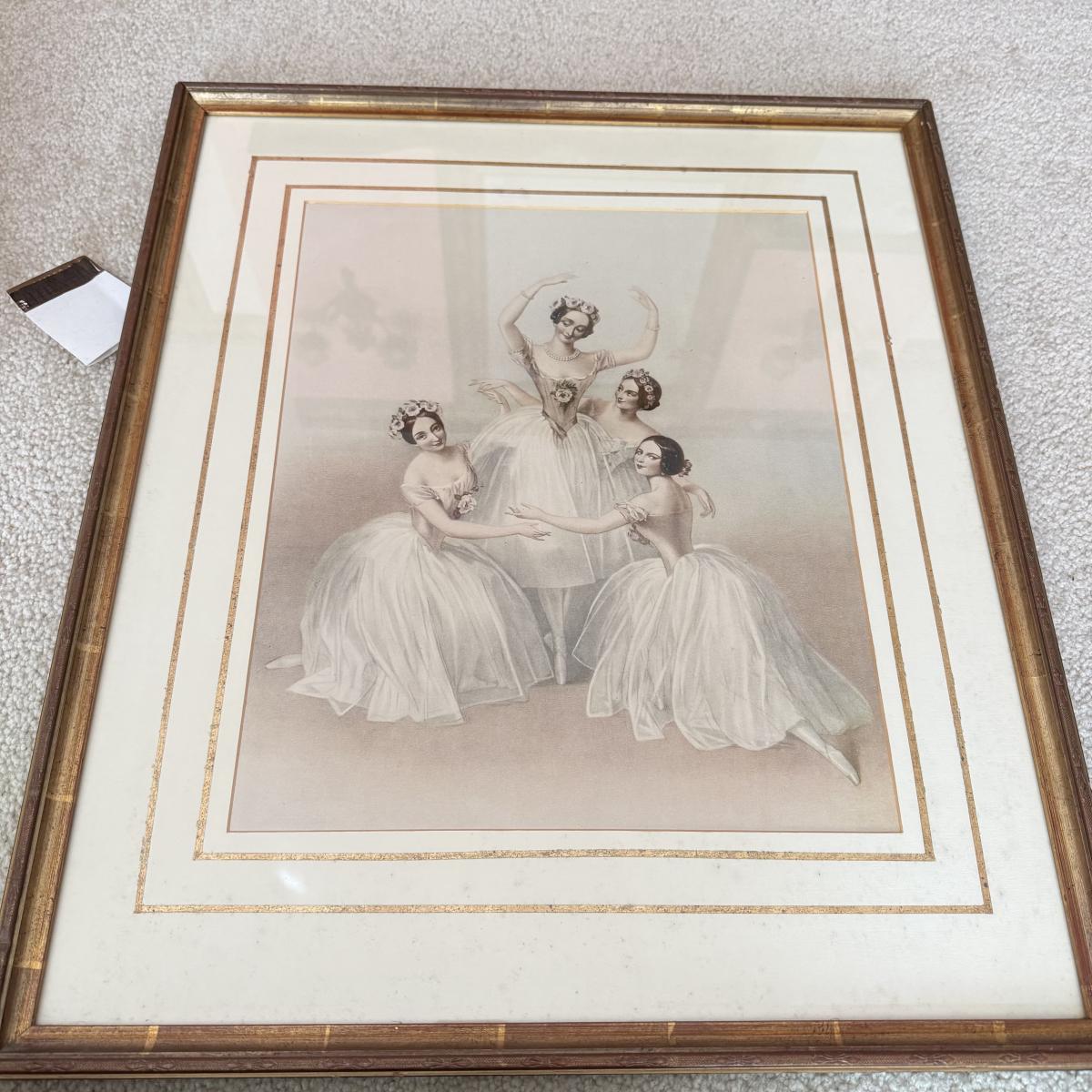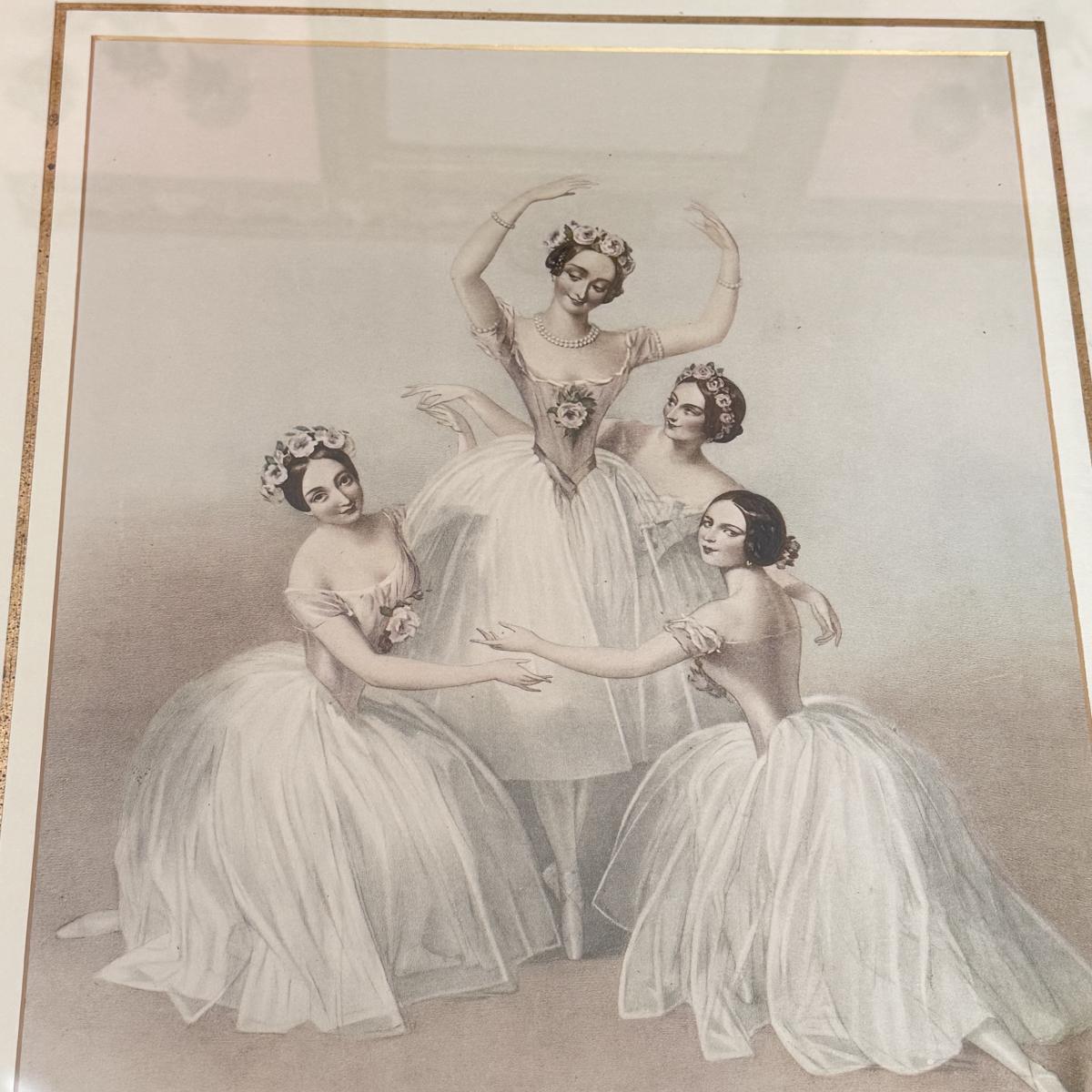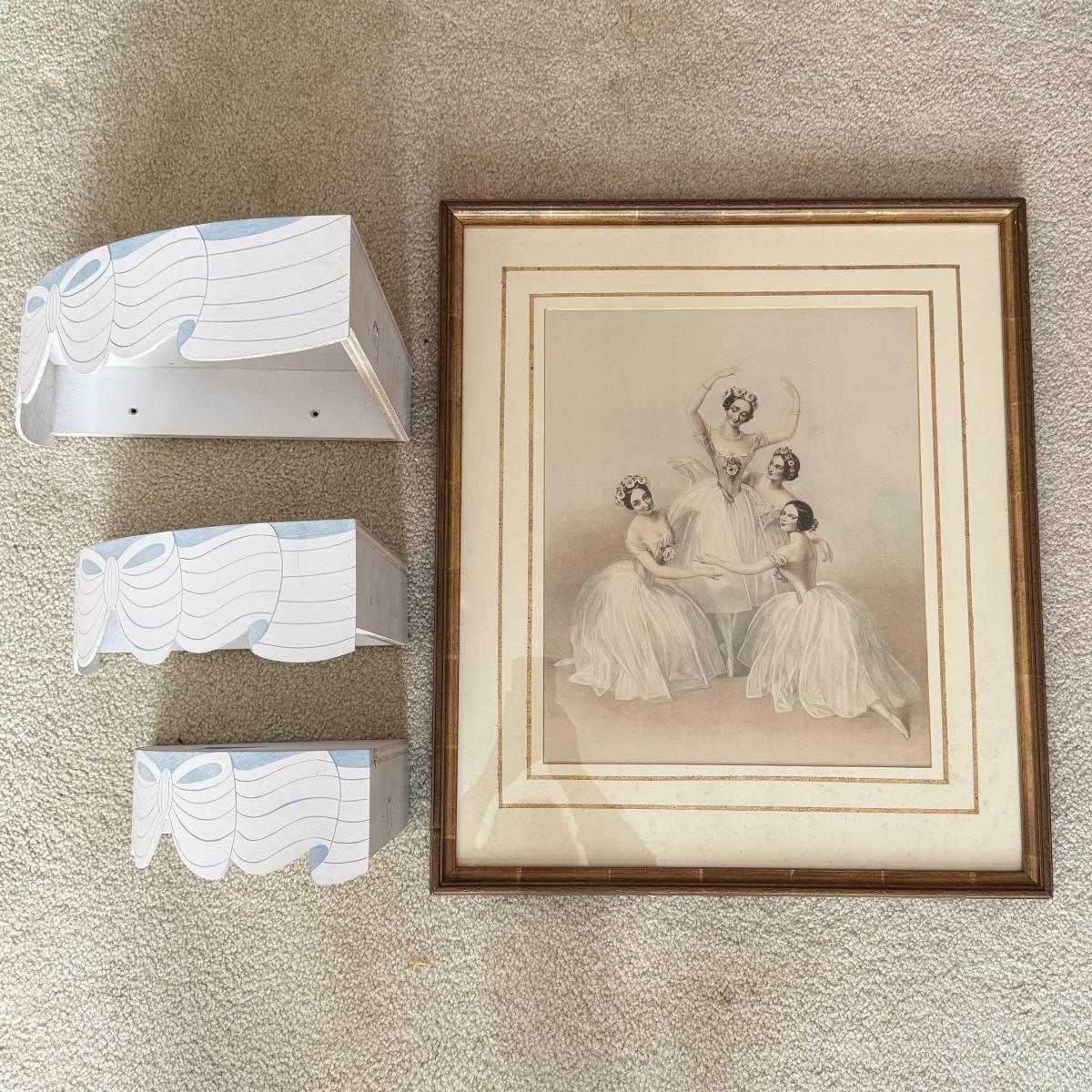 LOT 115L: Vintage Ethan Allen Print of Ballerinas by Thomas Herbert Maguire (British, 1821-1895) & 1991 PH Enterprise 3-Tier Corner Shelf Set