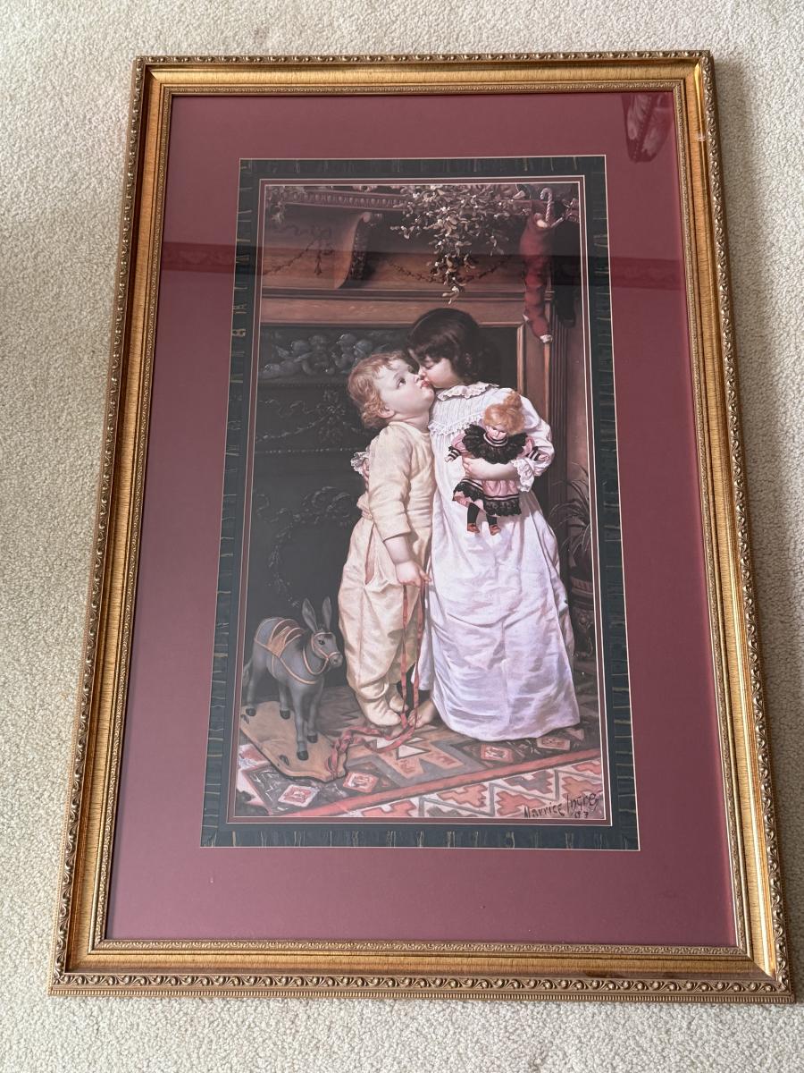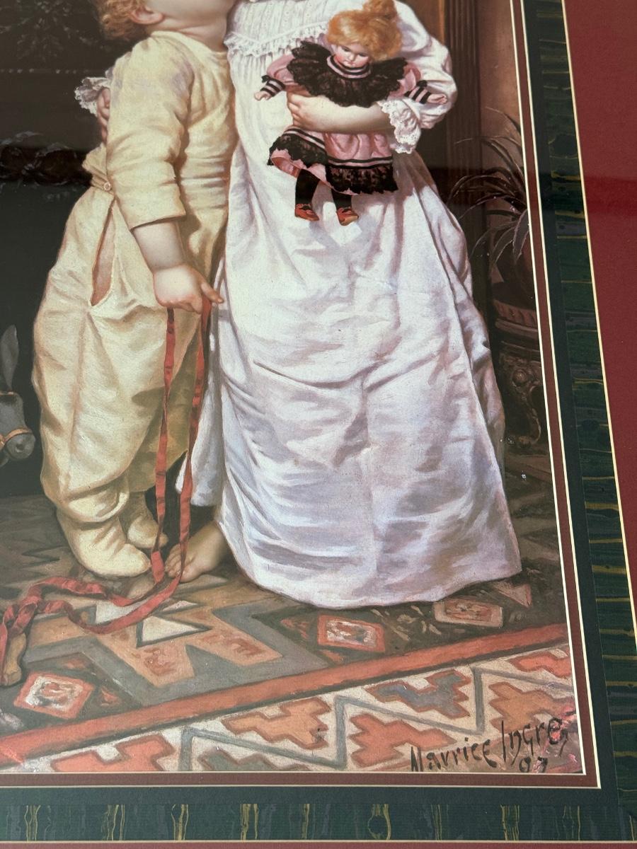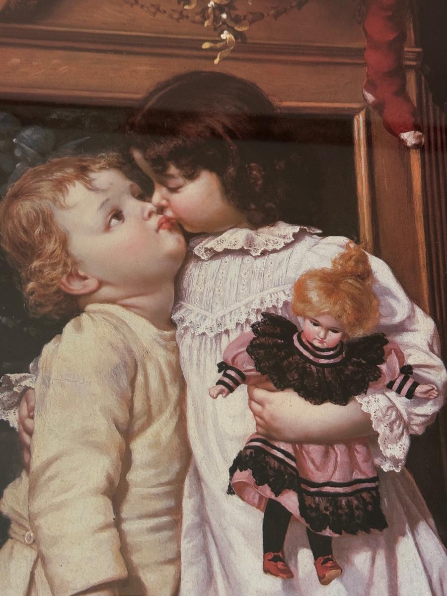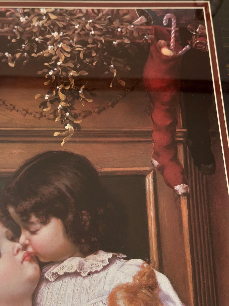LOT 117L: Vintage "Under the Mistletoe" by Maurice Ingres (American/French 1855-?) Matted & Framed Art Print #2003 Crown Fine Arts