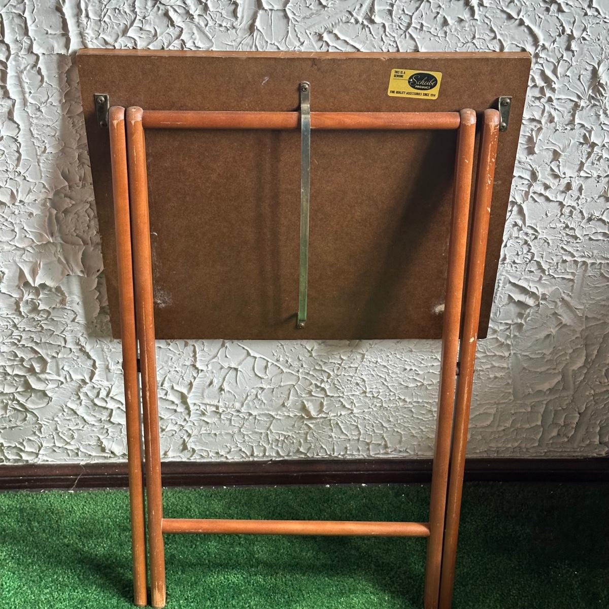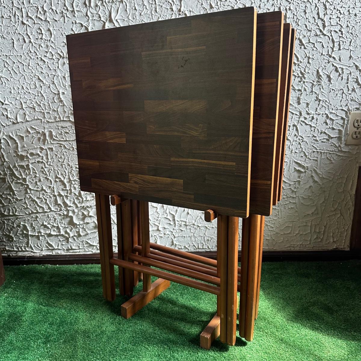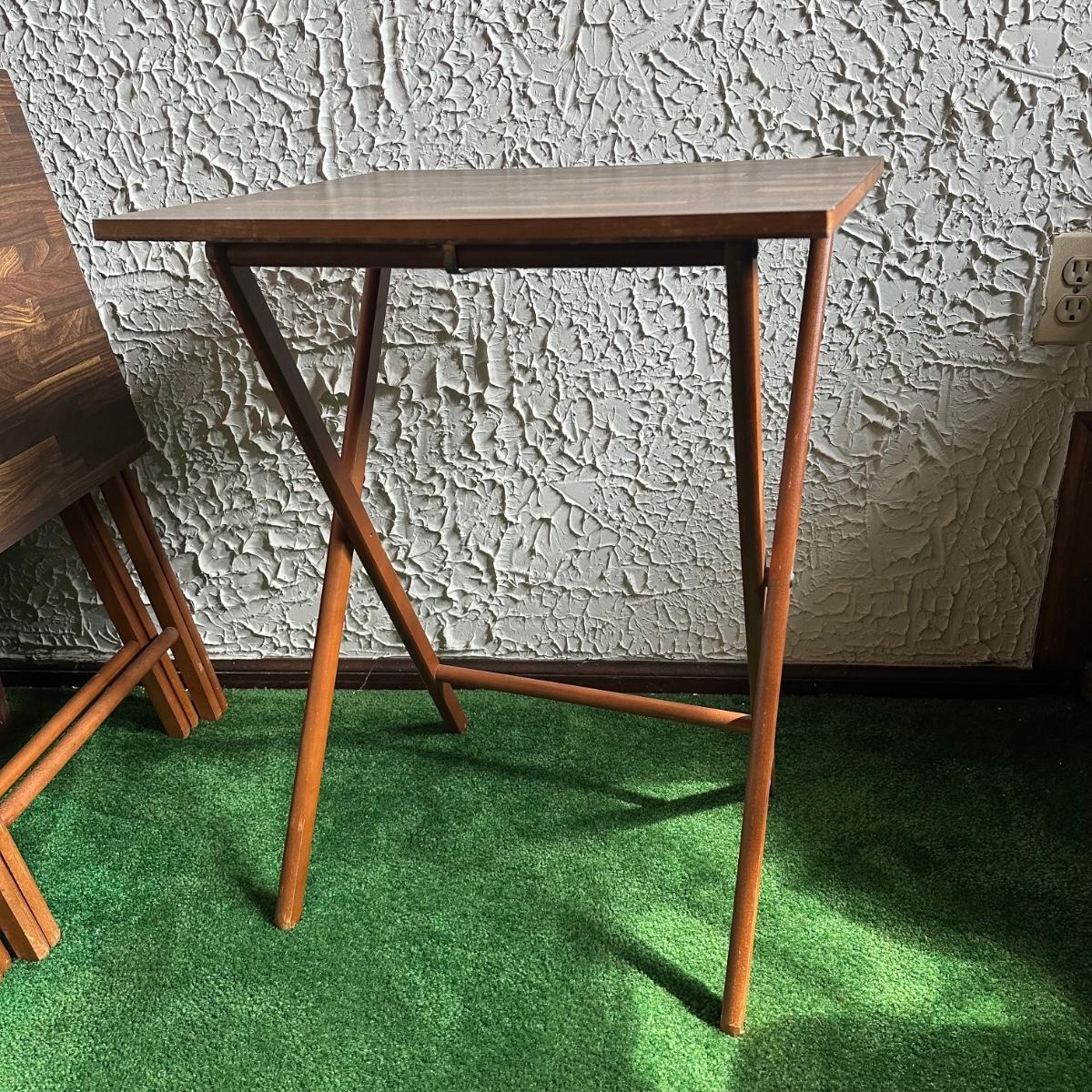 LOT 137F: 4 Mid Century Modern Scheibe Folding Stackable TV Tray Tables w/ Stand