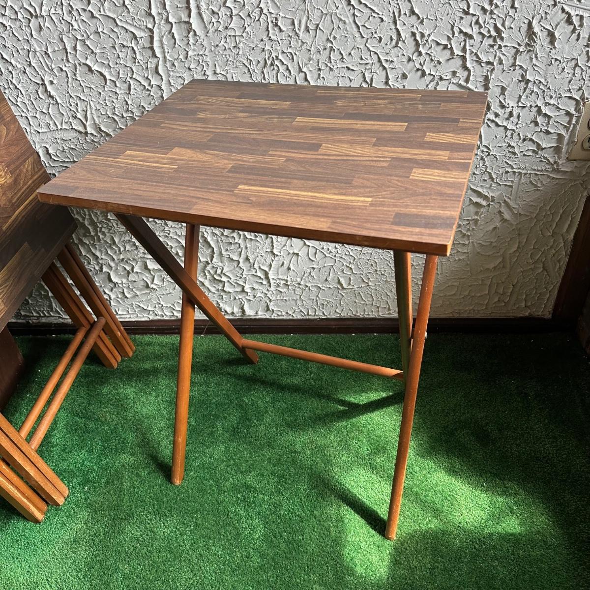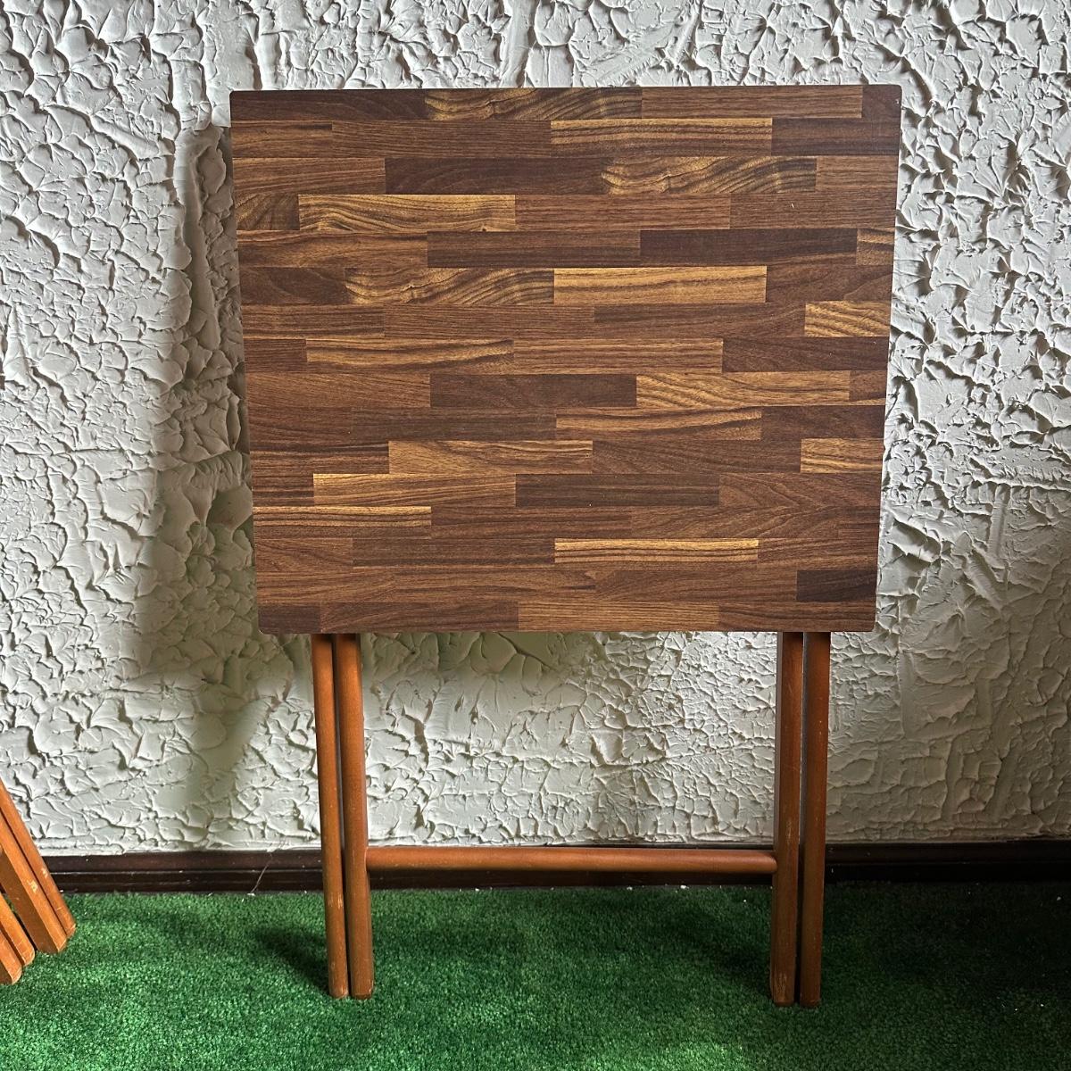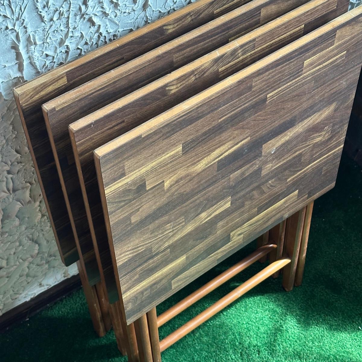 LOT 137F: 4 Mid Century Modern Scheibe Folding Stackable TV Tray Tables w/ Stand