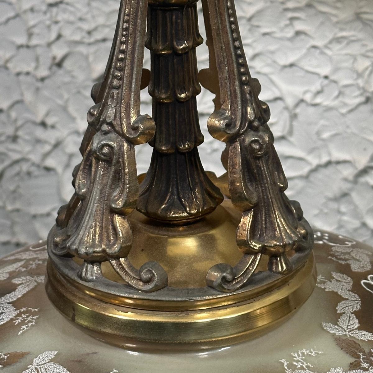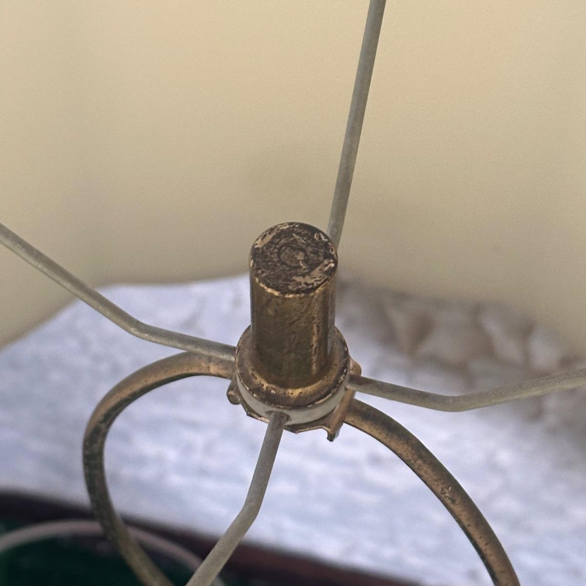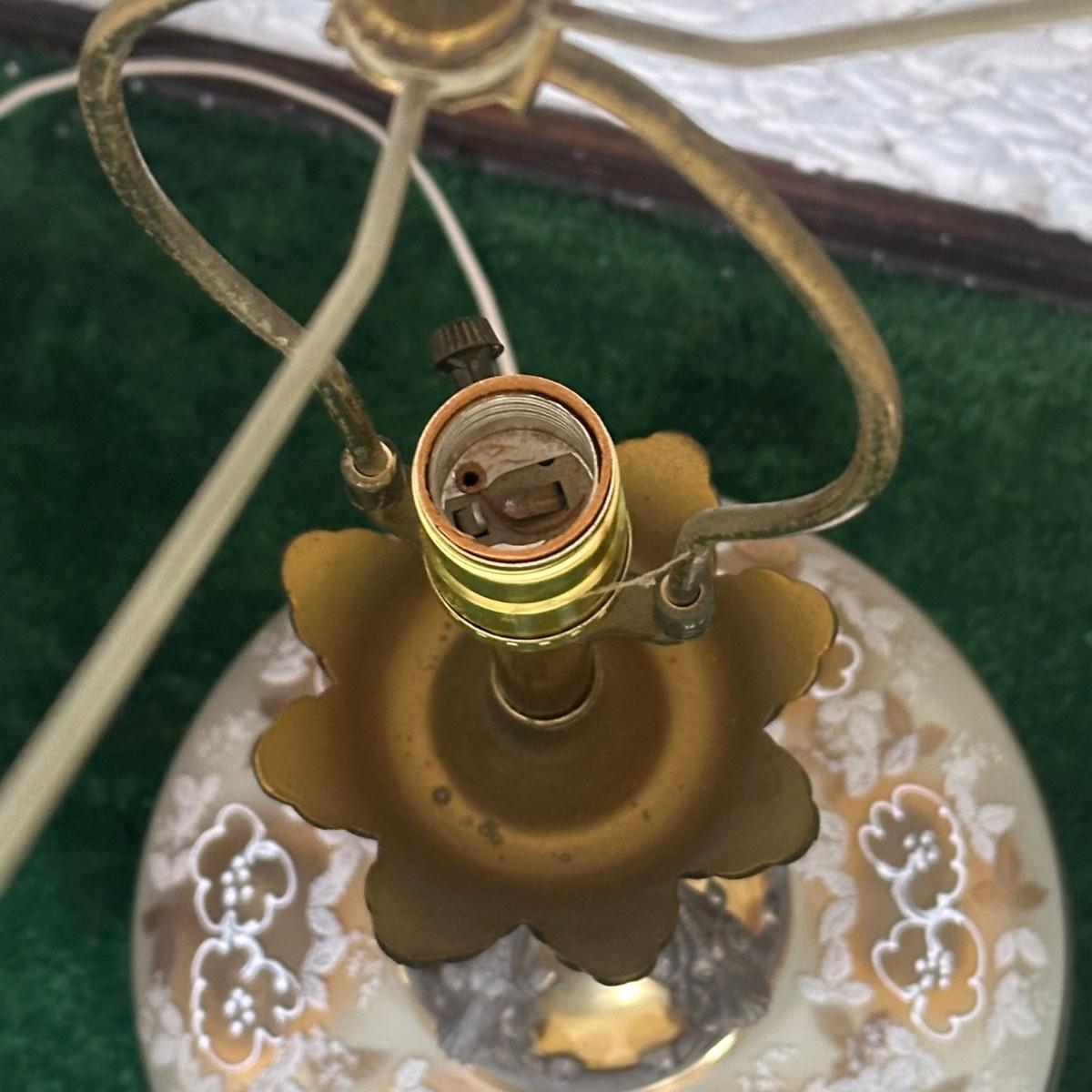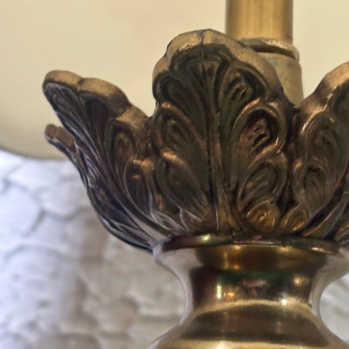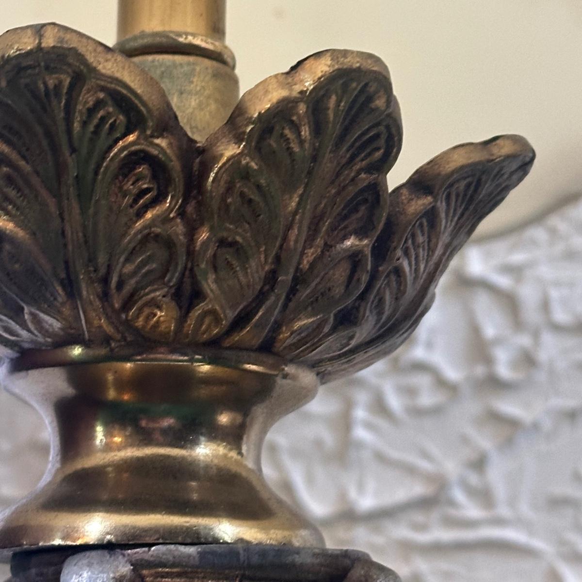 LOT 142F: Pair Of Stunning Vintage MCM Glass Brass & Marble Table Lamps with/ Shades