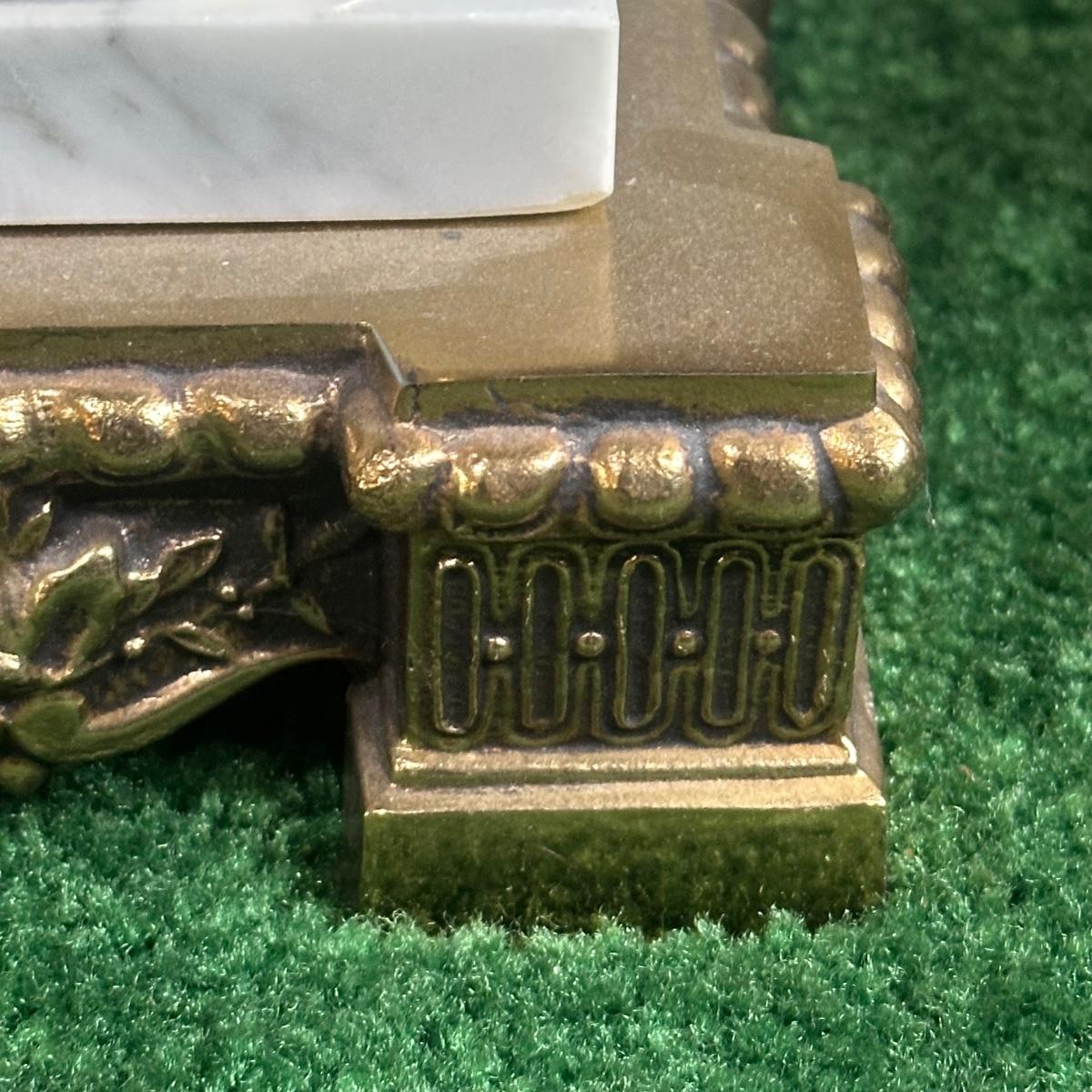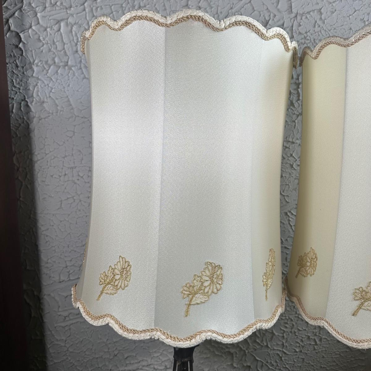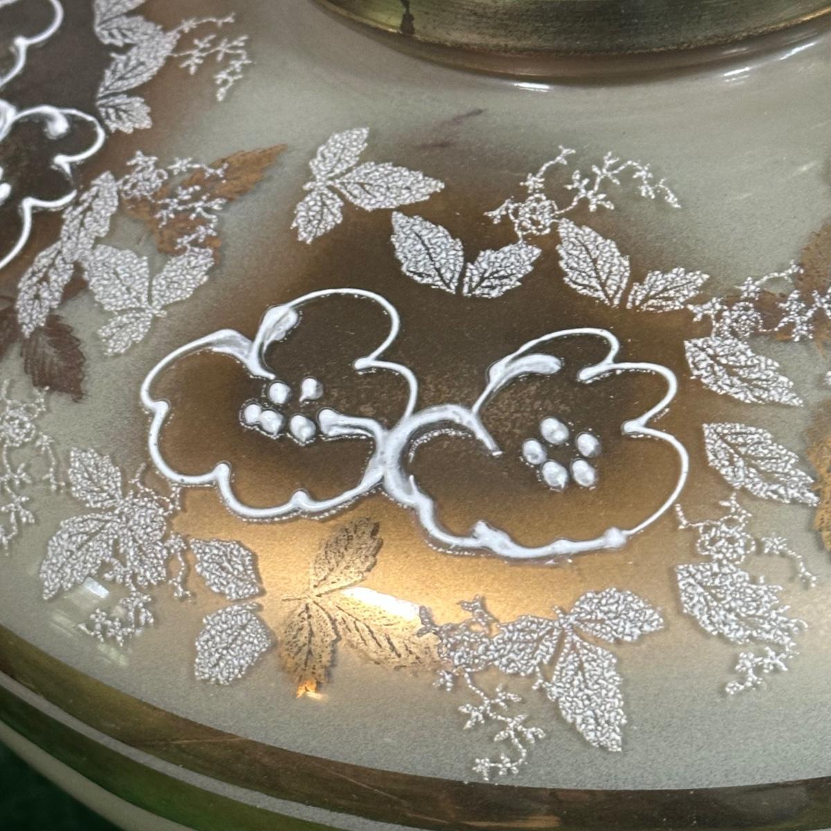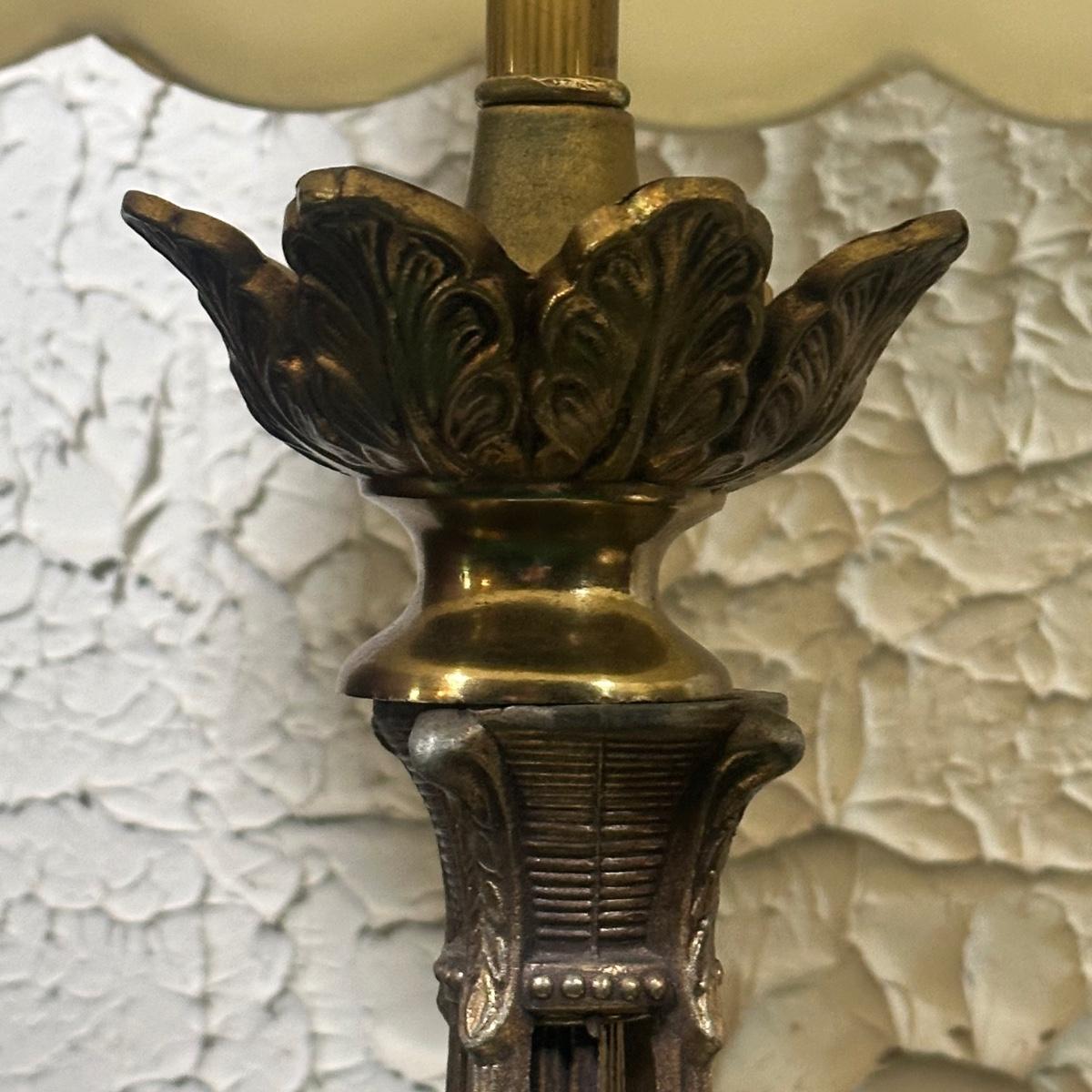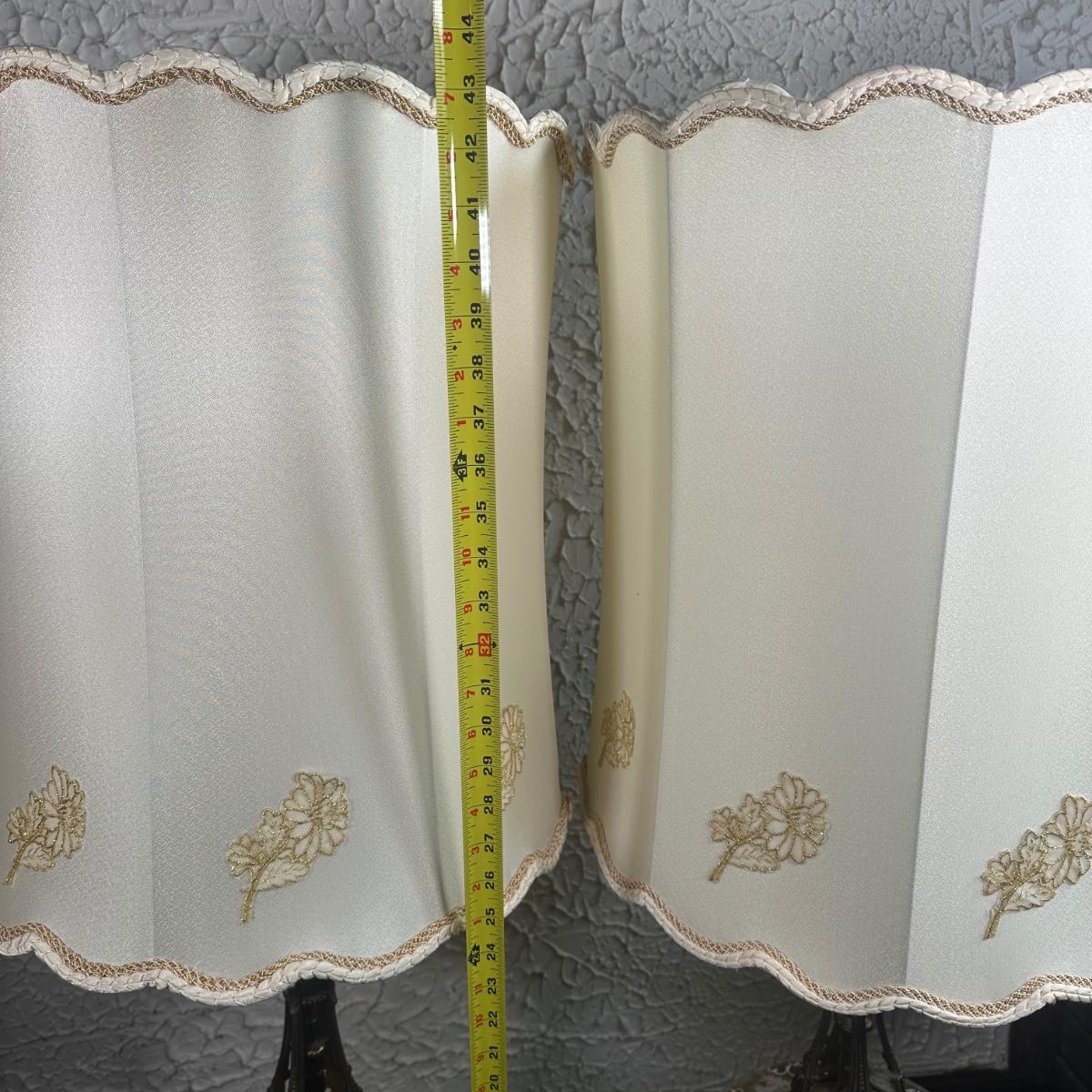 LOT 142F: Pair Of Stunning Vintage MCM Glass Brass & Marble Table Lamps with/ Shades