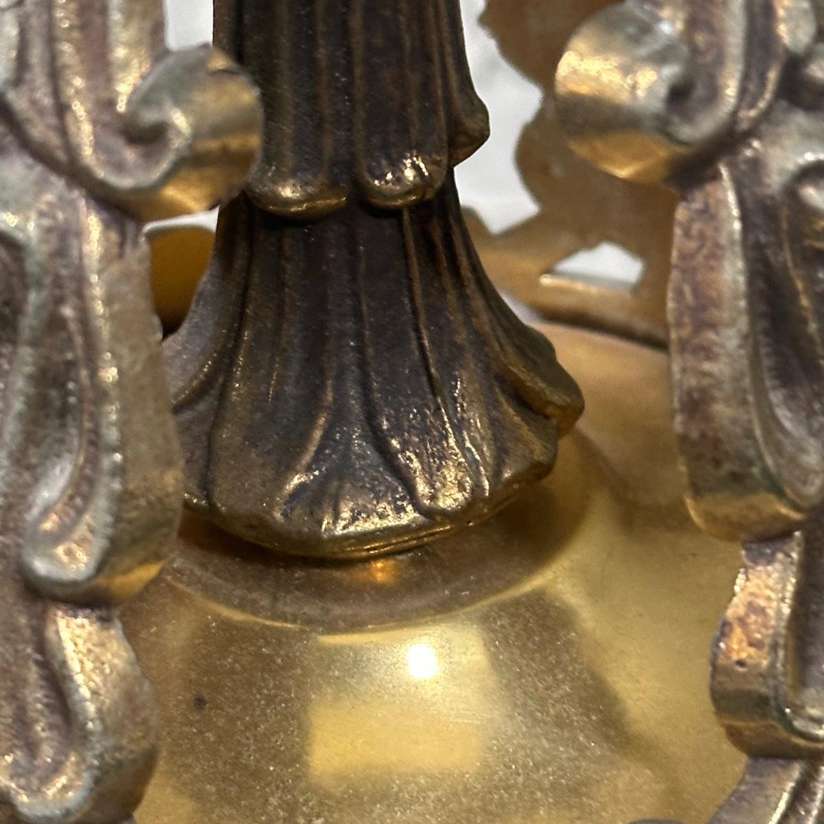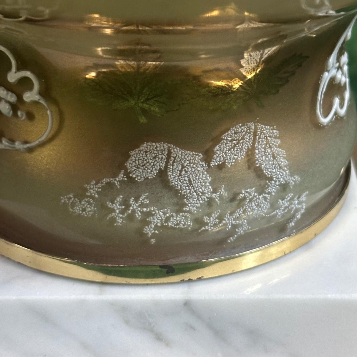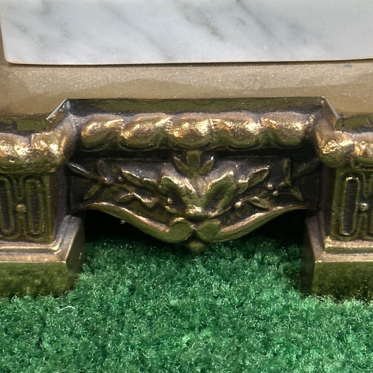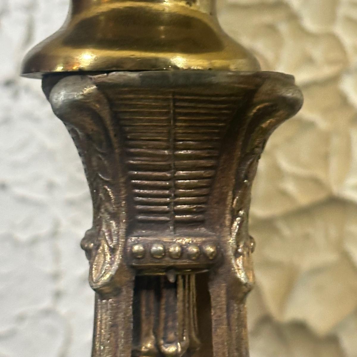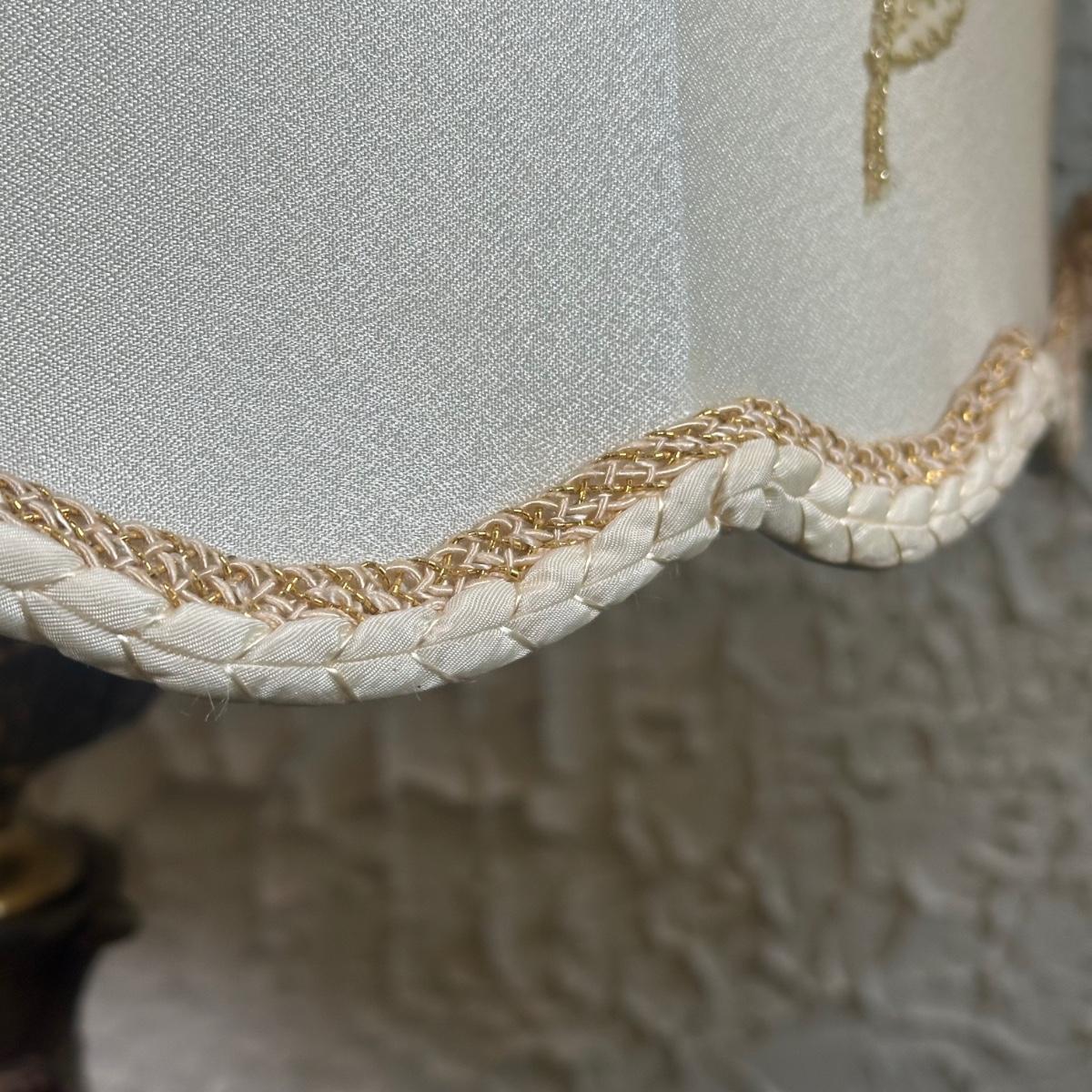 LOT 142F: Pair Of Stunning Vintage MCM Glass Brass & Marble Table Lamps with/ Shades