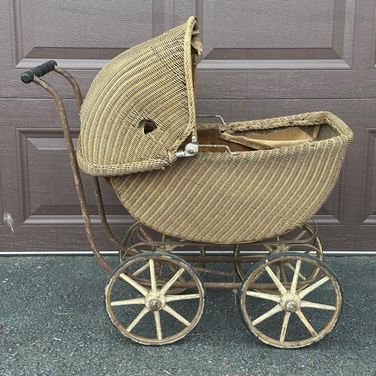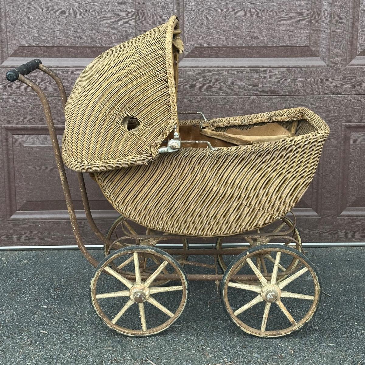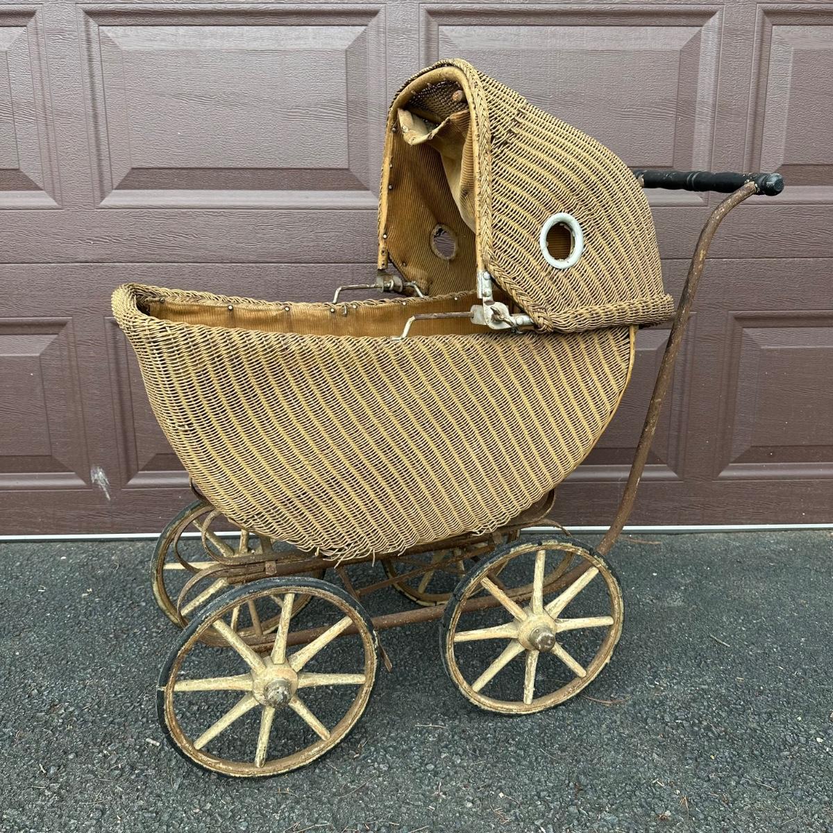 LOT 150G: Antique Victorian Wicker Baby Stroller/Buggy Circa Early 19th Century