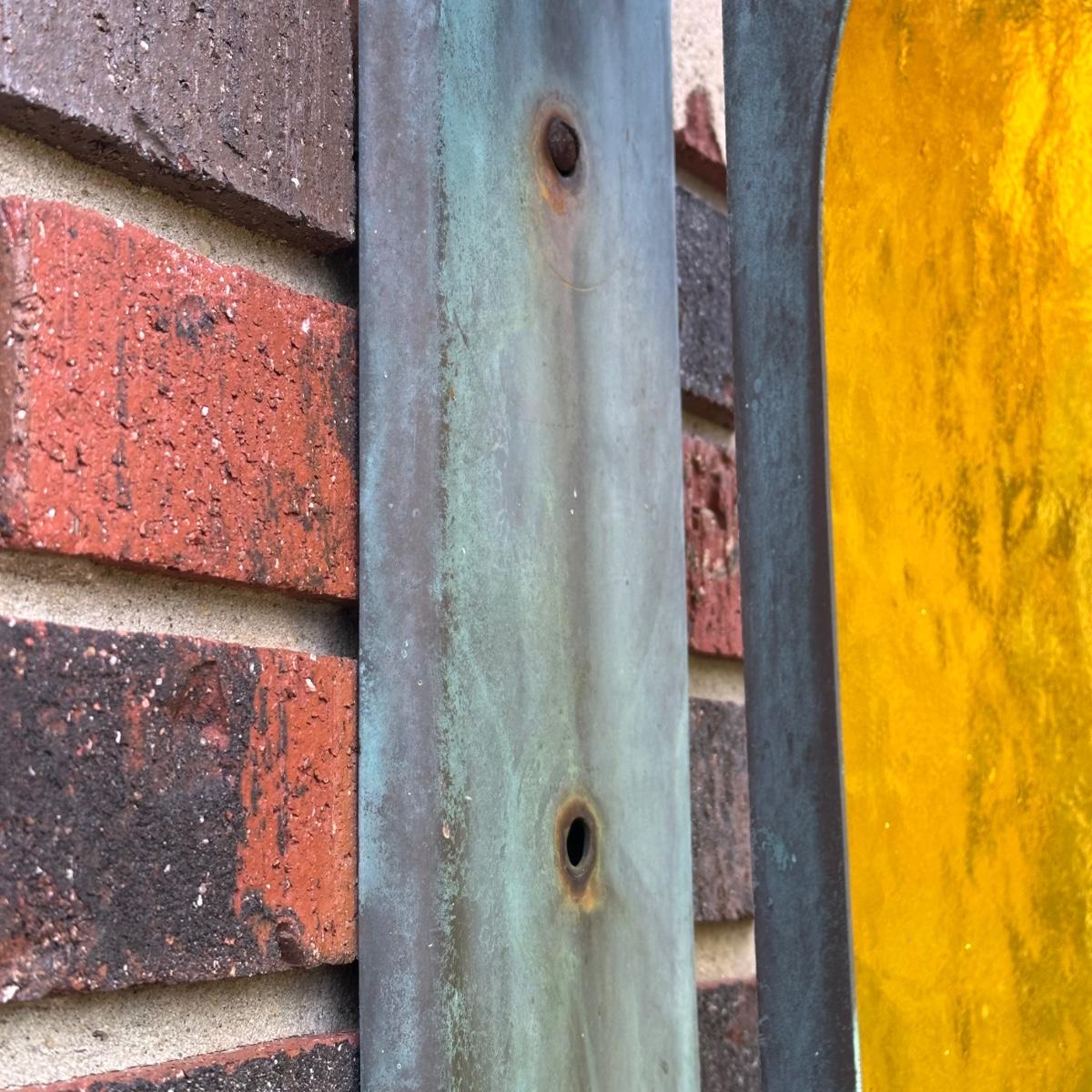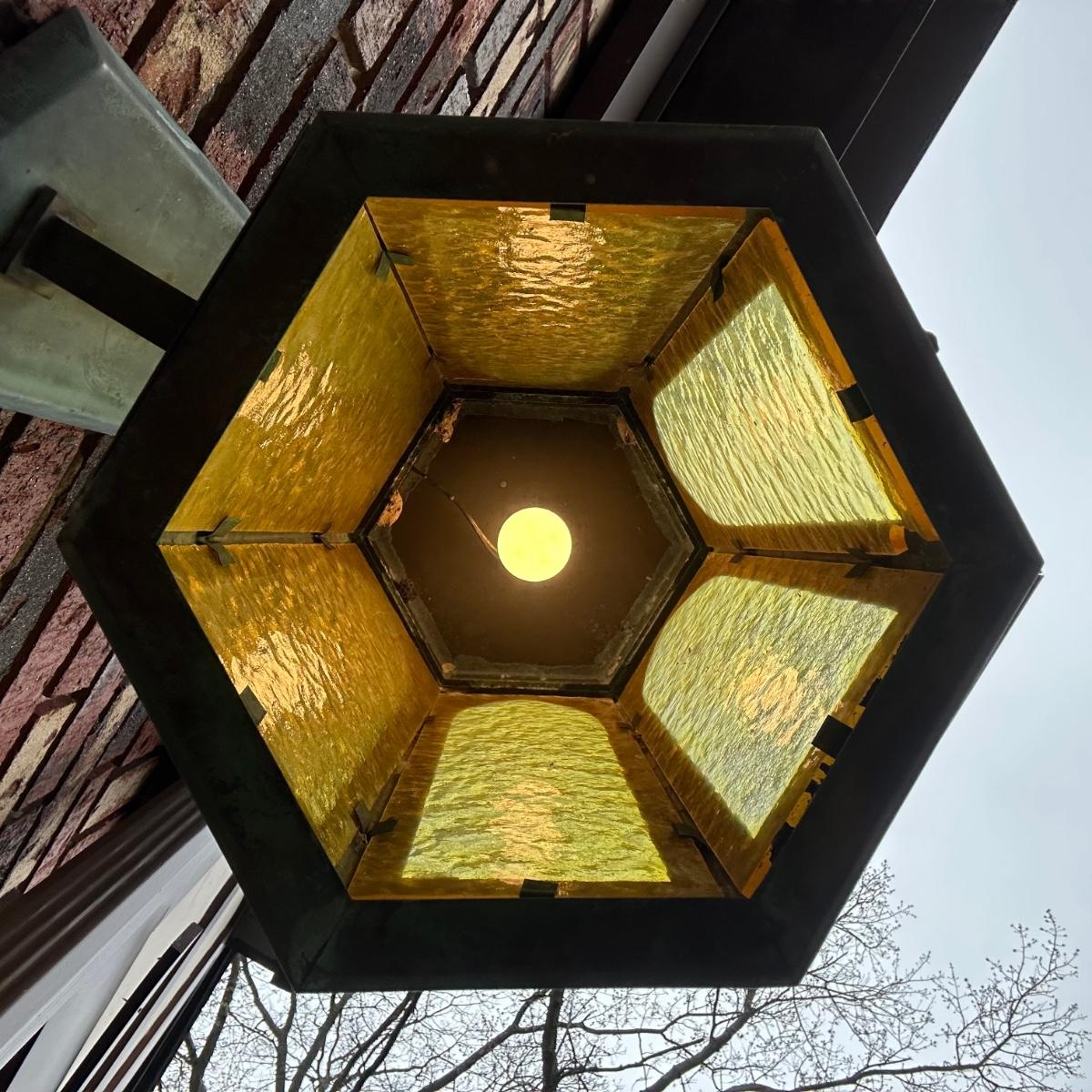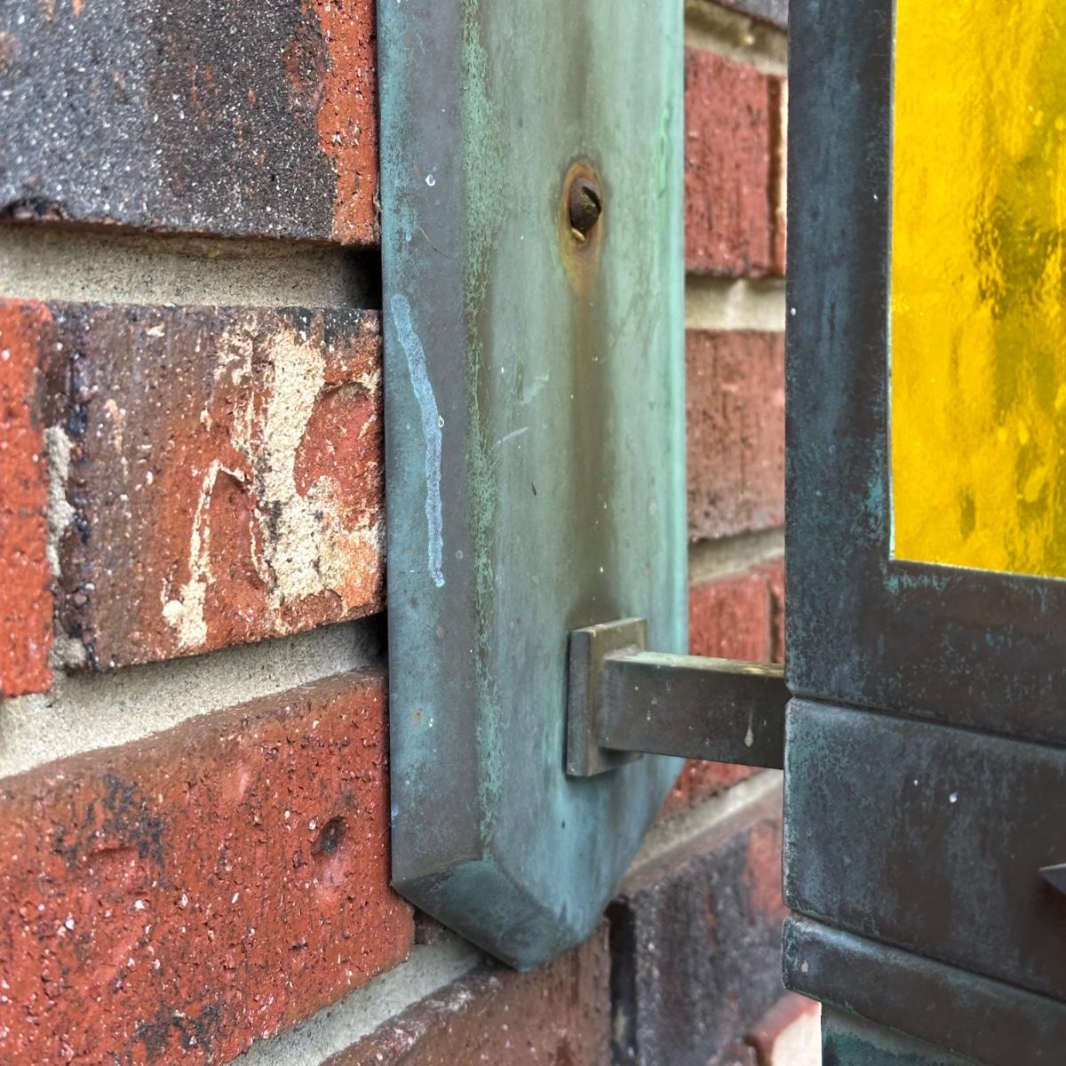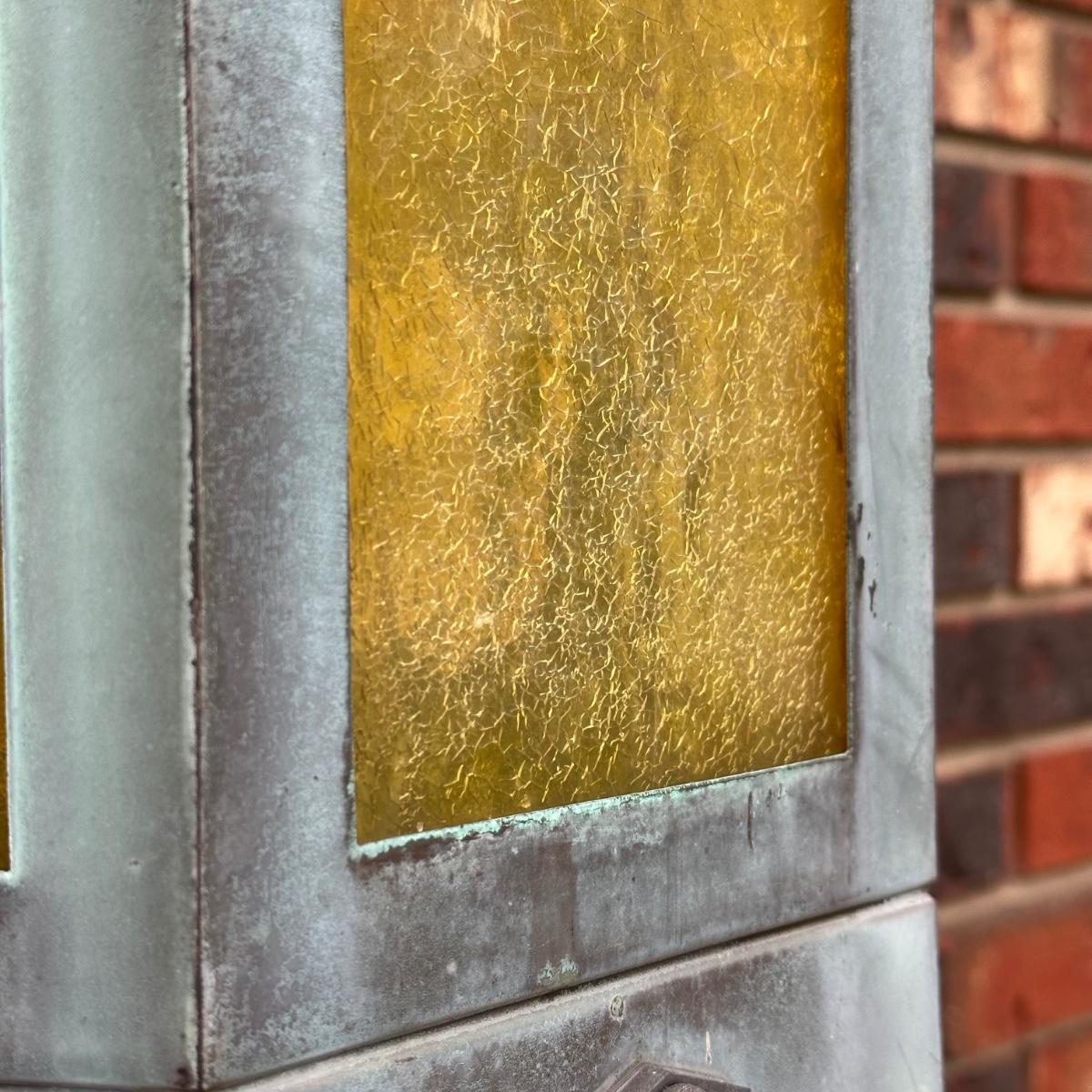 LOT 154O: Pair Antique Gothic Cathedral Castle Style Stained Glass Lantern Outdoor Sconces