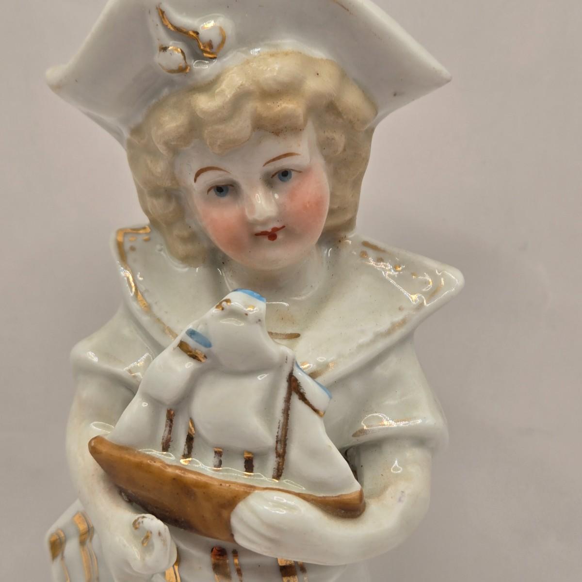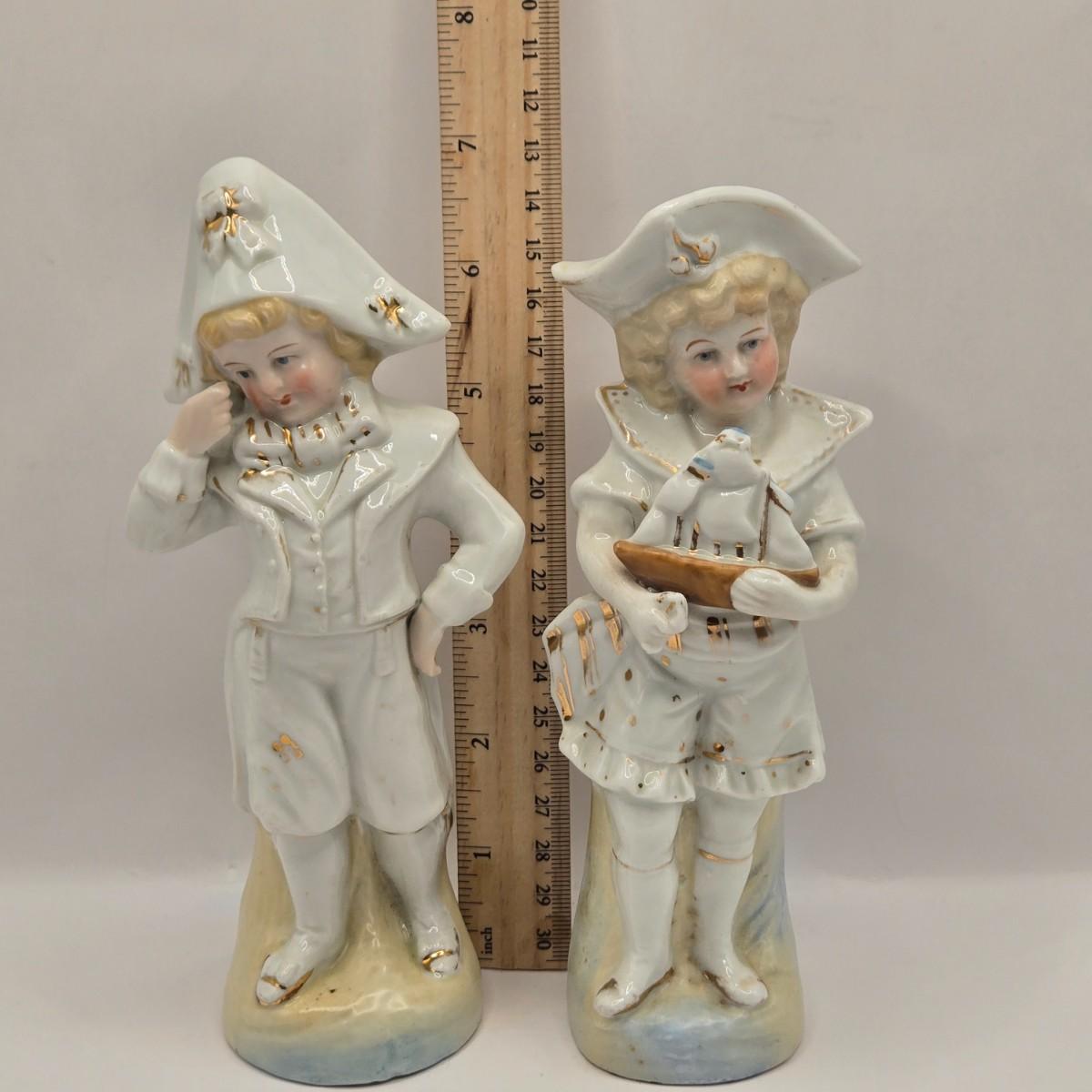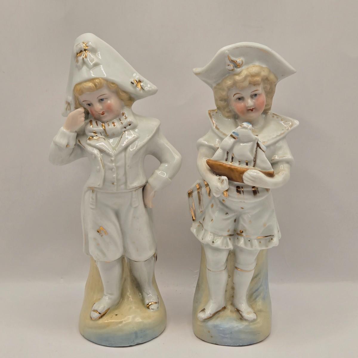 LOT 168F: Pair of Late 19th, Early 20th Century Antique German Figures of Boys in Sailor-Inspired Clothing