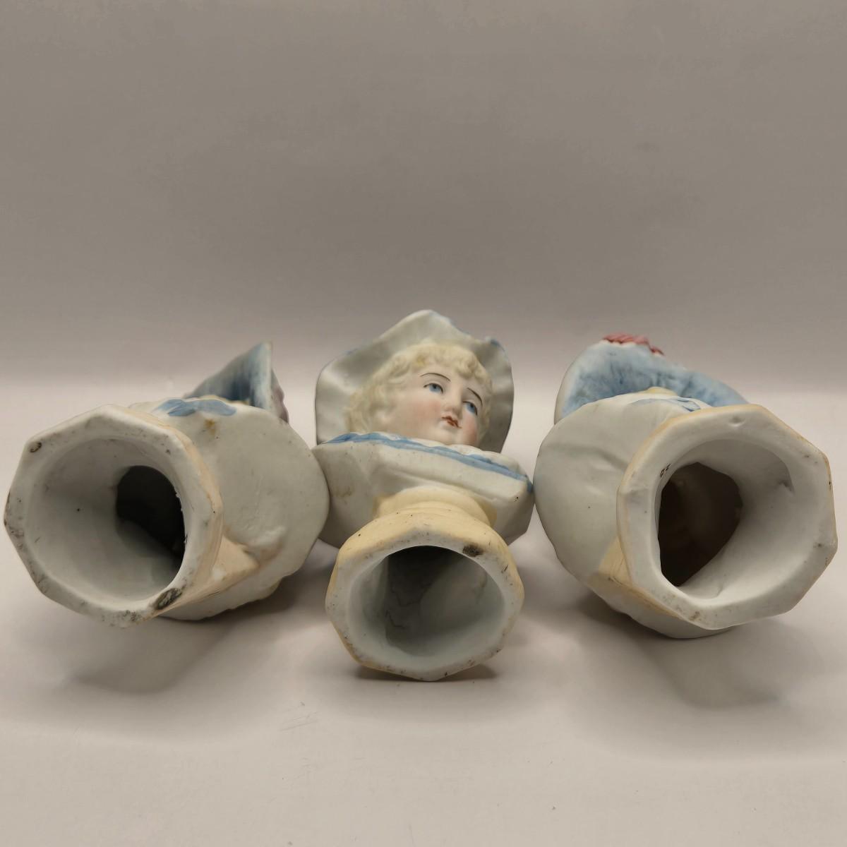LOT 173F: Antique circa 1910s Hand Painted German Bisque Porcelain Lady Busts (one w/ Wire Glasses)