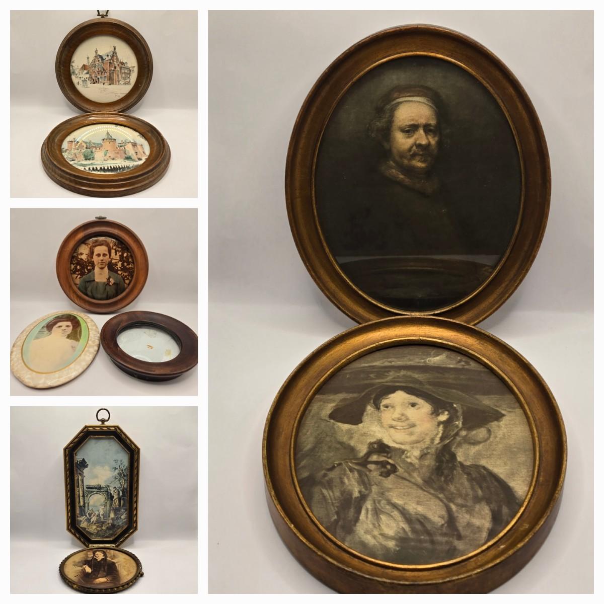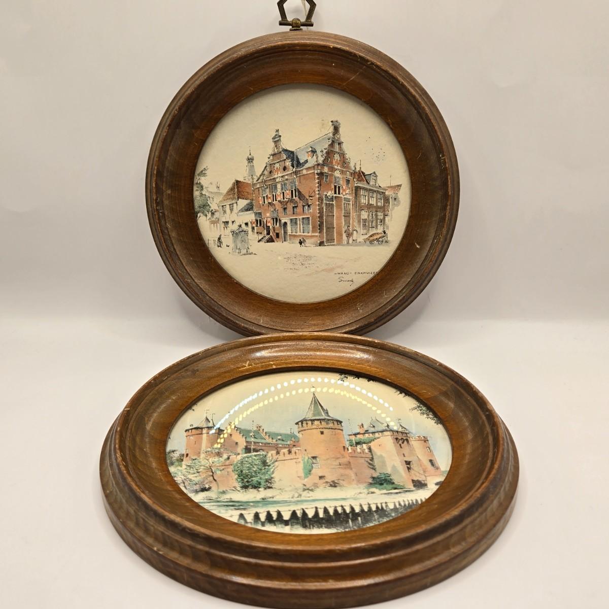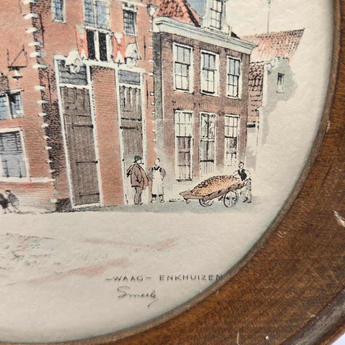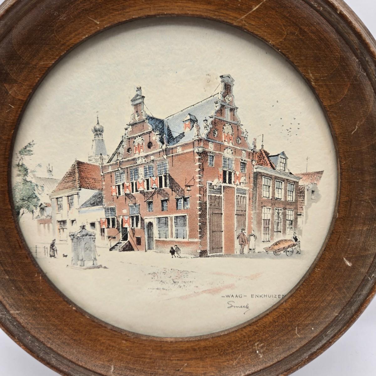 LOT 178F: Two European Prints in Round Frames/ One Signed Smeele WAAG ENKHUIZEN, Multiple Victorian Portrait Prints, & The Ruins of Temple of Vespasian Print