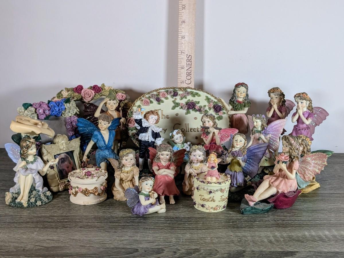 LOT 186K: The Fairy Collection By Denzine, Includes Rare Sign Banner, Picture Frames, Trinket Boxes & A Huge Variety Of Enchanted Fairies