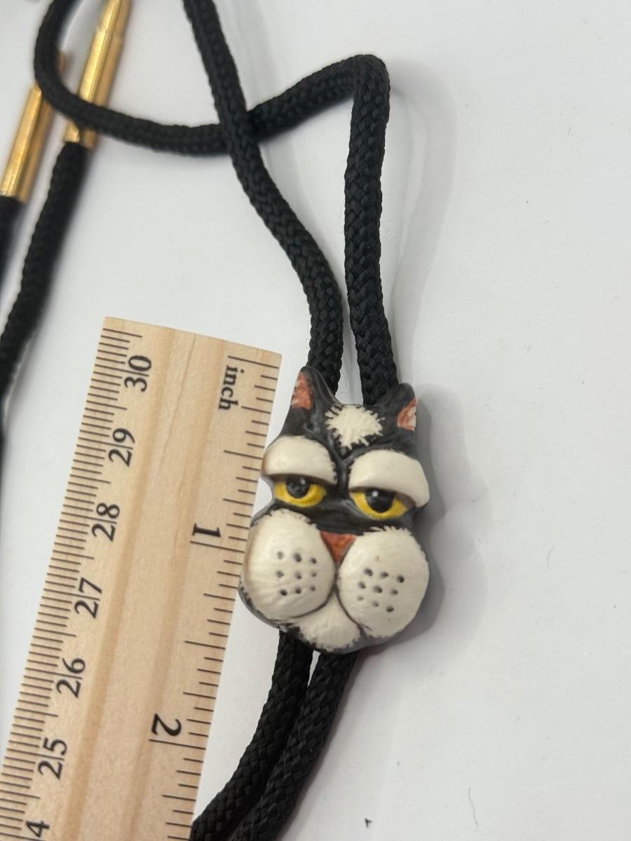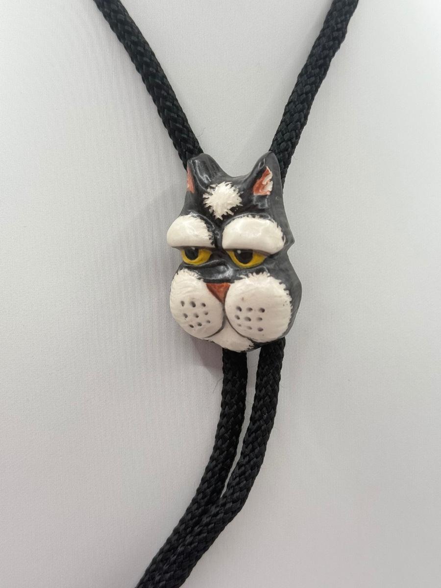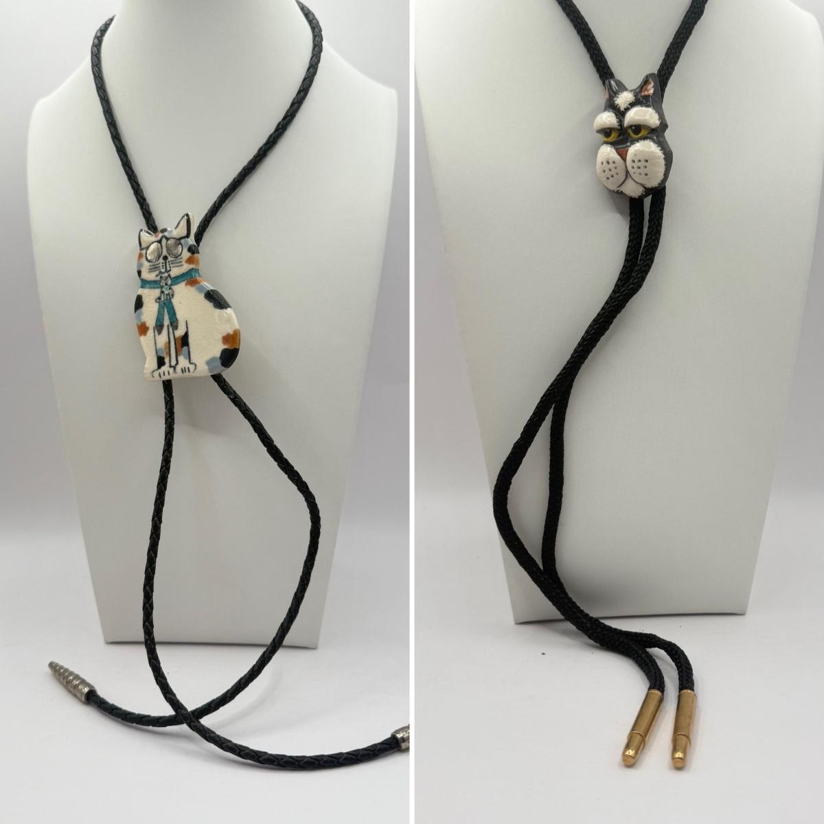 LOT 190J: Two Painted Clay Cat Bolo Ties