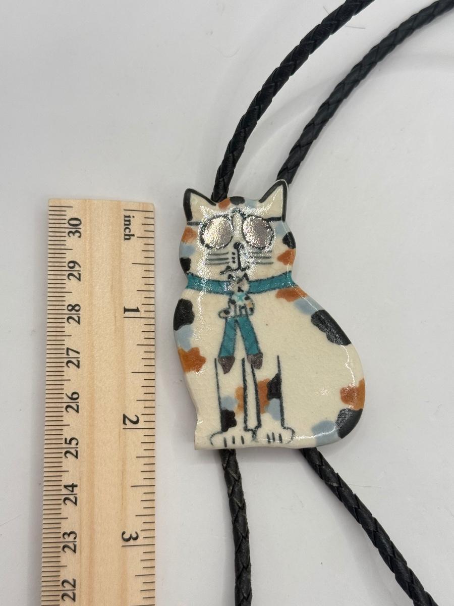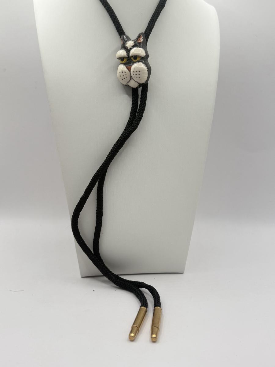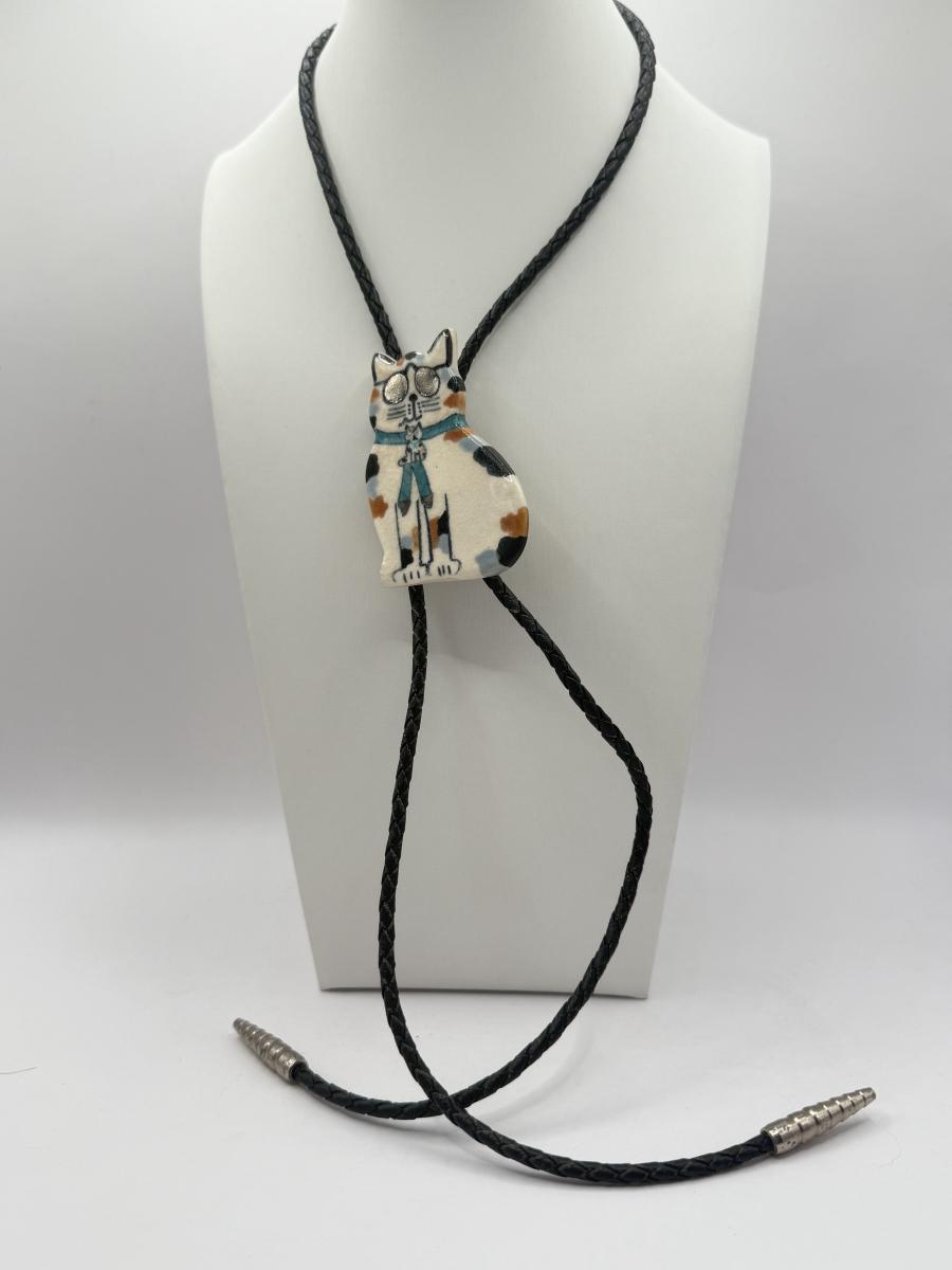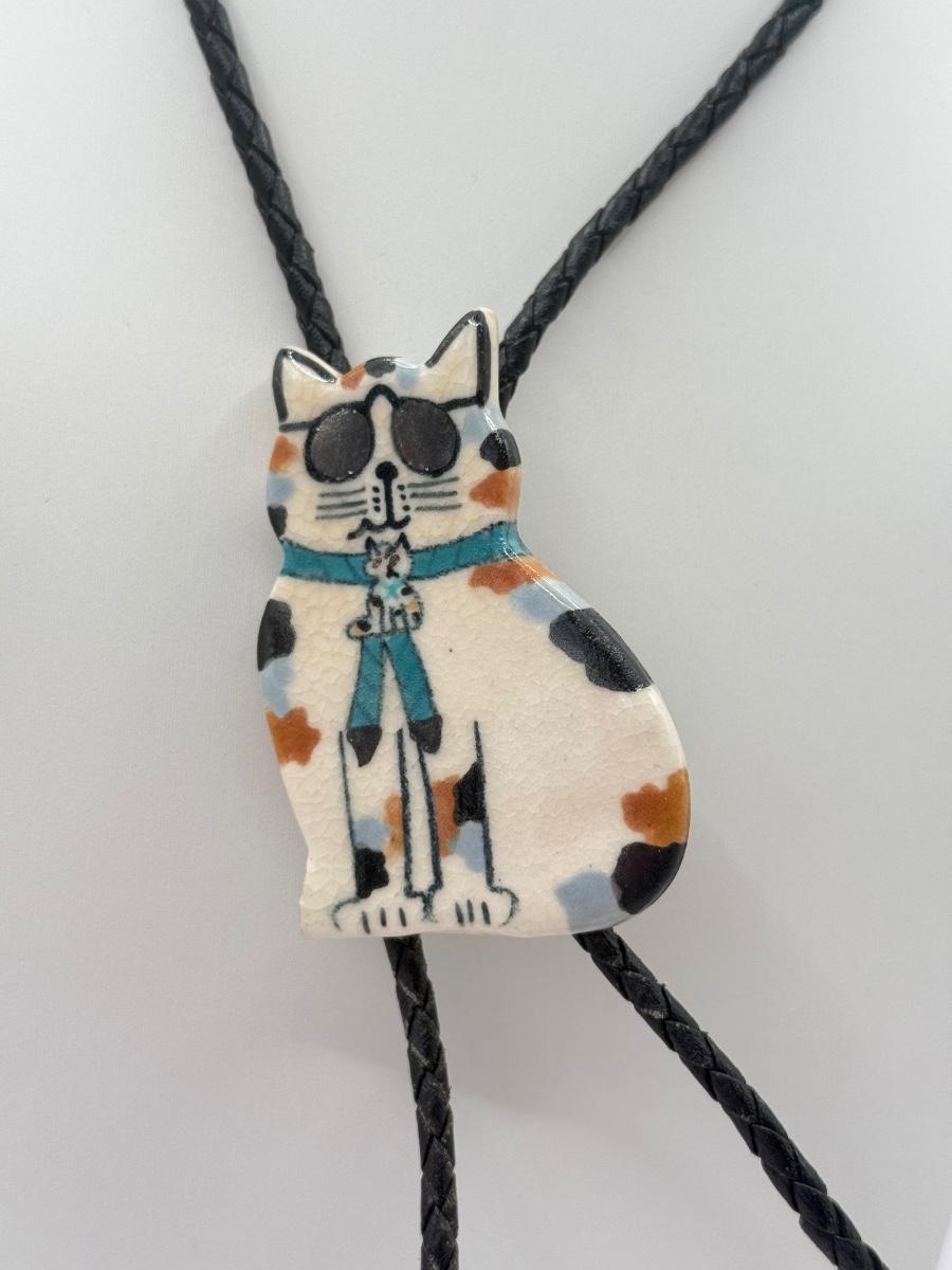 LOT 190J: Two Painted Clay Cat Bolo Ties