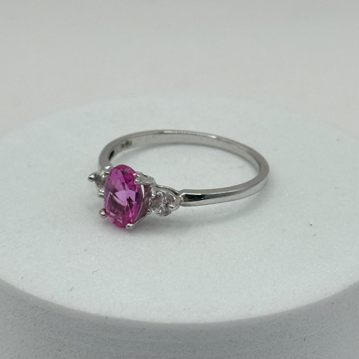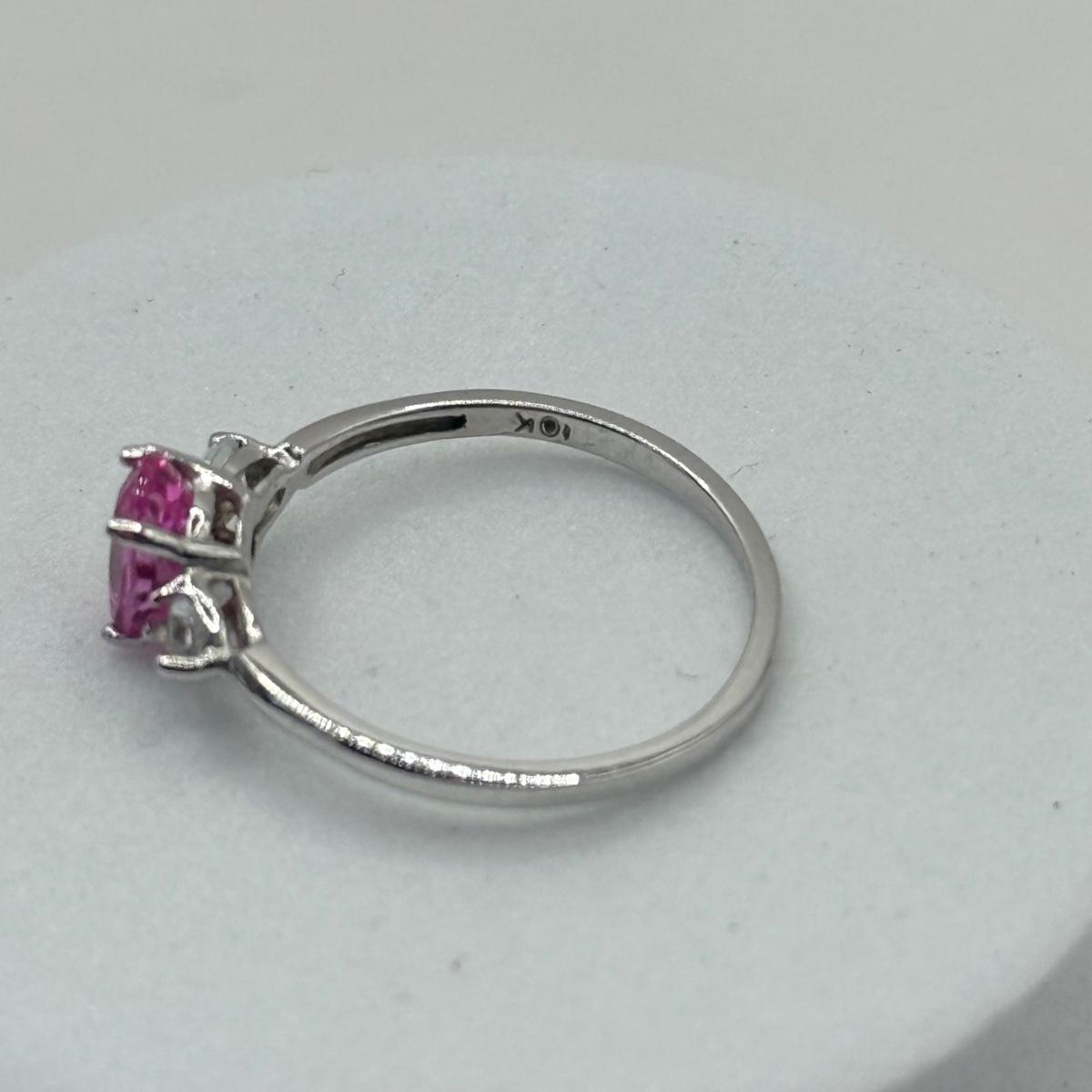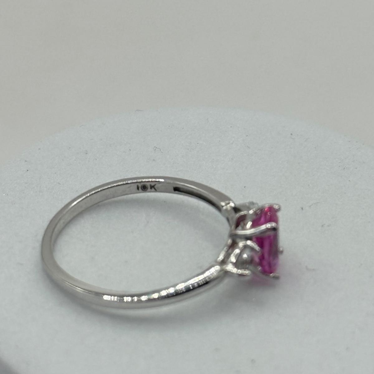 LOT 194J: Vintage 10K White Gold Pink Stone Solitaire Ring (1.37g)