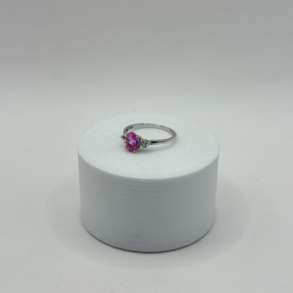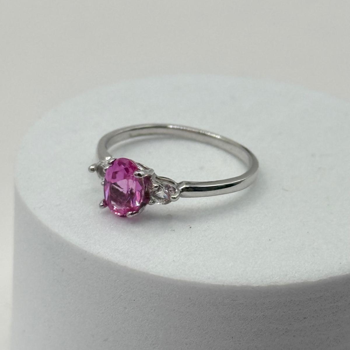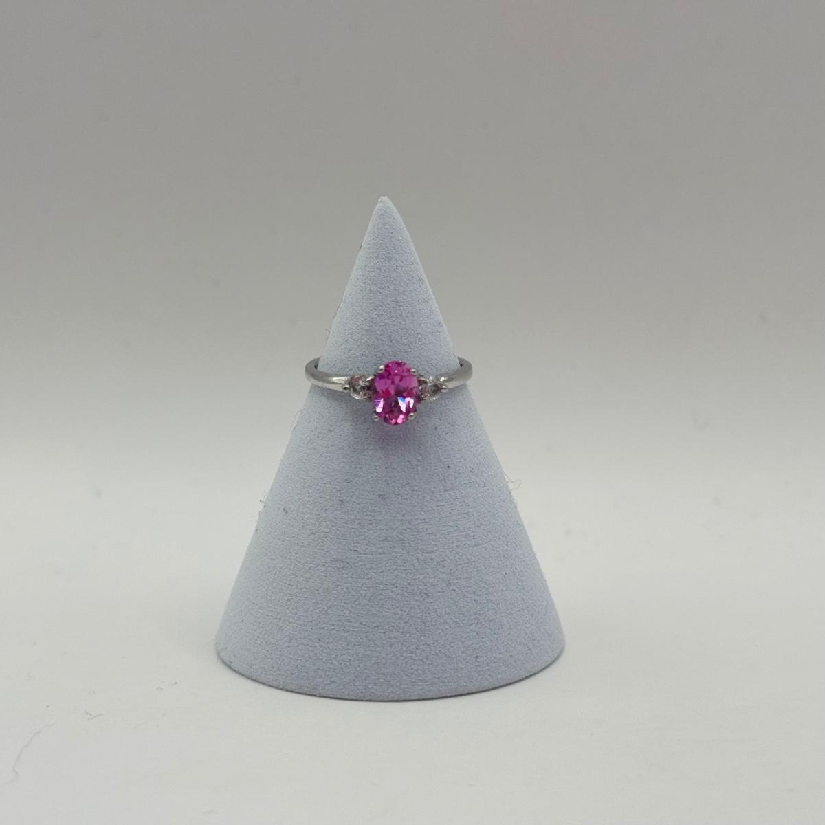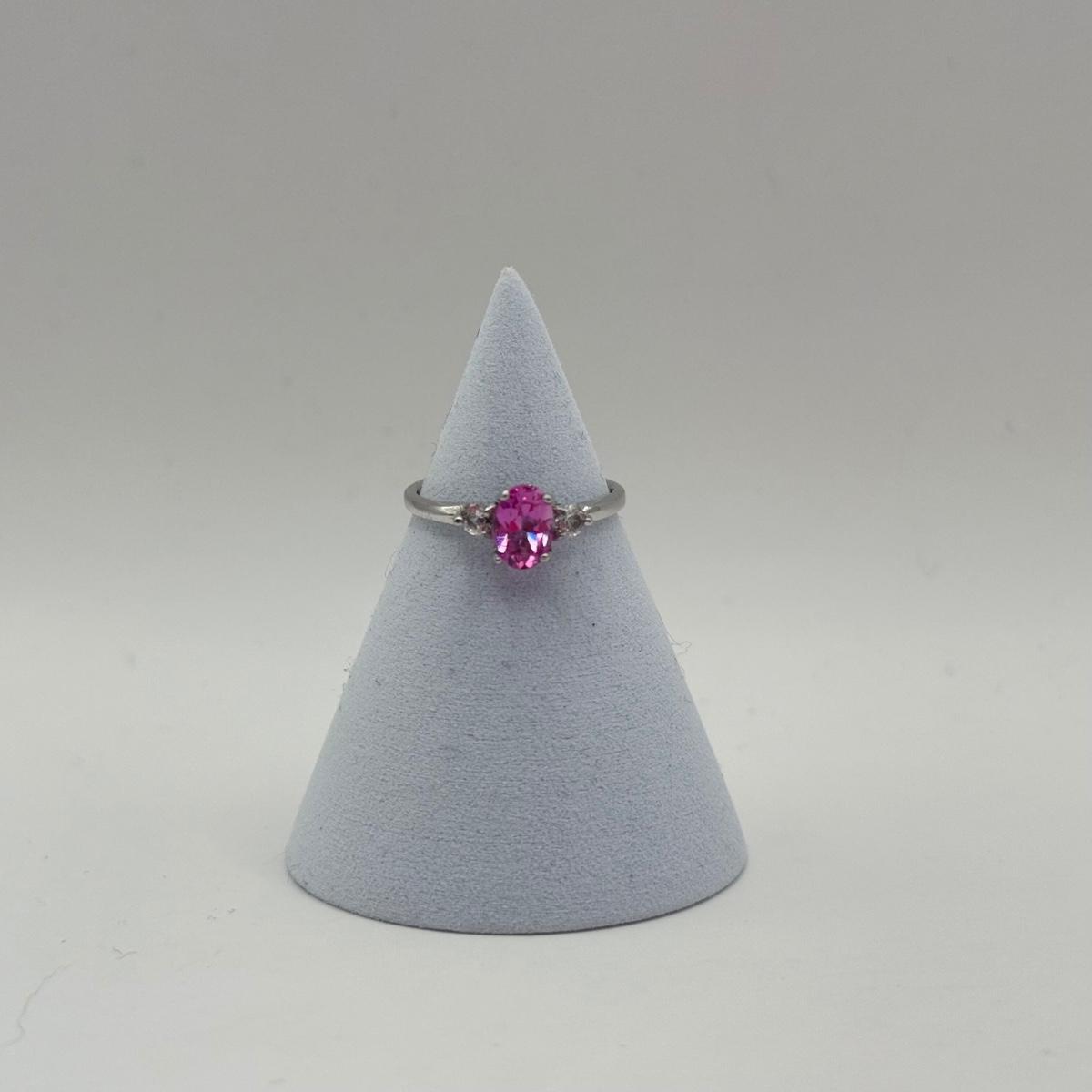 LOT 194J: Vintage 10K White Gold Pink Stone Solitaire Ring (1.37g)