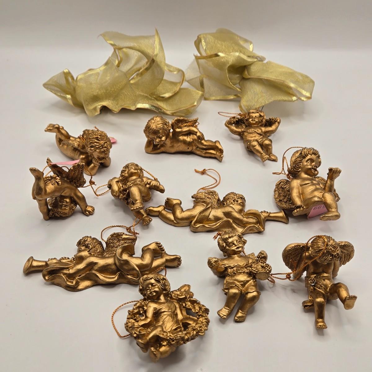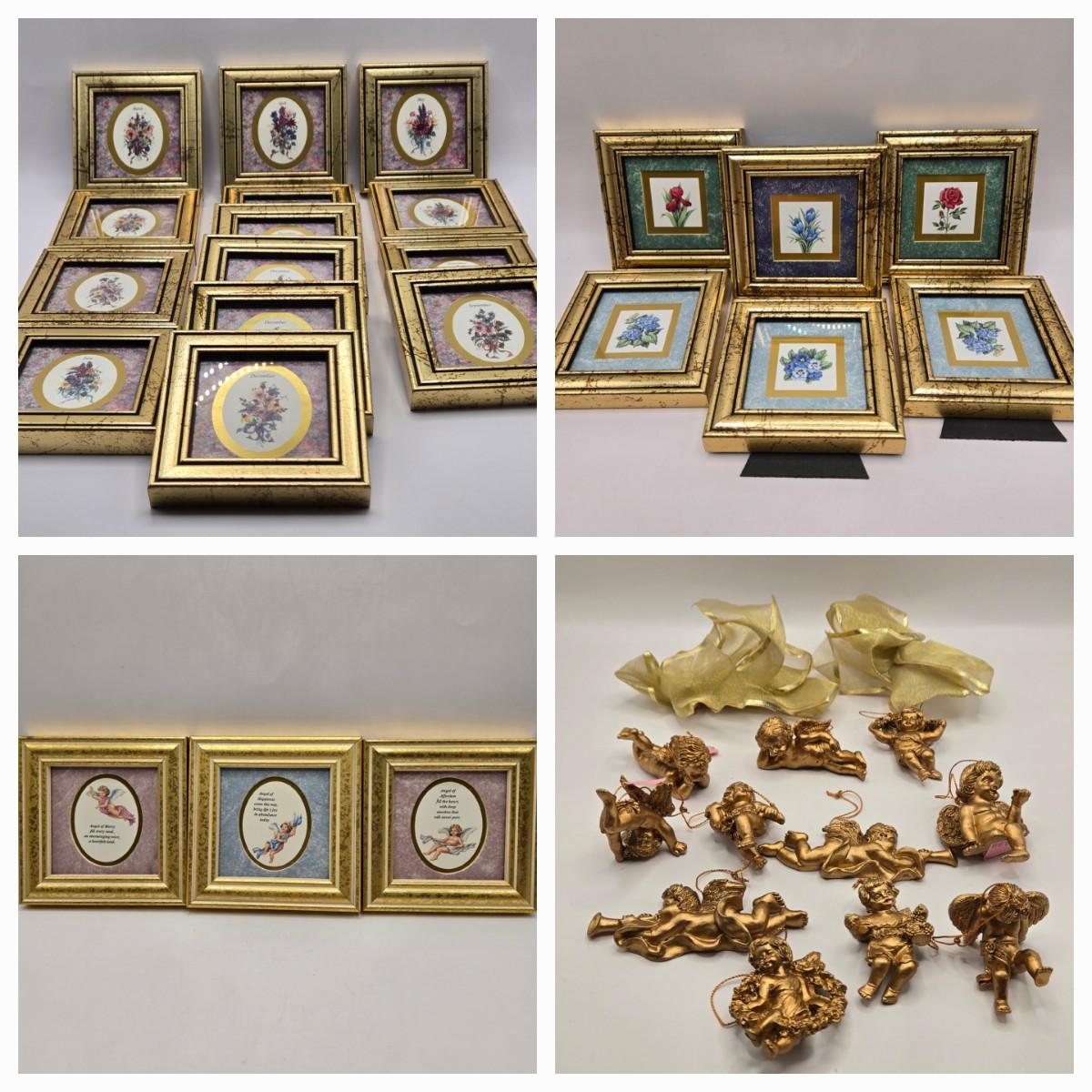 LOT 204F: Multiple Heart Felt Collection Frames with Months, Flowers, & Angels and Numerous Cherub Ornaments