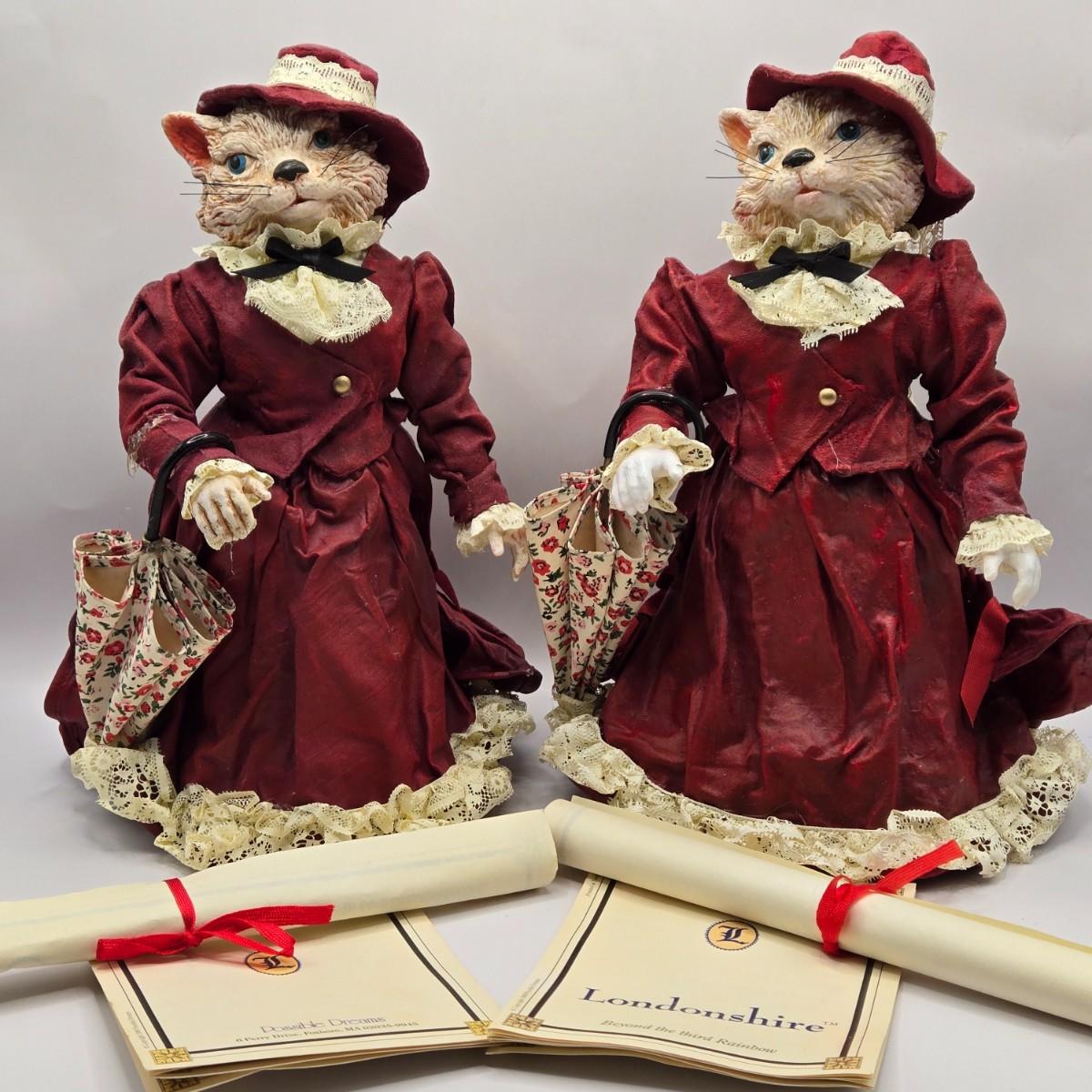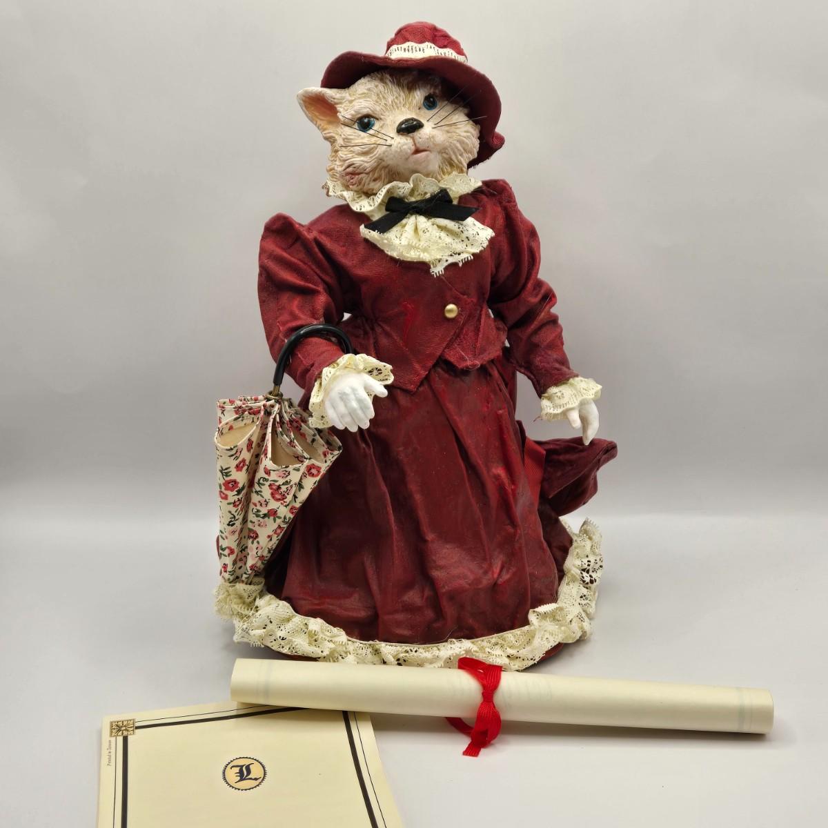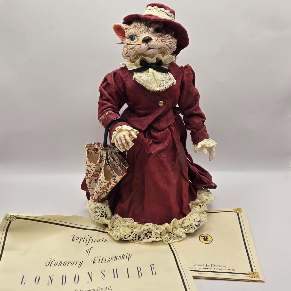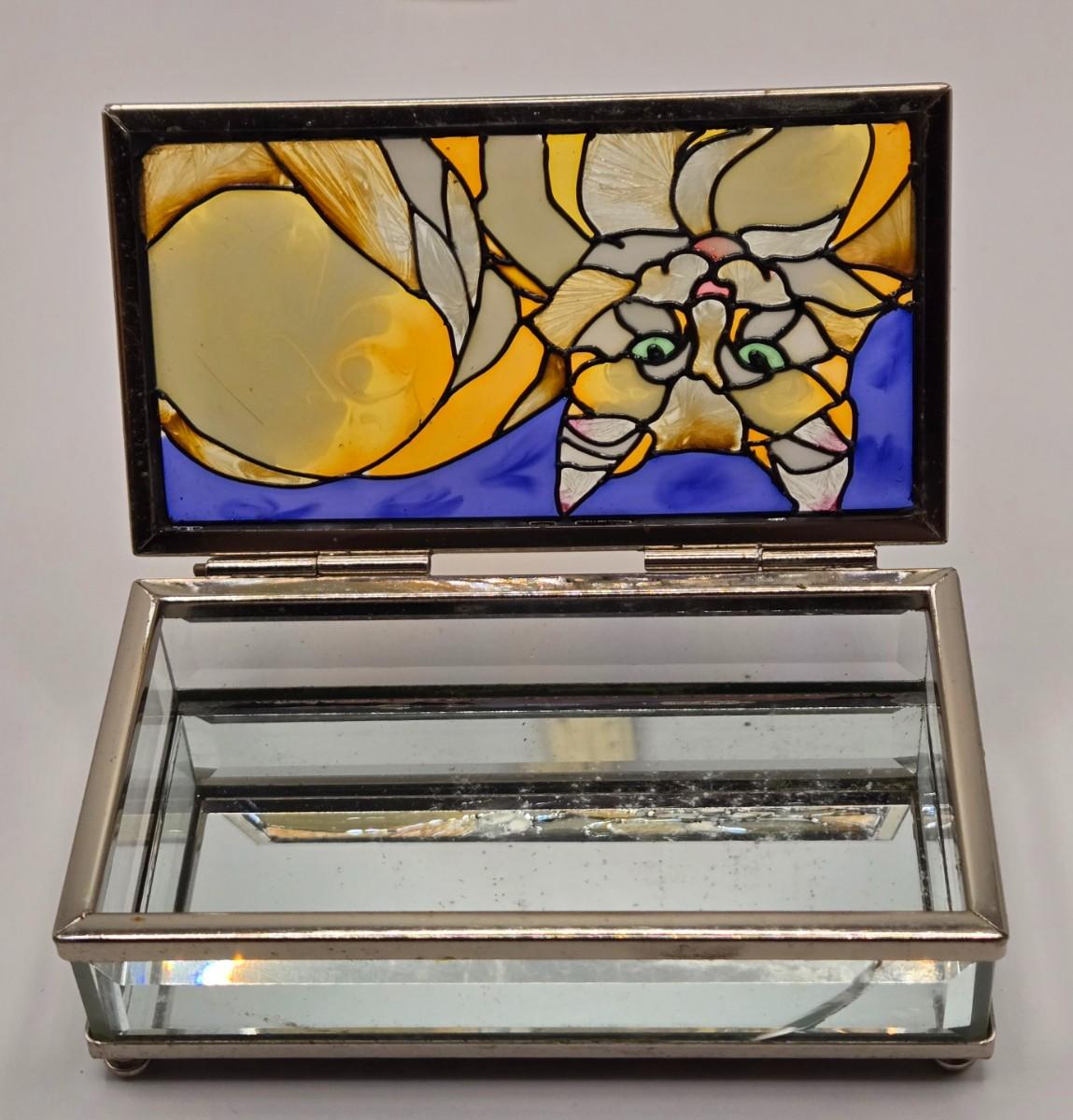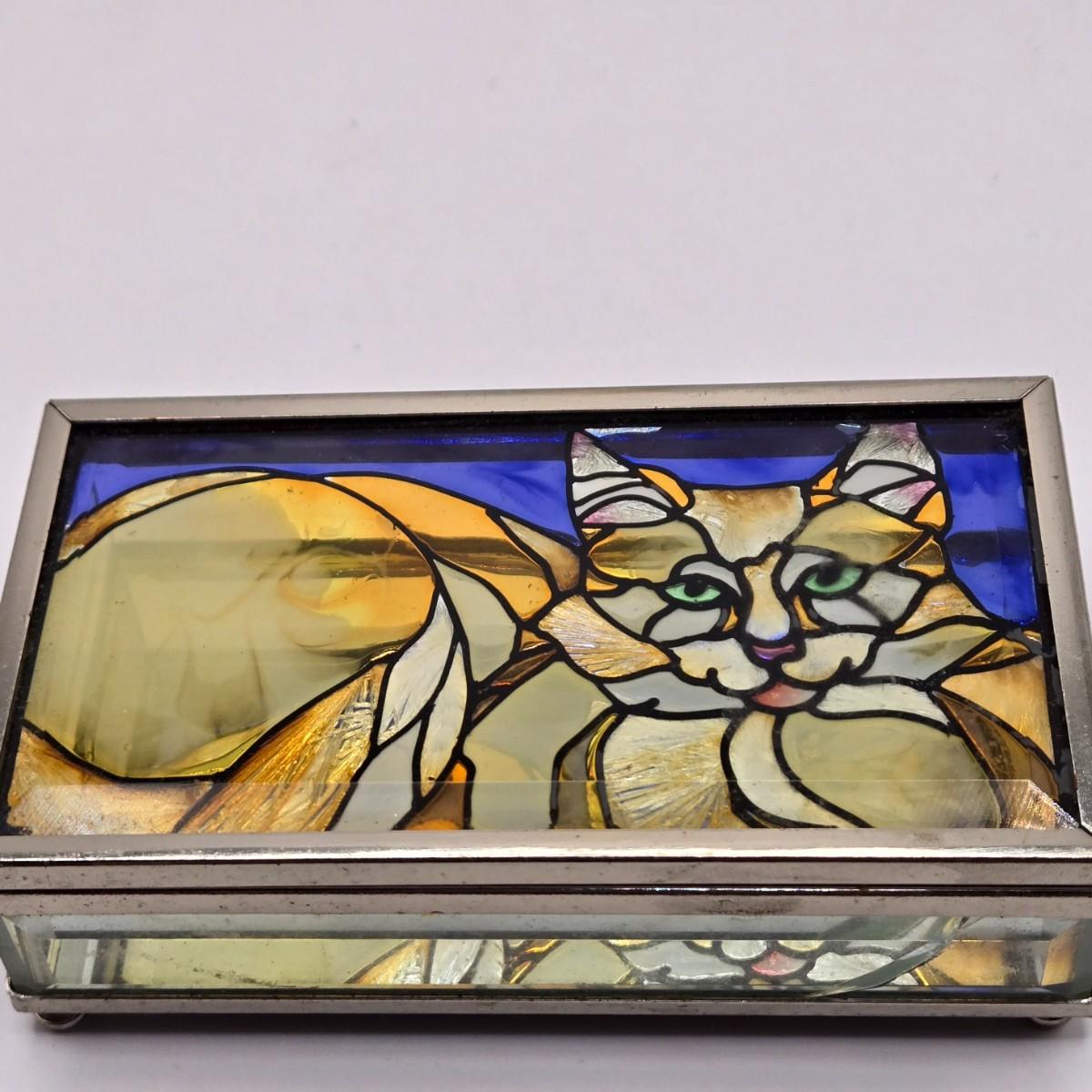 LOT 205D: Meow!! Hello Kitty Clock, 2 Vintage Possible Dreams Lady Ashley Cats, Lauren Marems Figurine, 2 Metal Tea Lite Candle Holders,Joan Baker Glass Box, & MB Design Eyeglass Holder