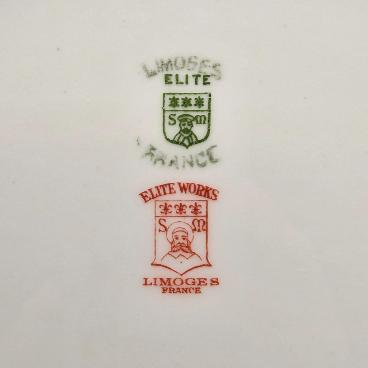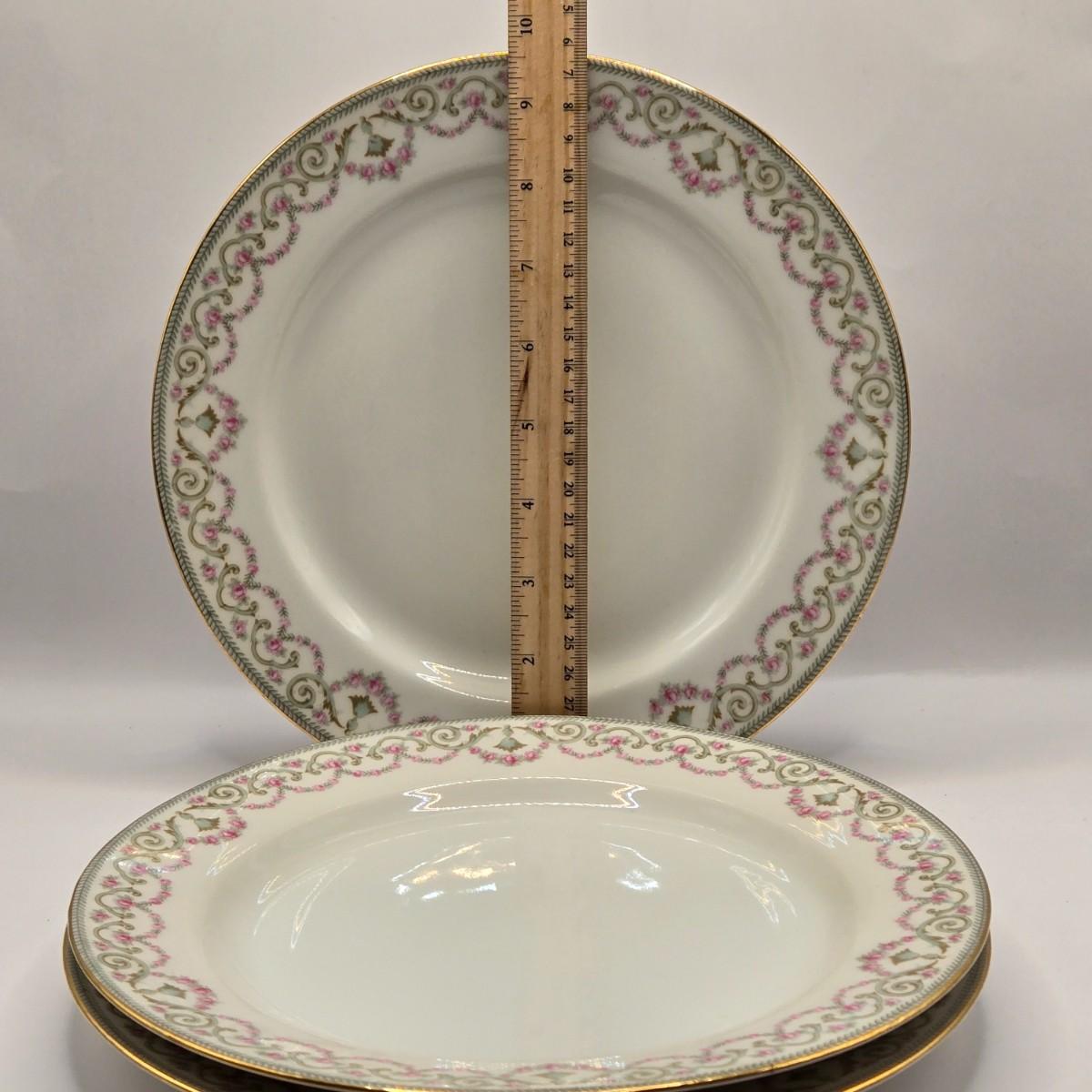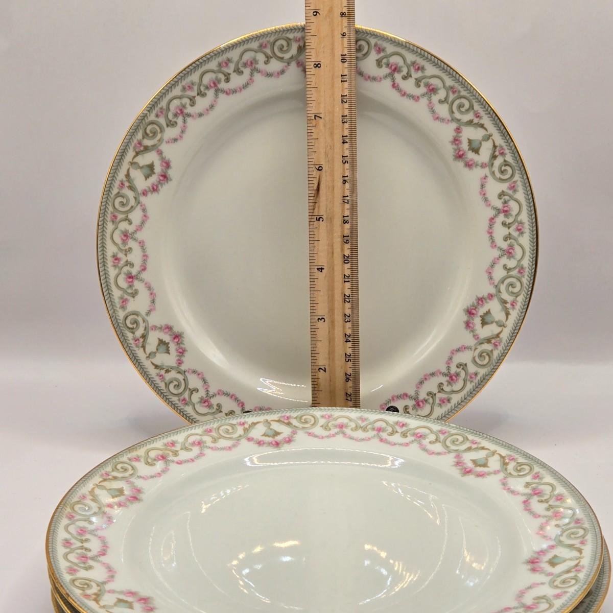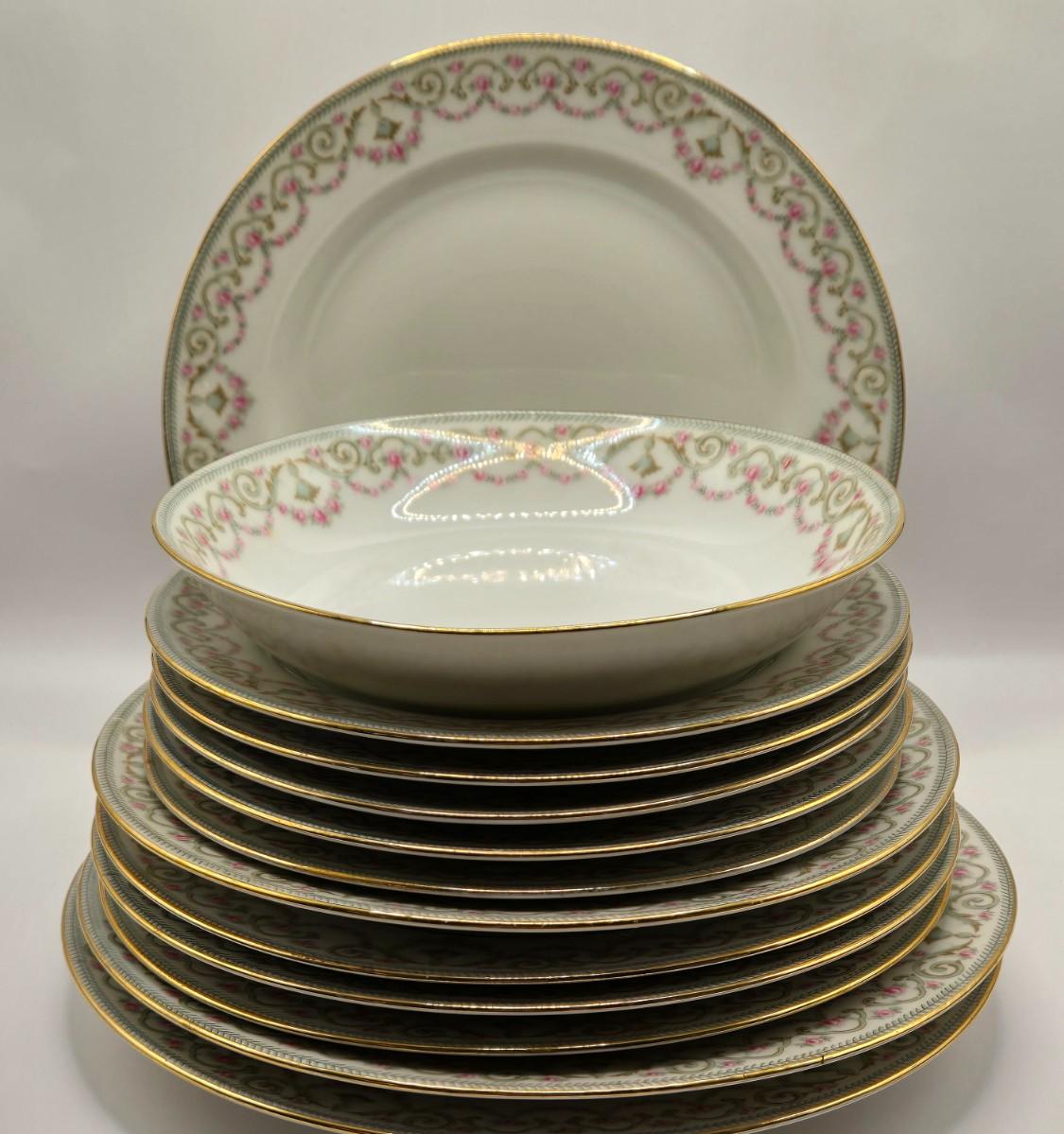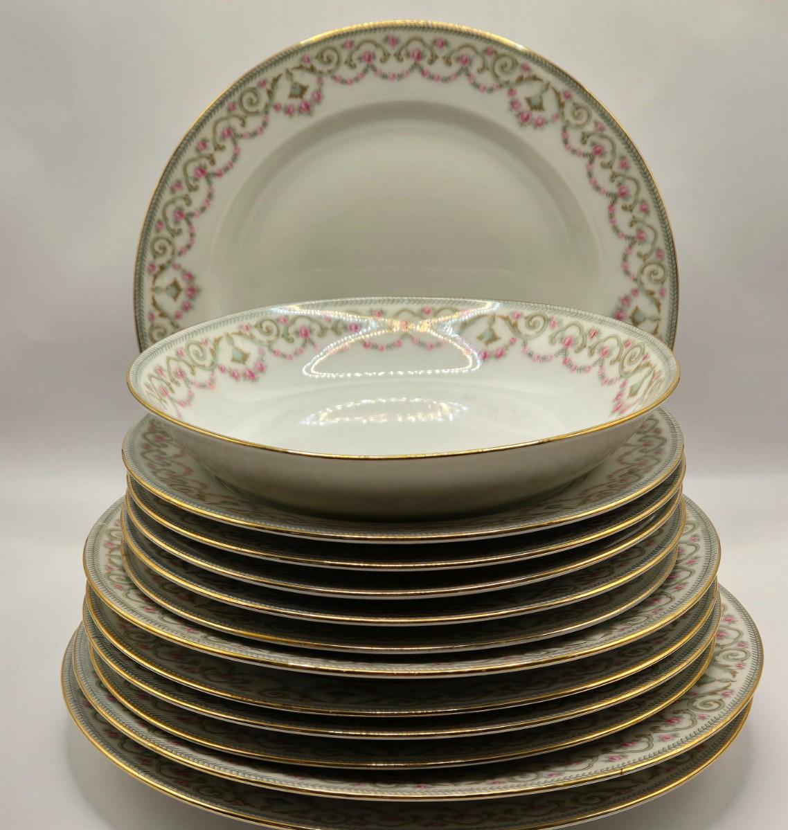 LOT 207K: Elite Works Limoges France Incomplete Set Including 3 Dinner Plates, 1 Soup Bowl, 4 Salad Plates, & 5 Dessert Plates