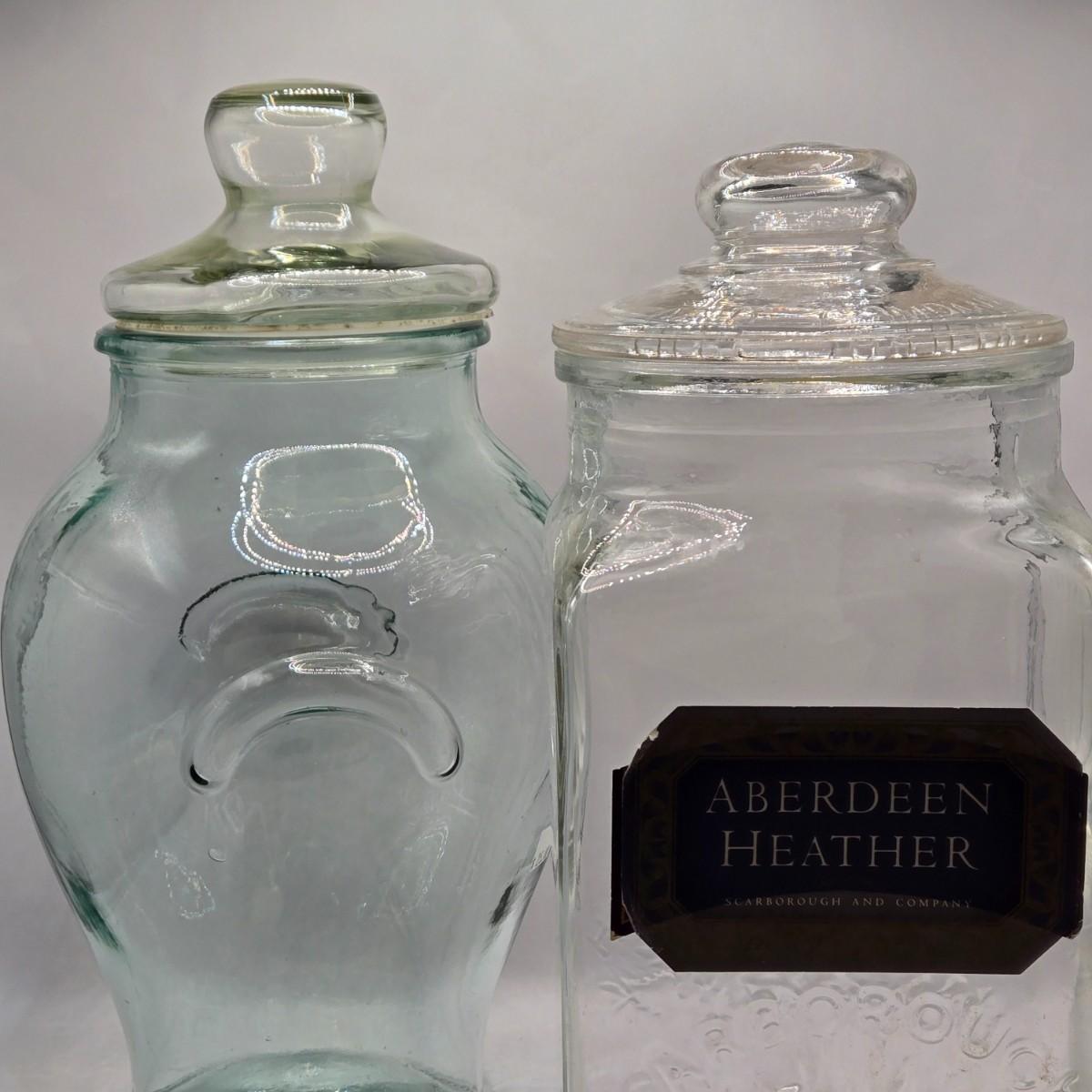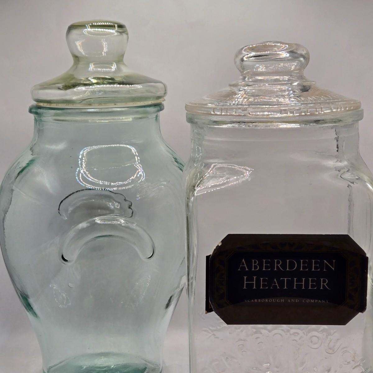 LOT 208K: Large Glass Jar w/ Lid Made in Italy and Scarborough and Company Glass Jar w/ Lid