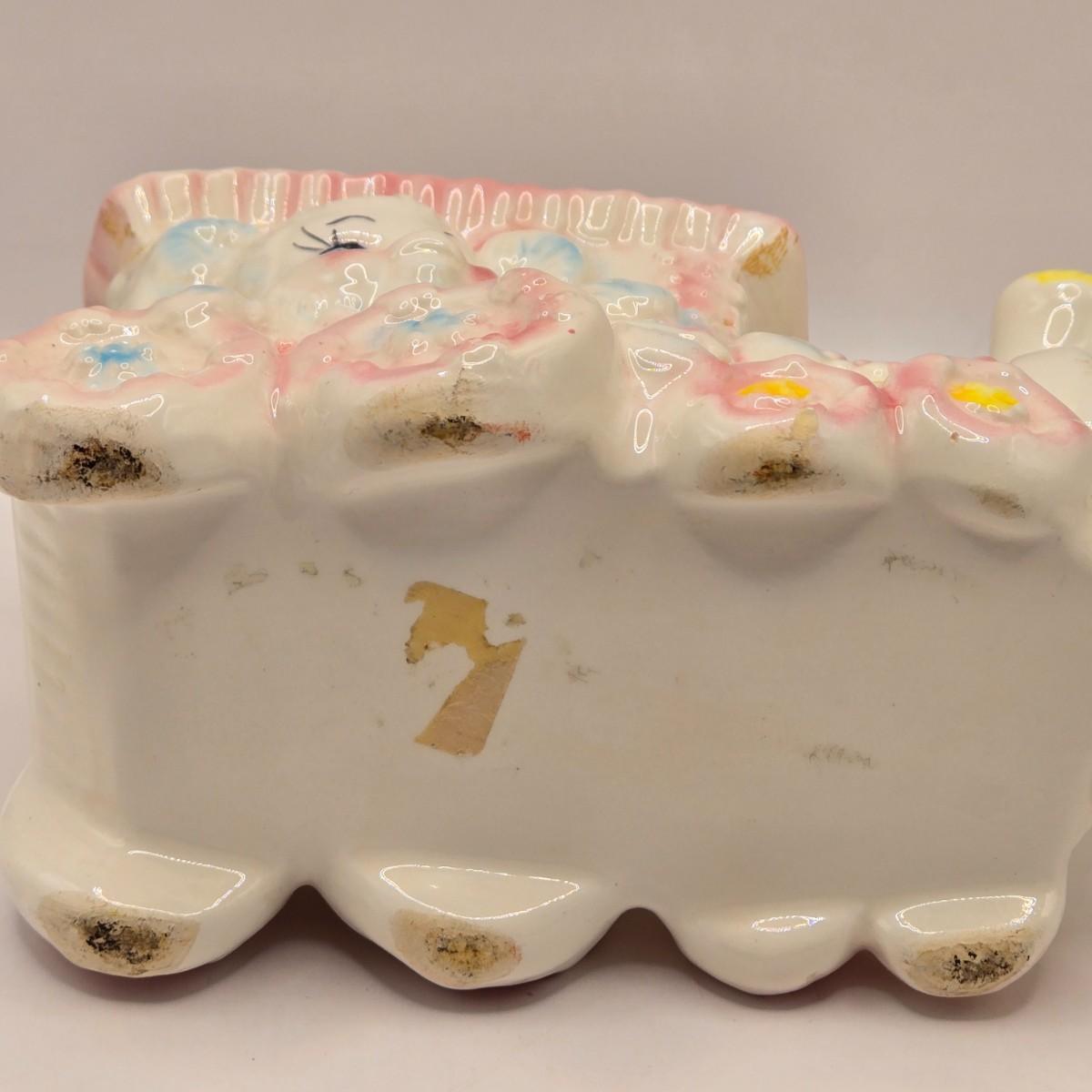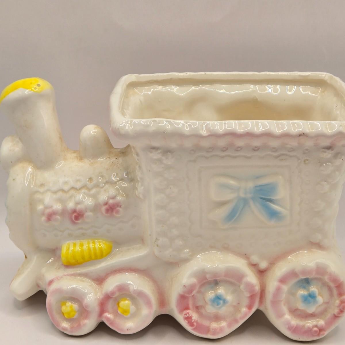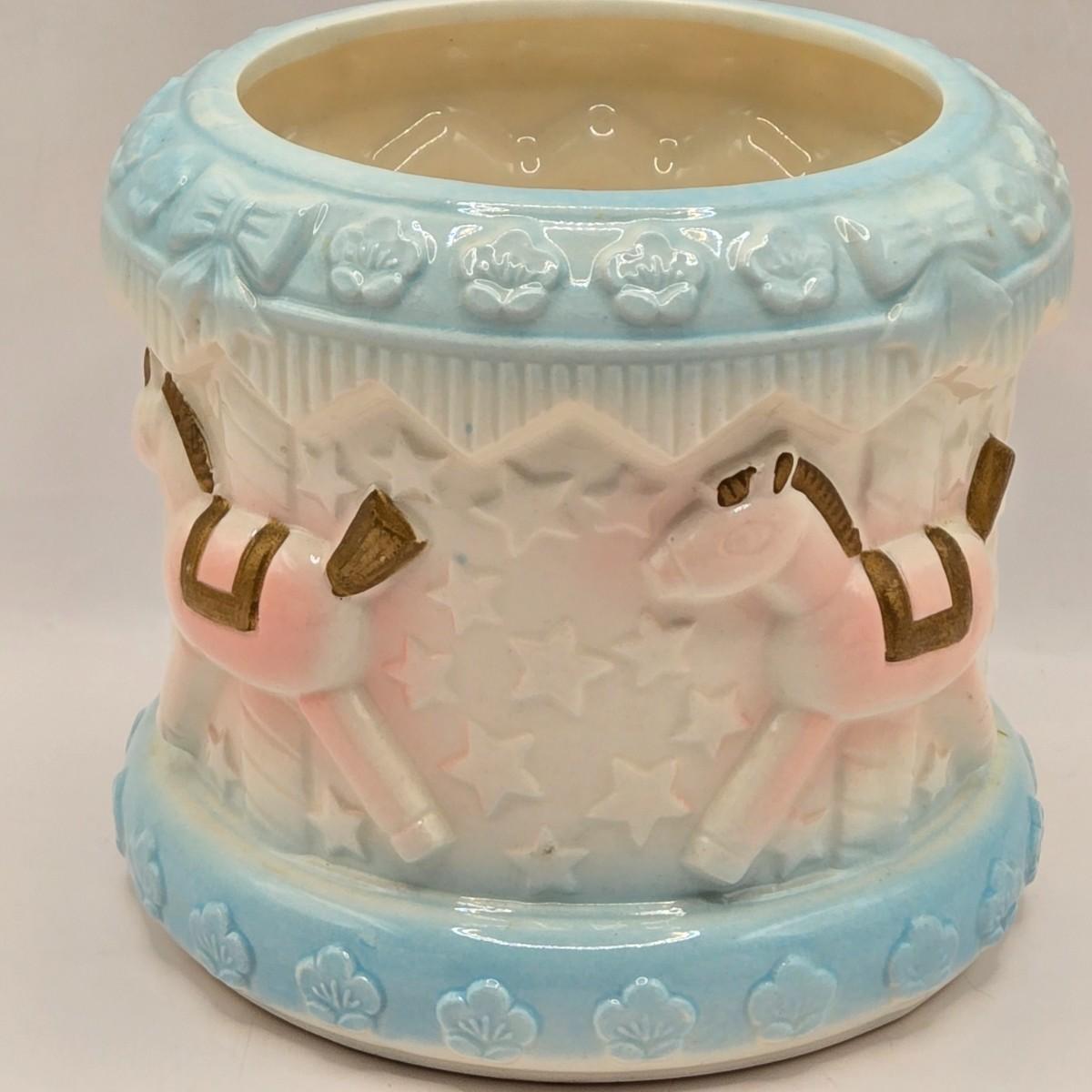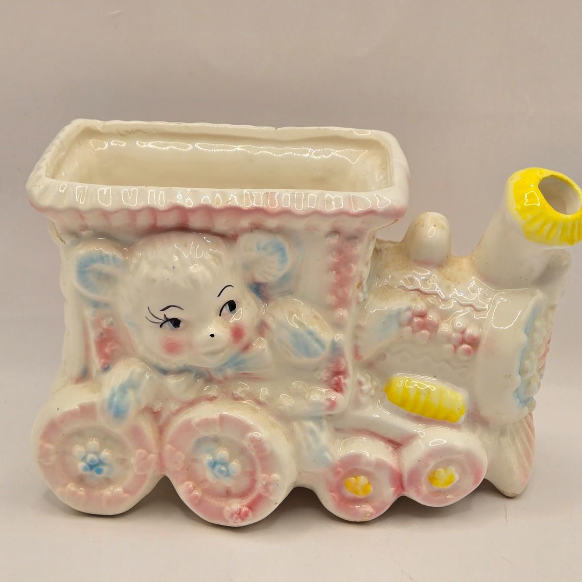 LOT 219D: Vintage 1950s Ceramic Train Nursery Planter, Carousel Nursery Planter, and Bear Nursery Planter