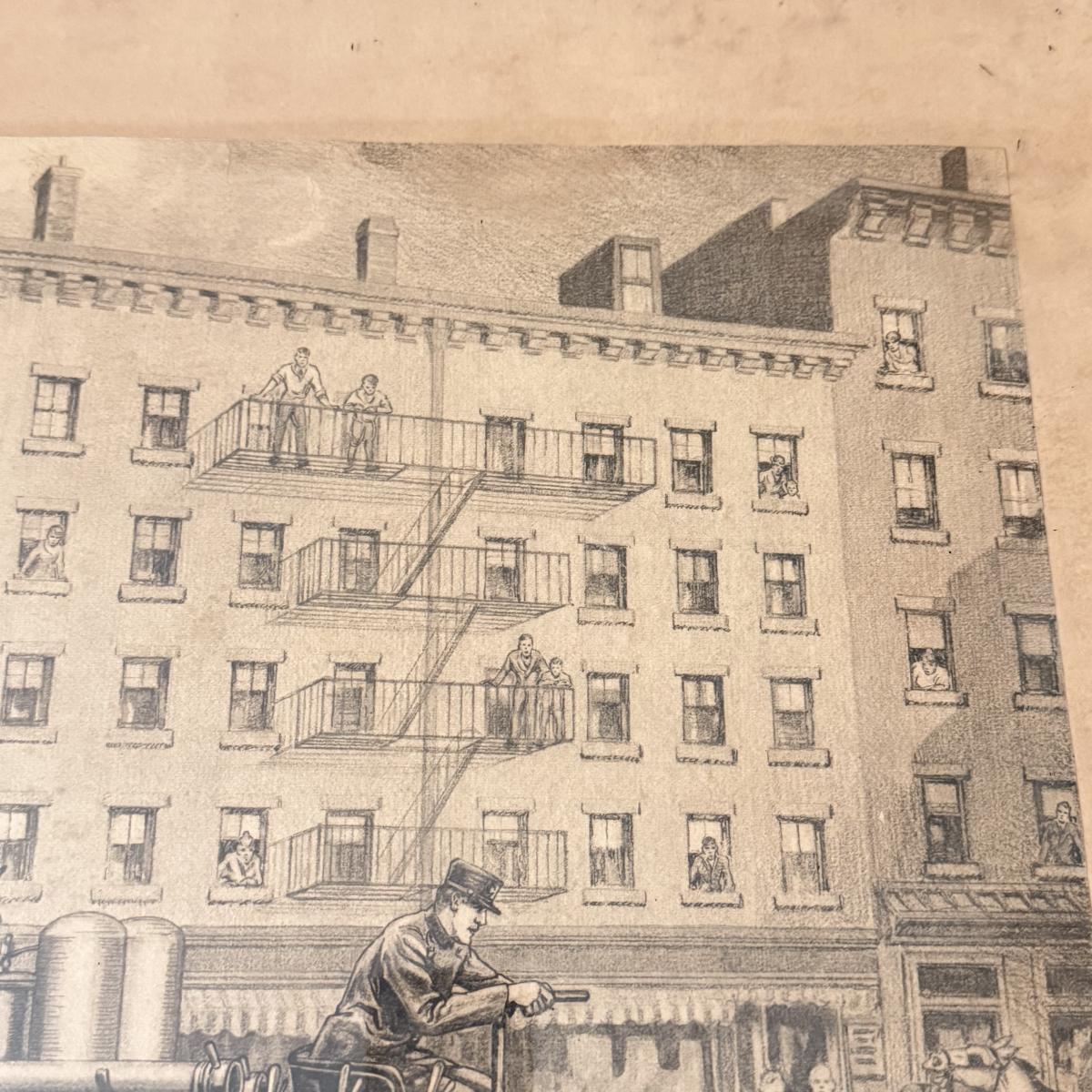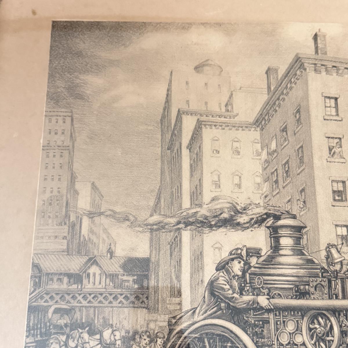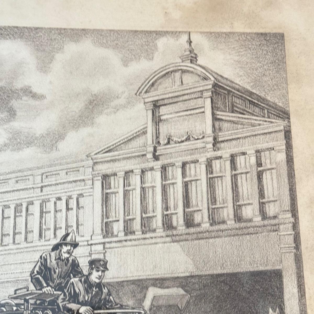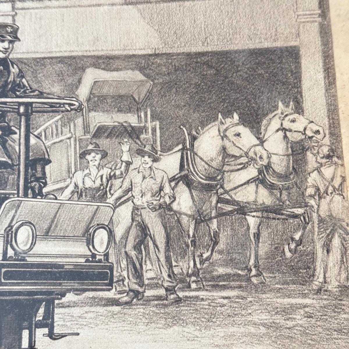 LOT 221L: Antique Modern Firefighting Apparatus Etching Prints circa 1910s-1920s: "Motorized Steeamers - Model Christie Tractor 1911 Period" & "First Motorized Hook & Ladder Truck 1915 Period"
