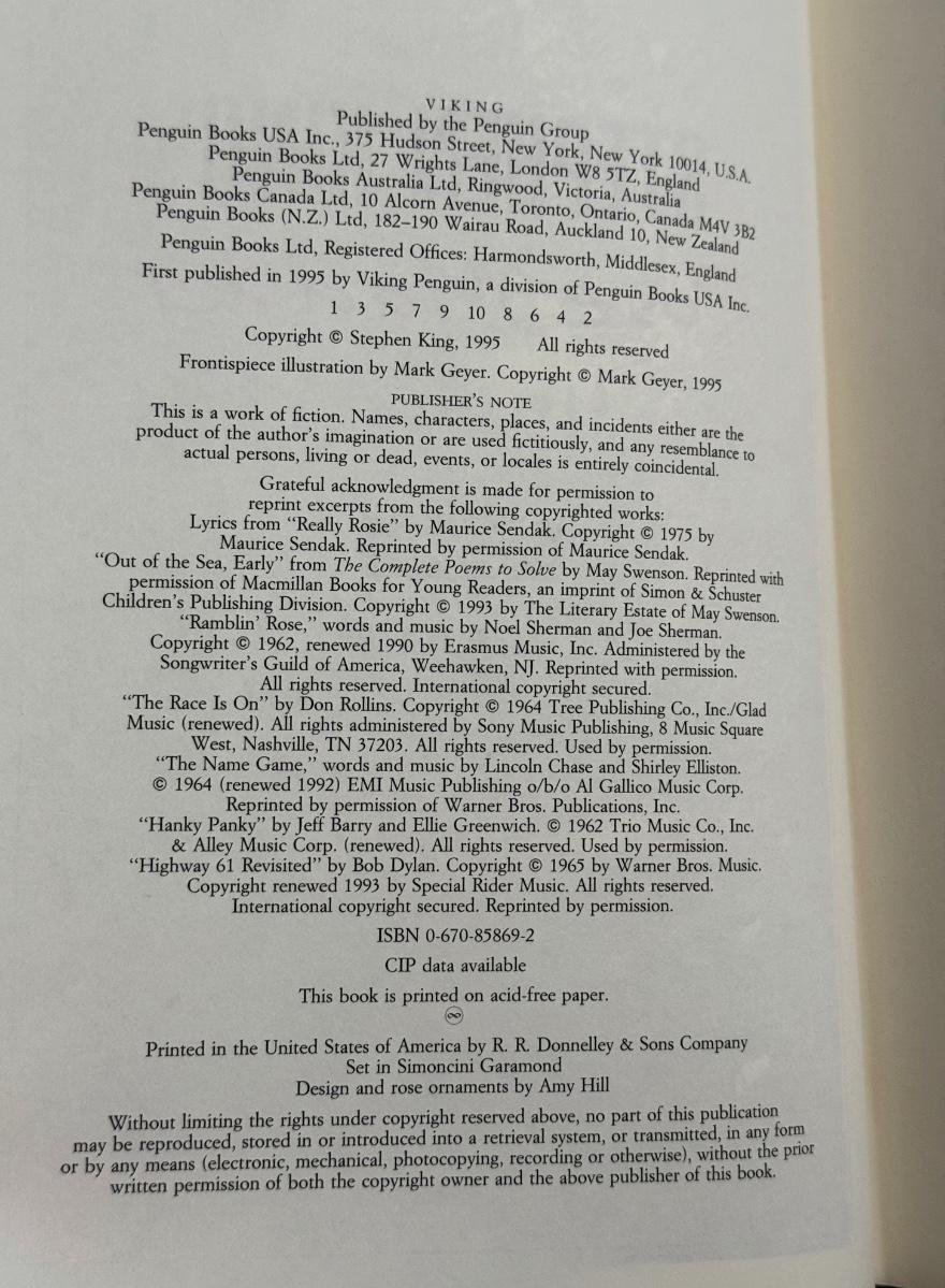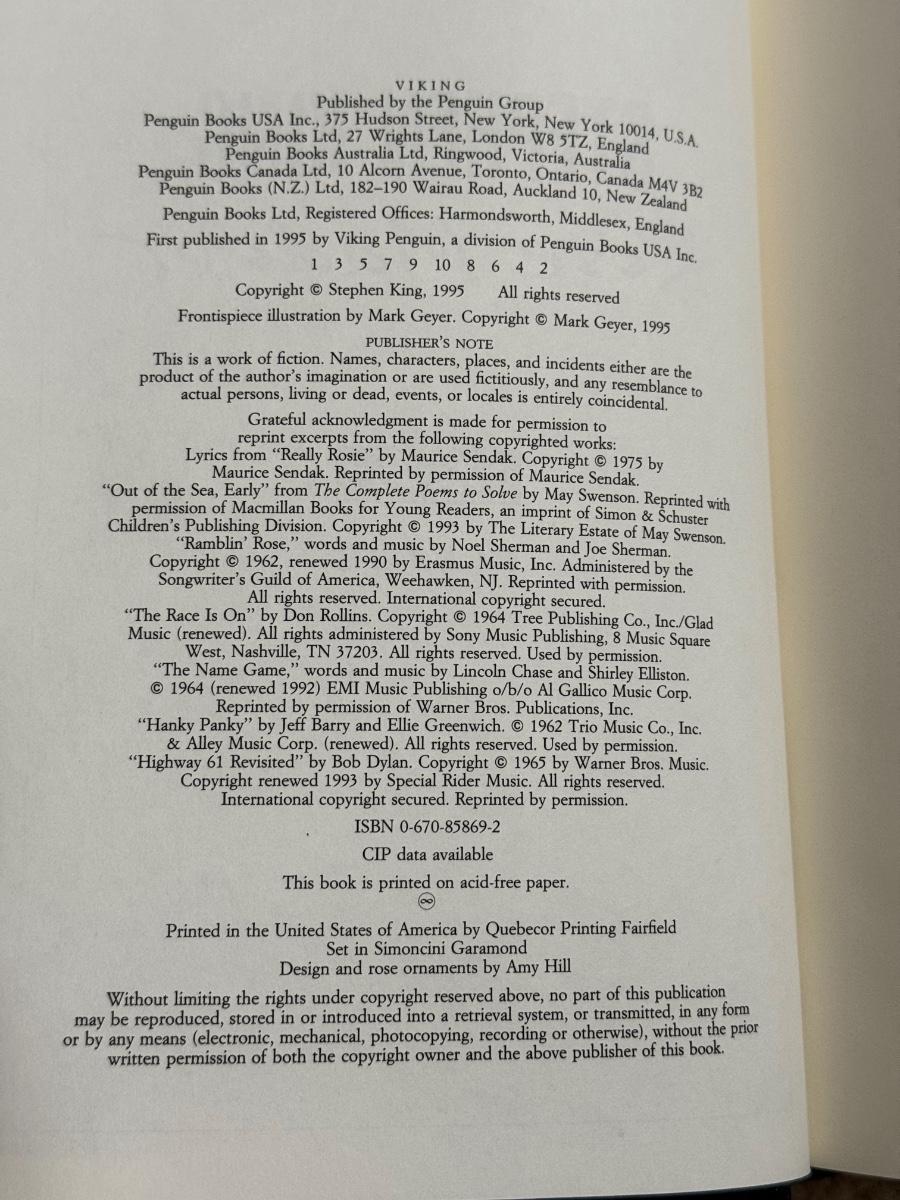 LOT 226K: First Edition 1995 Rose Madder by Stephen King: 3 copies, 2 w/ Sleeves