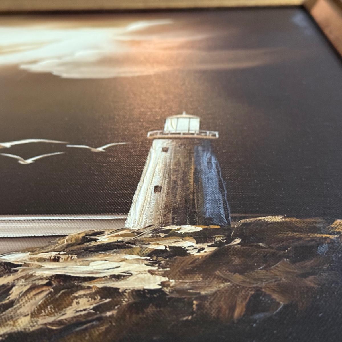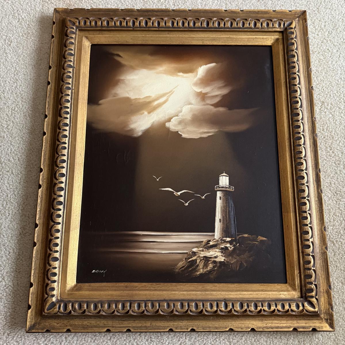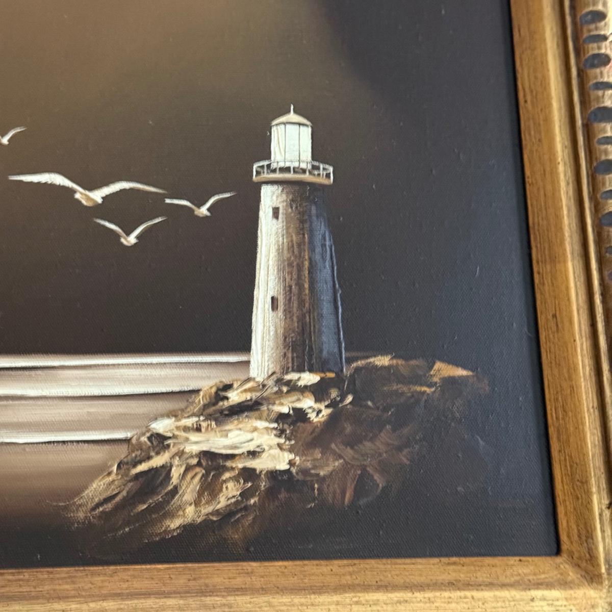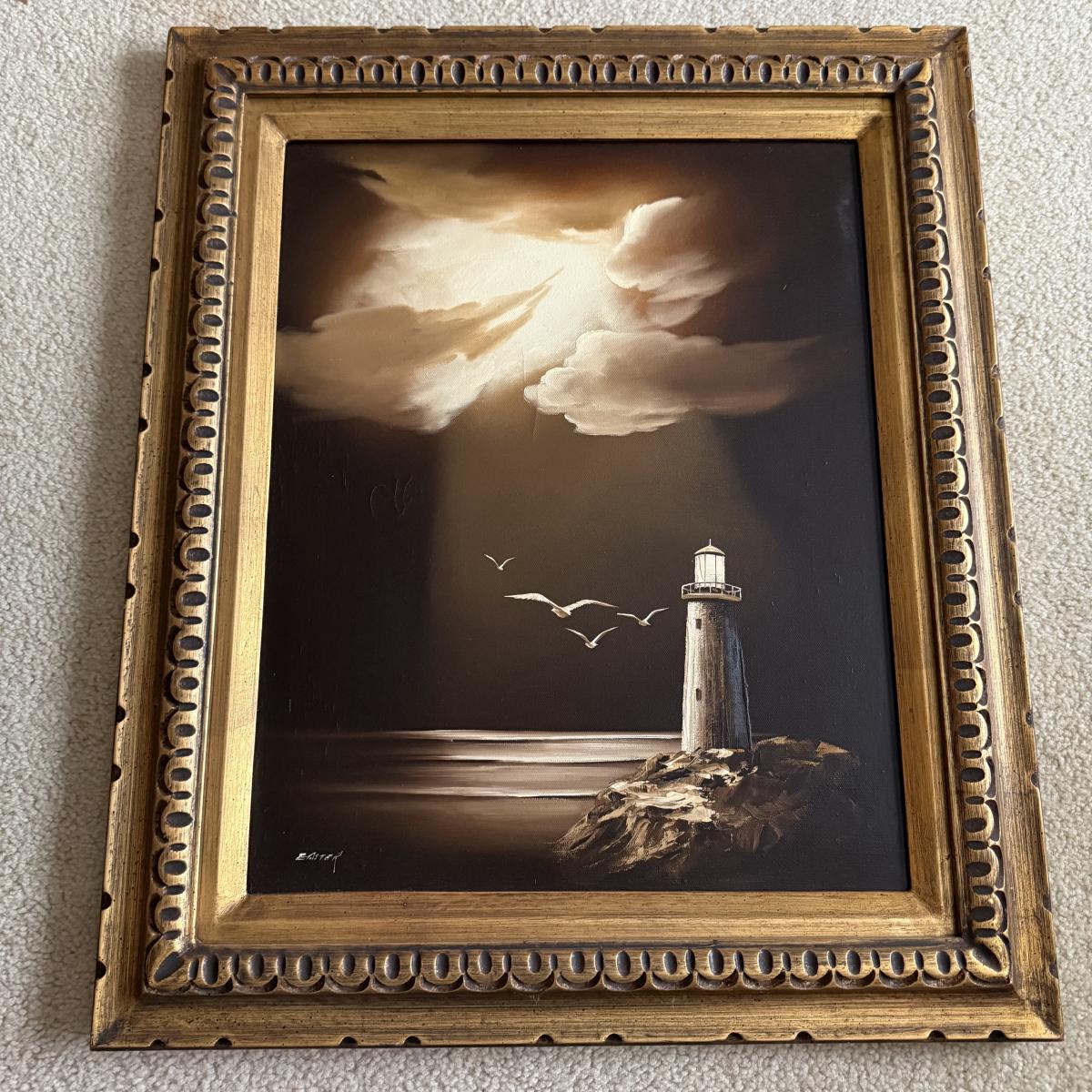 LOT 229L: Original Framed Lighthouse Oil Painting signed "Easter"