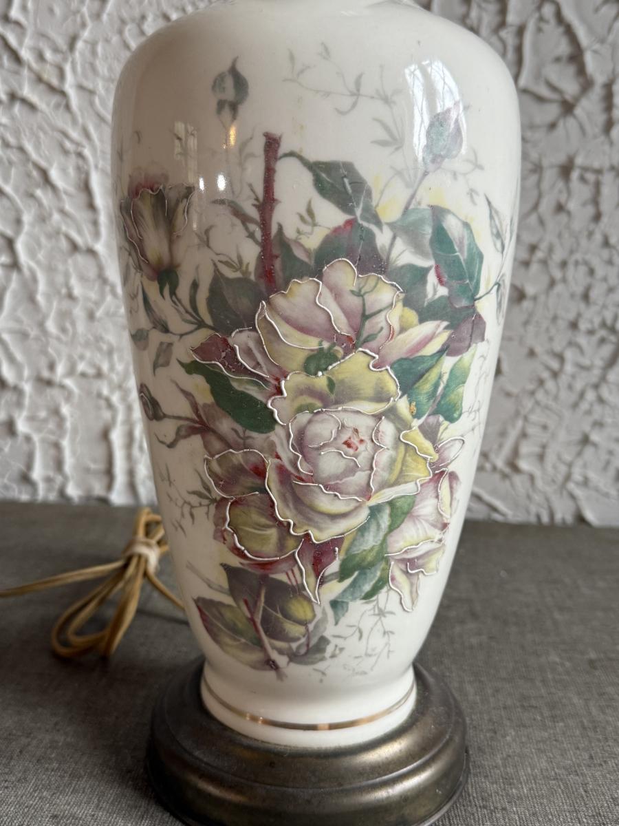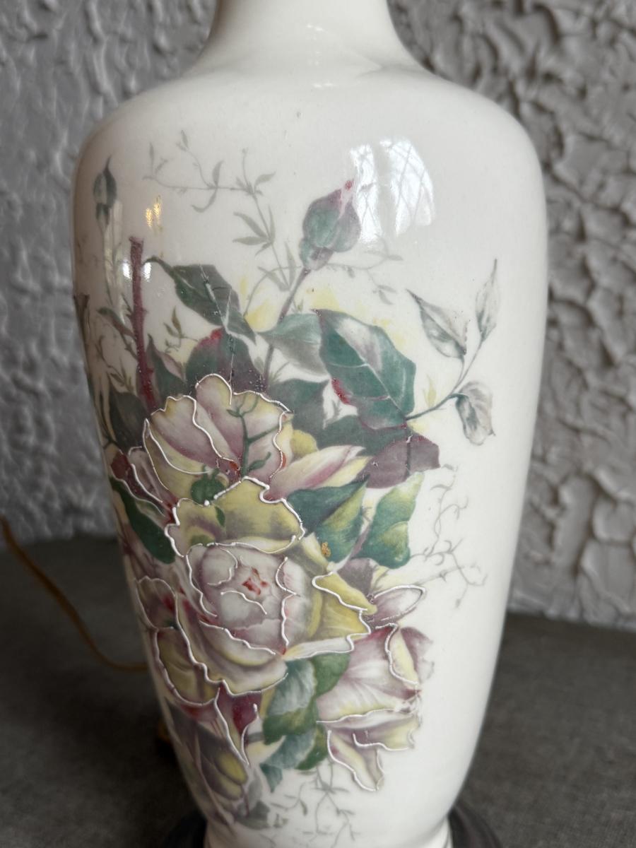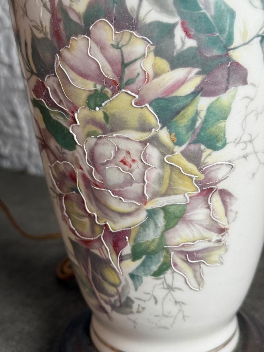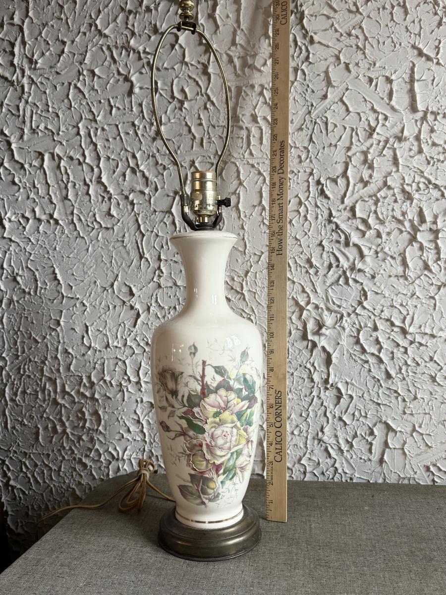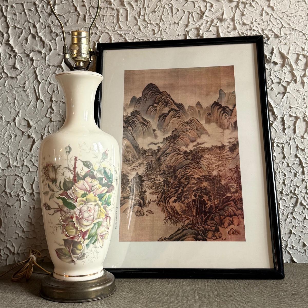 LOT 232F: Vintage Leviton Porcelain Embossed Roses Table Lamp & Framed Ming Dynasty: Dong Qichang's imitation of Huang Zijiu's Summer Mountain Artwork