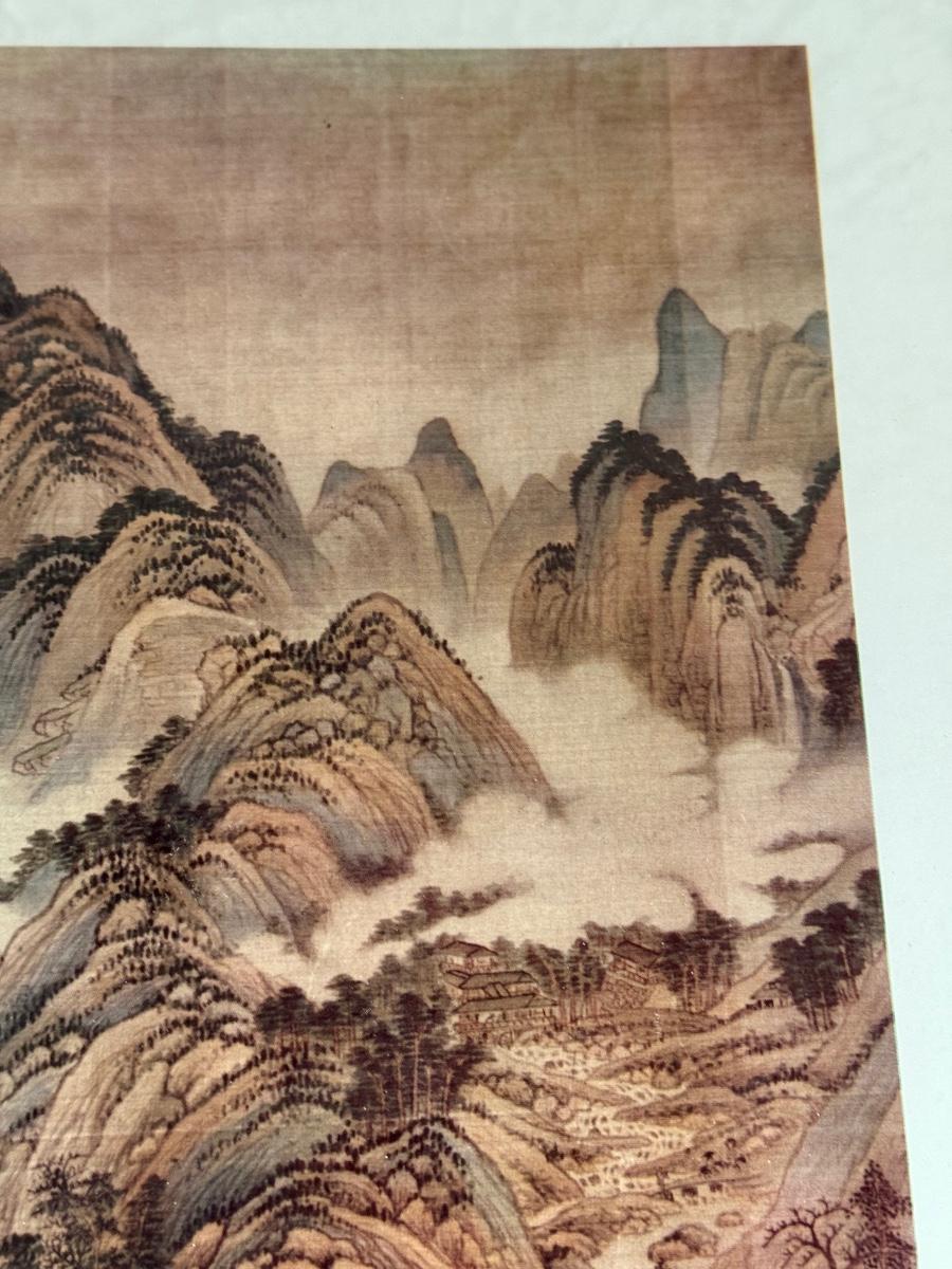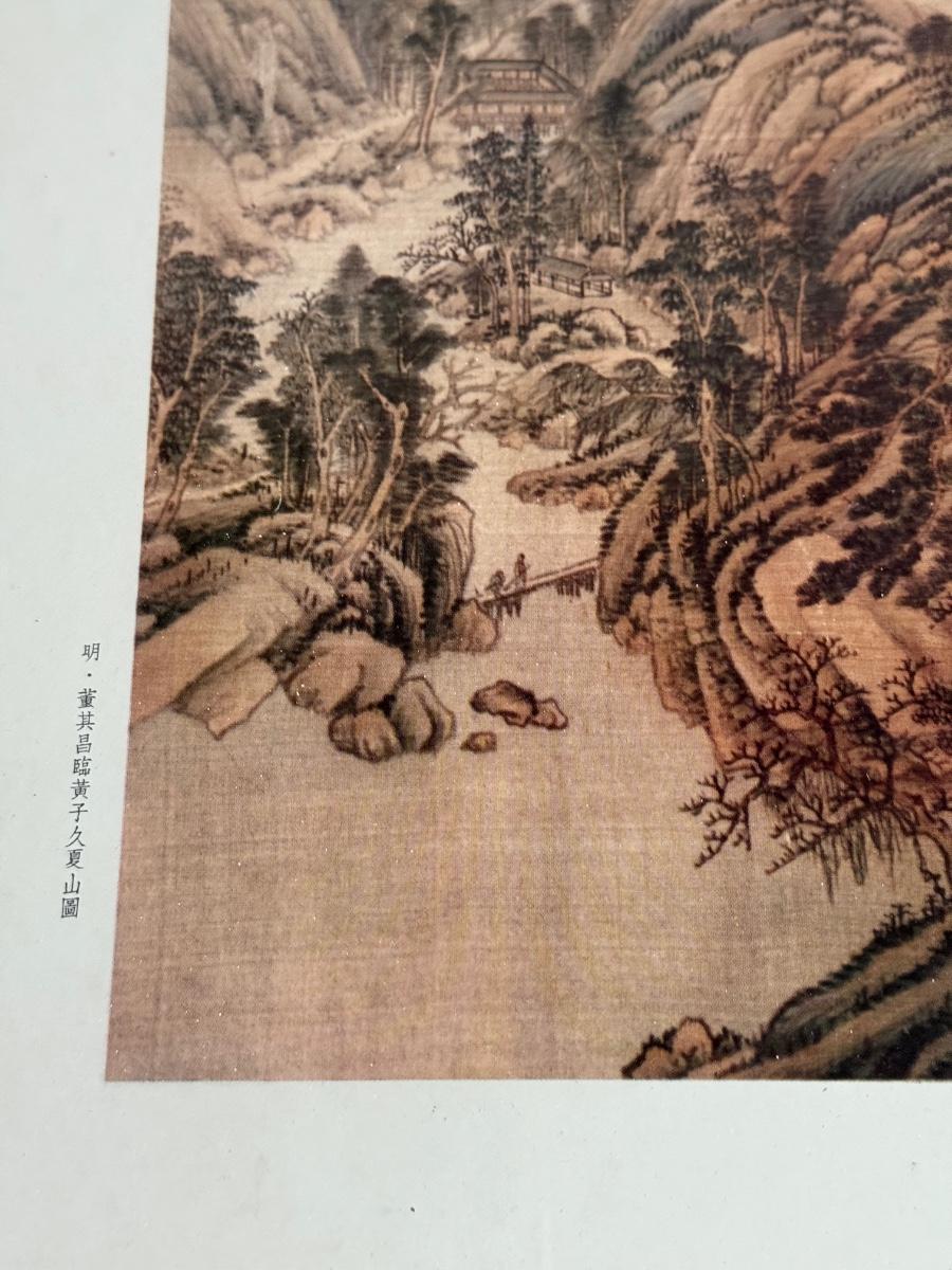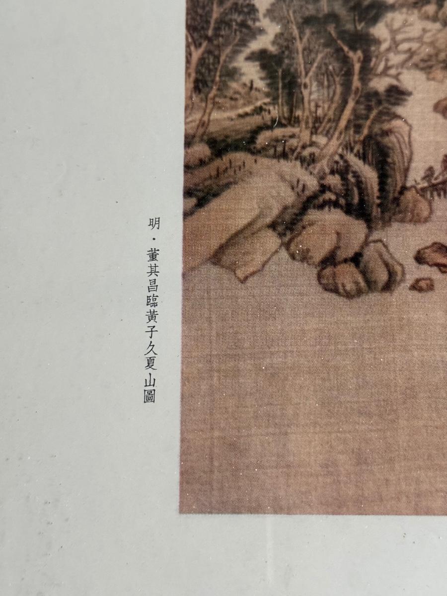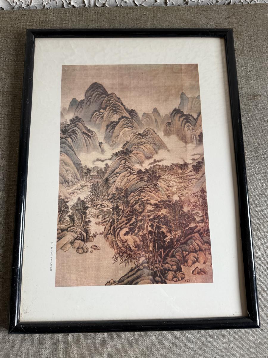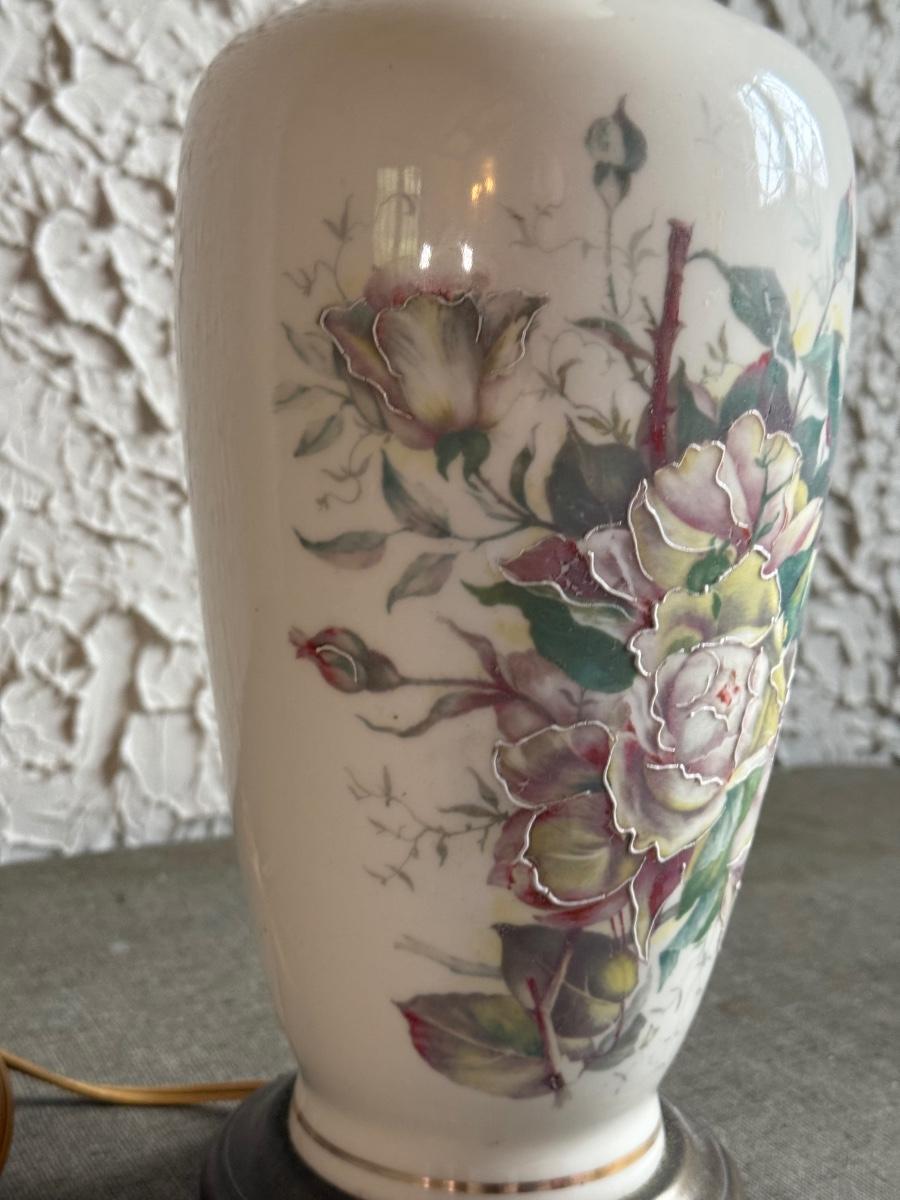 LOT 232F: Vintage Leviton Porcelain Embossed Roses Table Lamp & Framed Ming Dynasty: Dong Qichang's imitation of Huang Zijiu's Summer Mountain Artwork