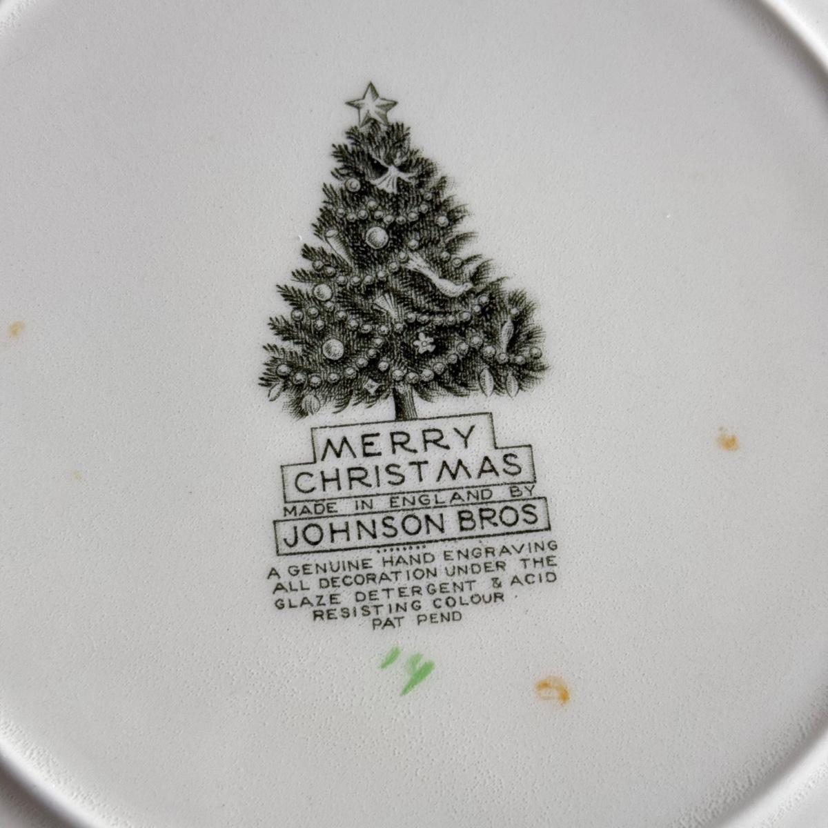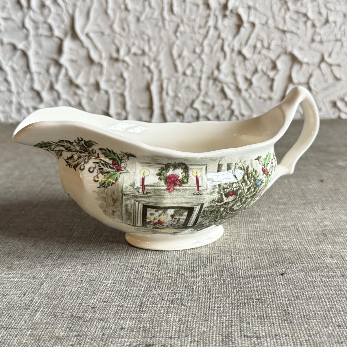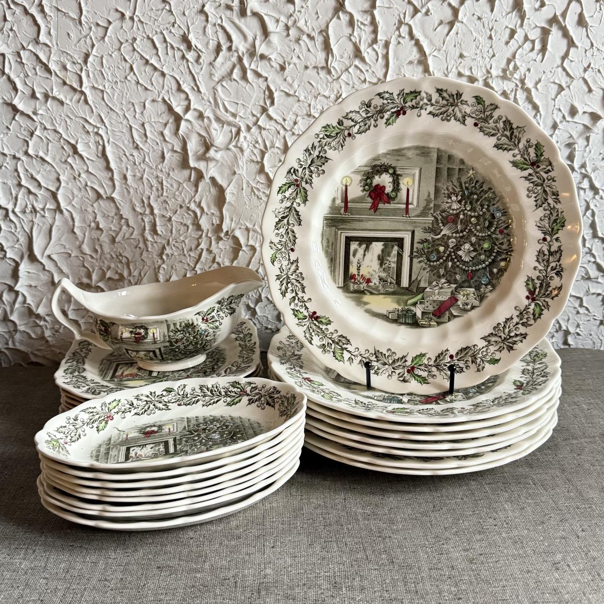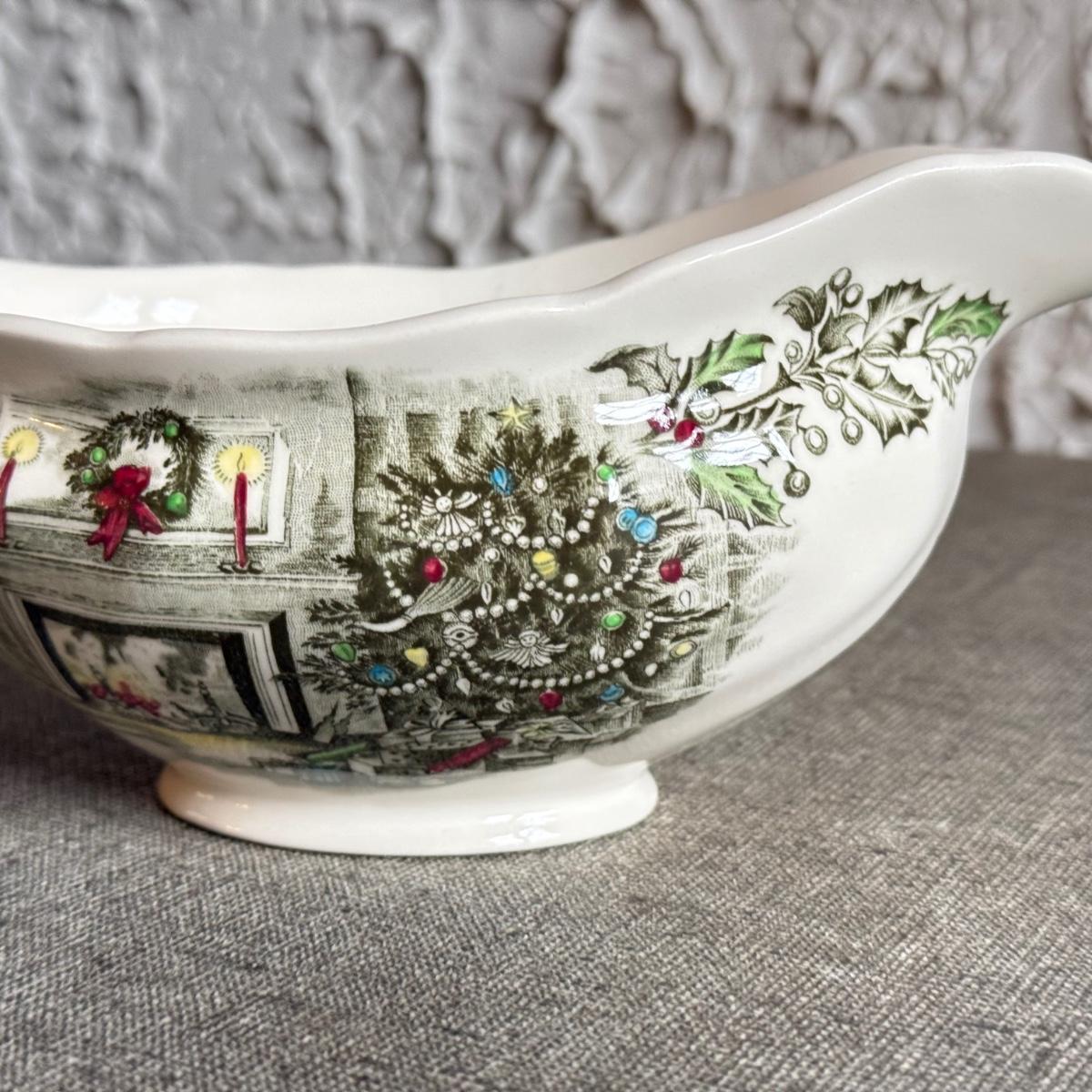 LOT 238F: Vintage Johnson Bros Transferware "Merry Christmas" Service for 8 w/ Gravy Boat