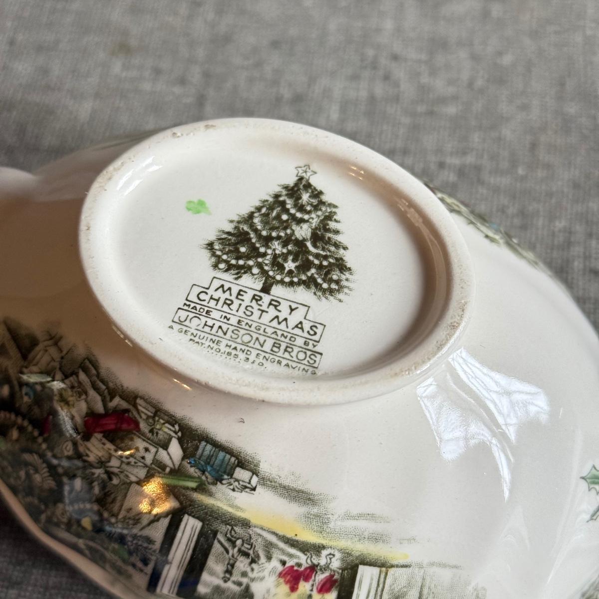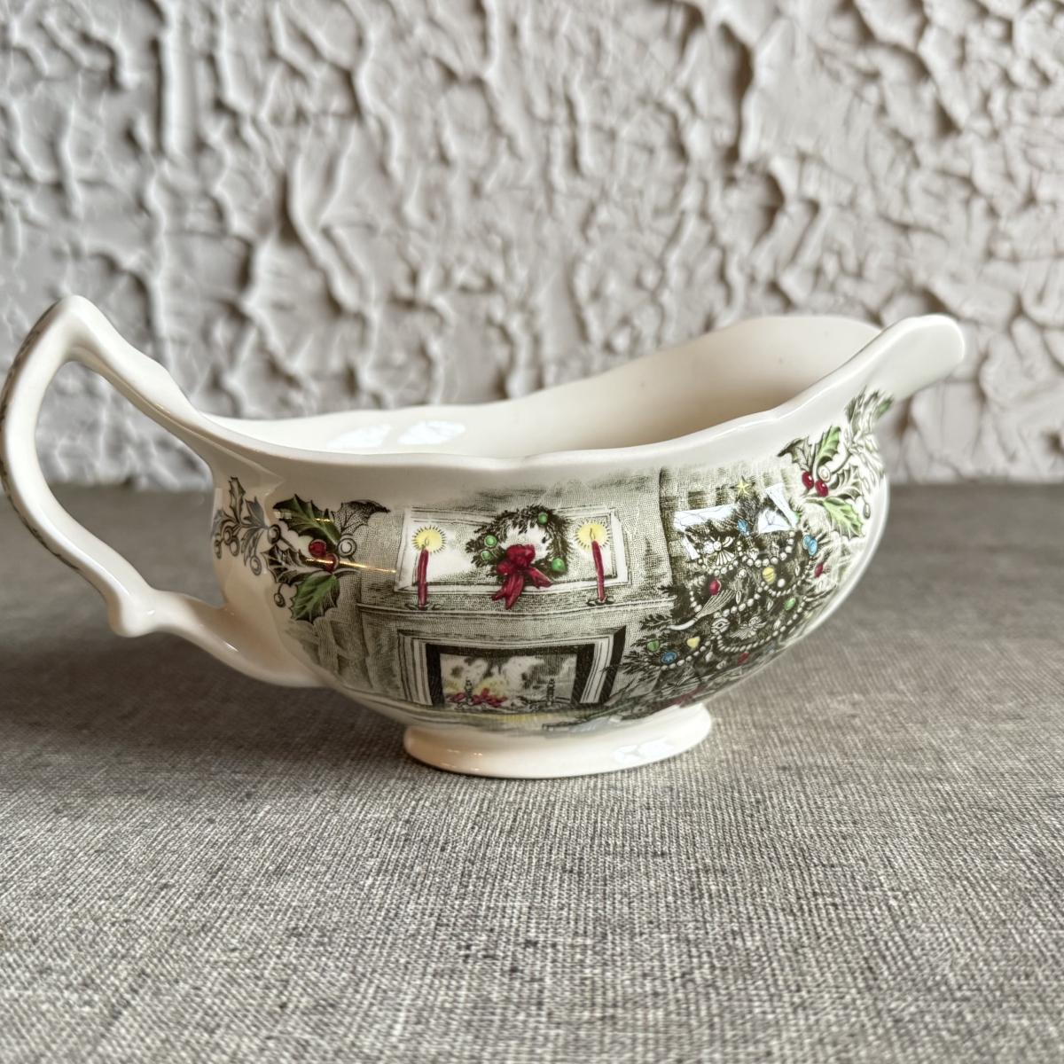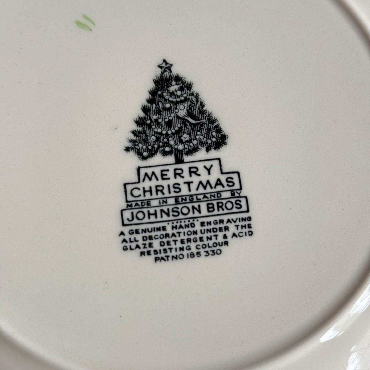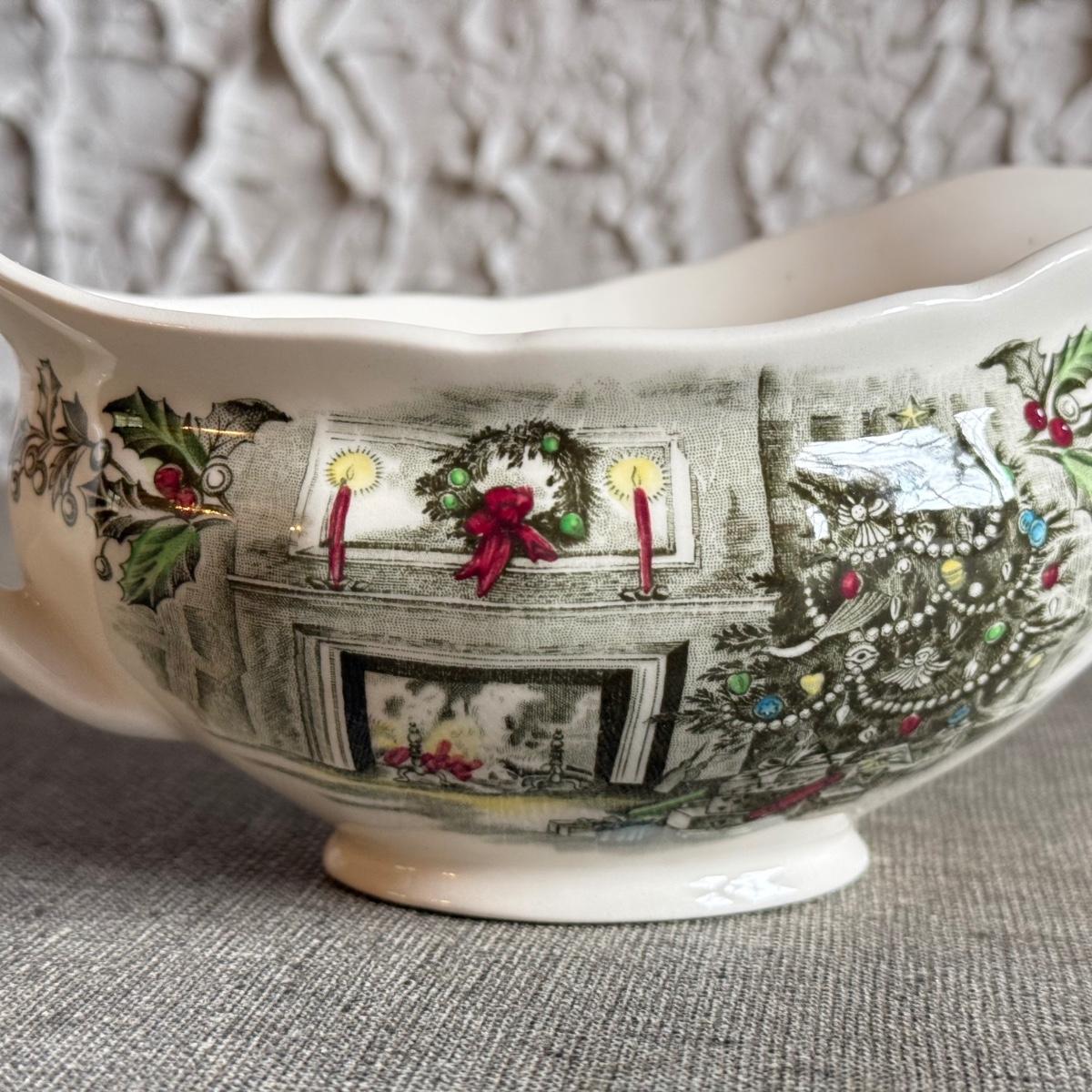 LOT 238F: Vintage Johnson Bros Transferware "Merry Christmas" Service for 8 w/ Gravy Boat